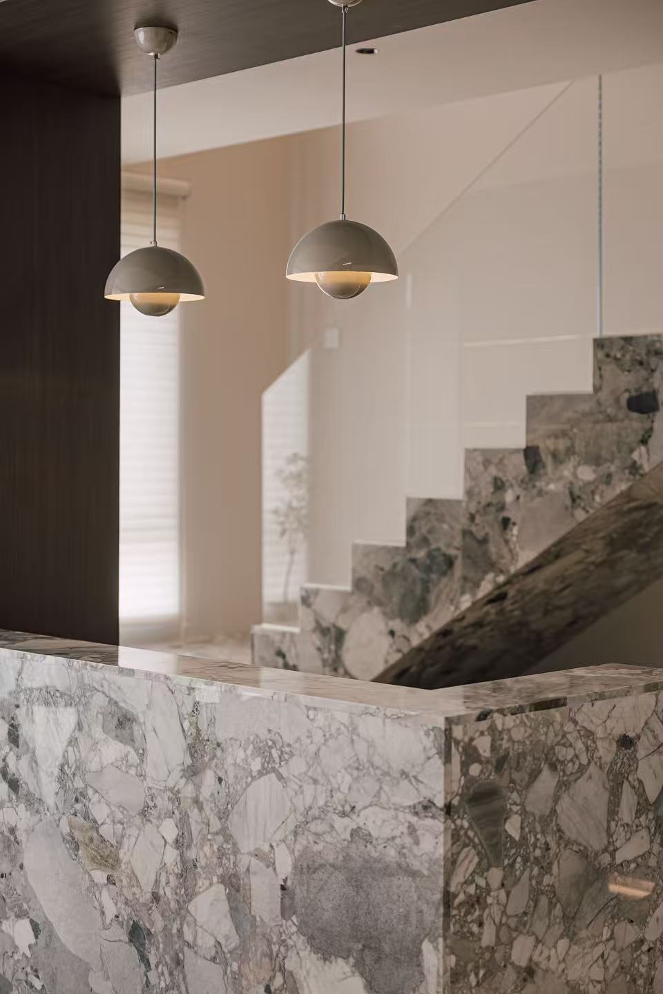 空间布局:空间内的动线与布局节奏把控精准,由此构建出一种介于城市当代性与历史沉淀感之间的独特语境。设计上融合了东西方元素,特色吊灯成为视觉焦点,其光影效果强化了空间的整体结构与形态感。