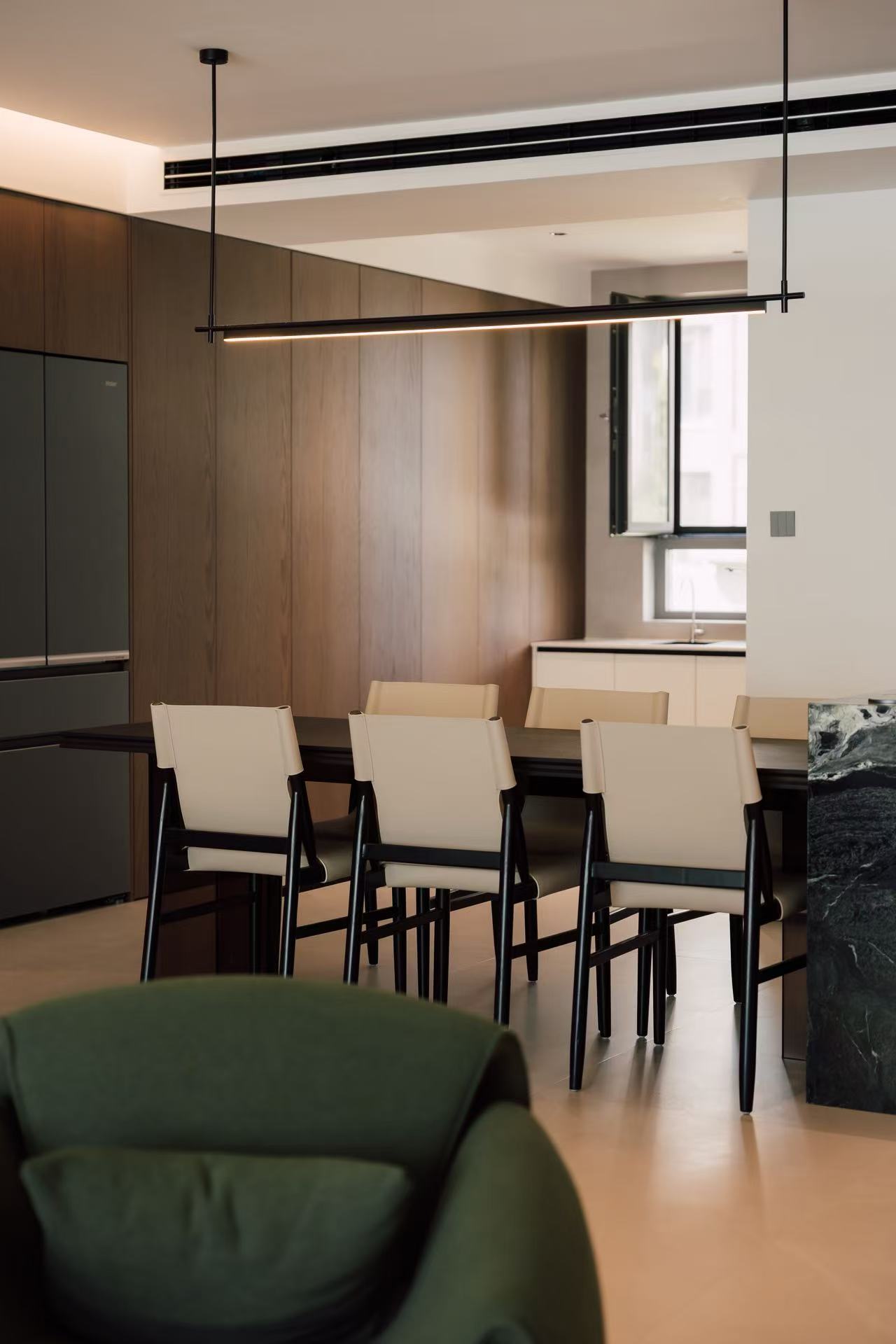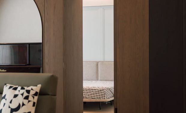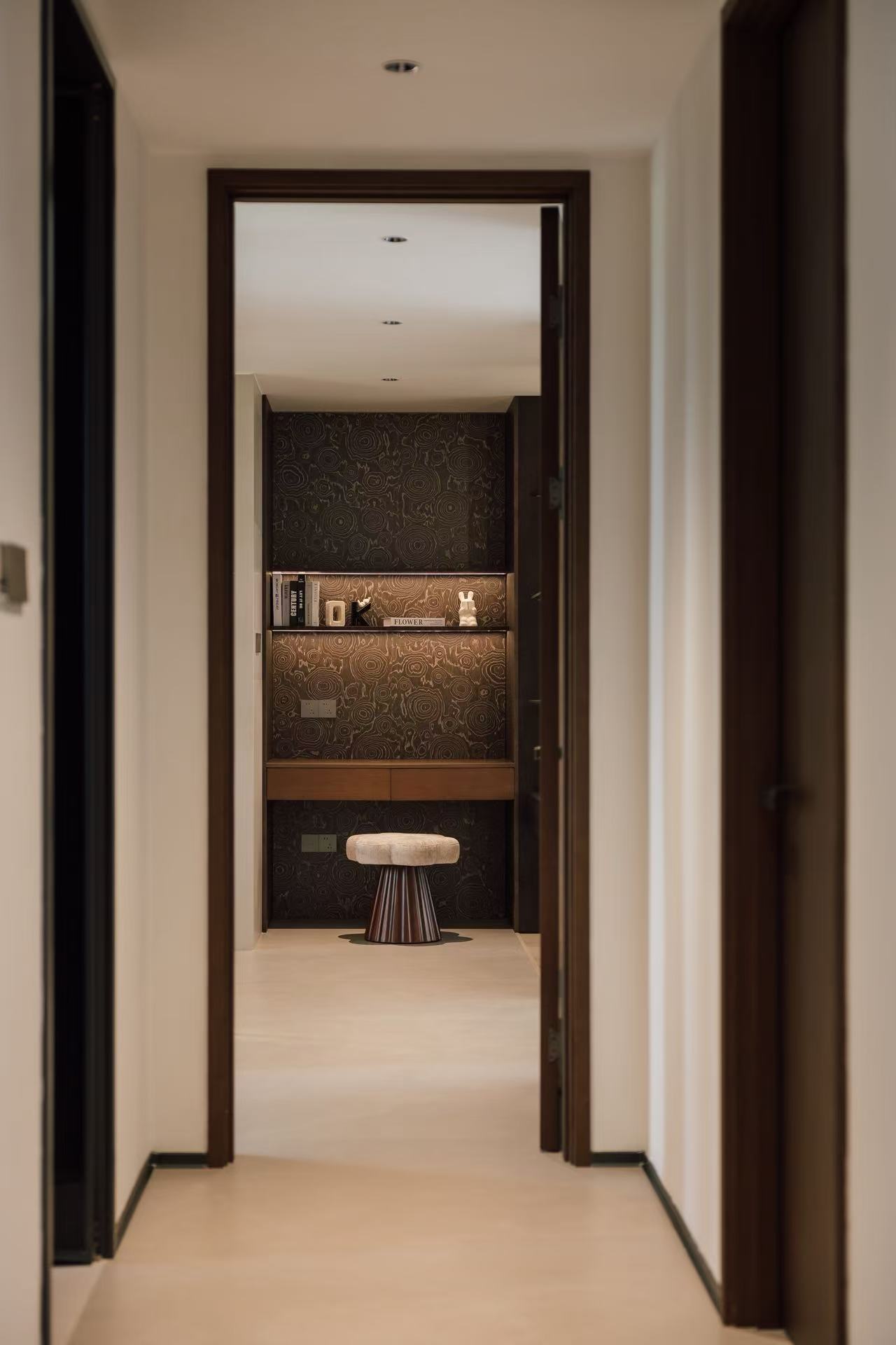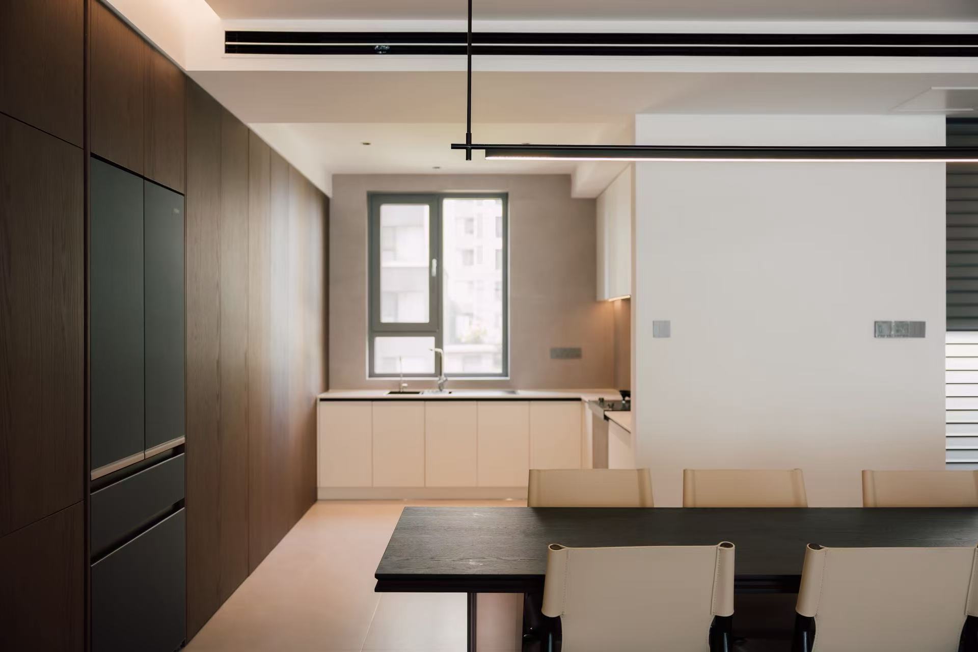 用户体验:在让空间变得有延伸以及使使用者用起来更加便利后,材质的应用上考虑到一层的光线,工区的地面整体以浅色地砖作为漫反射统一铺贴,辅助的白橡木让空间安静下来,温和下来,与廊道和室外的植被形成共生的自然状态,每一个垭口的交错和延伸都让空间充满趣味,小隐于世。