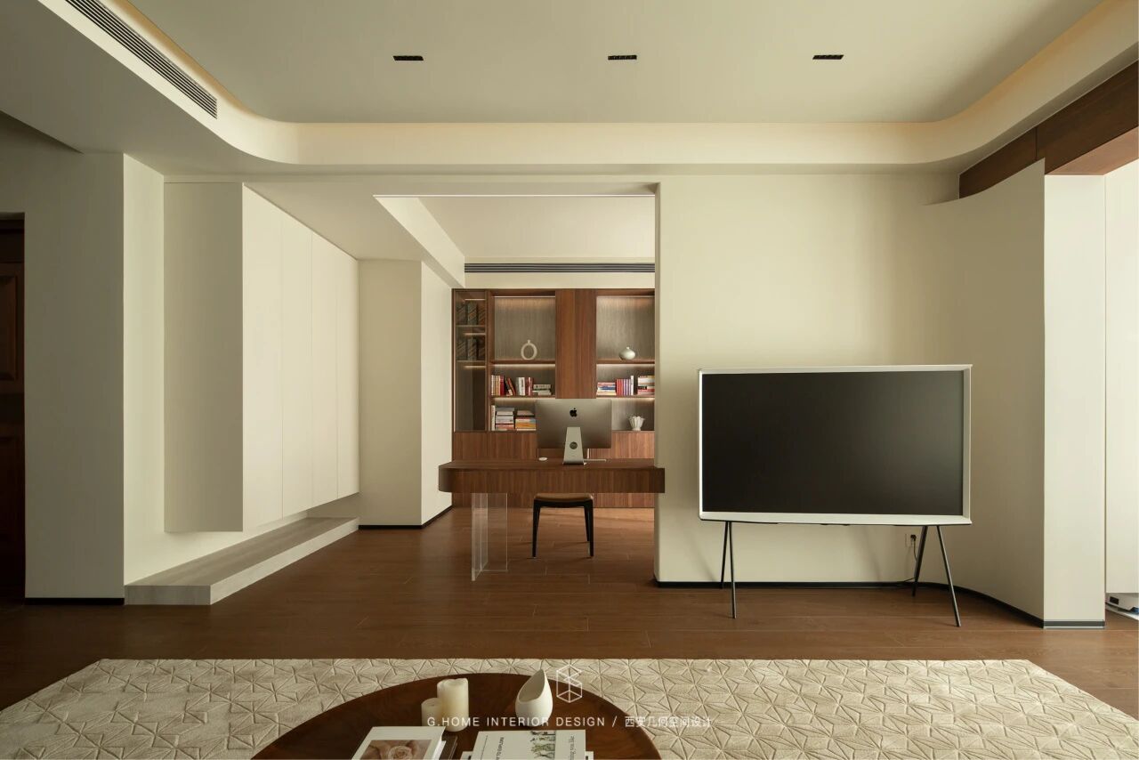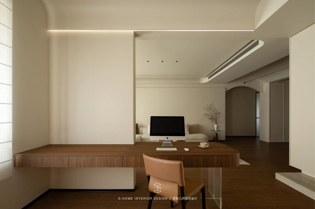 用户体验:开放式格局让空间明亮宽敞,提升区域互动性;全域精细化收纳设计(玄关多功能柜、书房户外用具专属收纳、主卧床尾柜等)让物品规整有序;奶油中古质感与无主灯等细节设计,带来舒适温馨的居住体验。