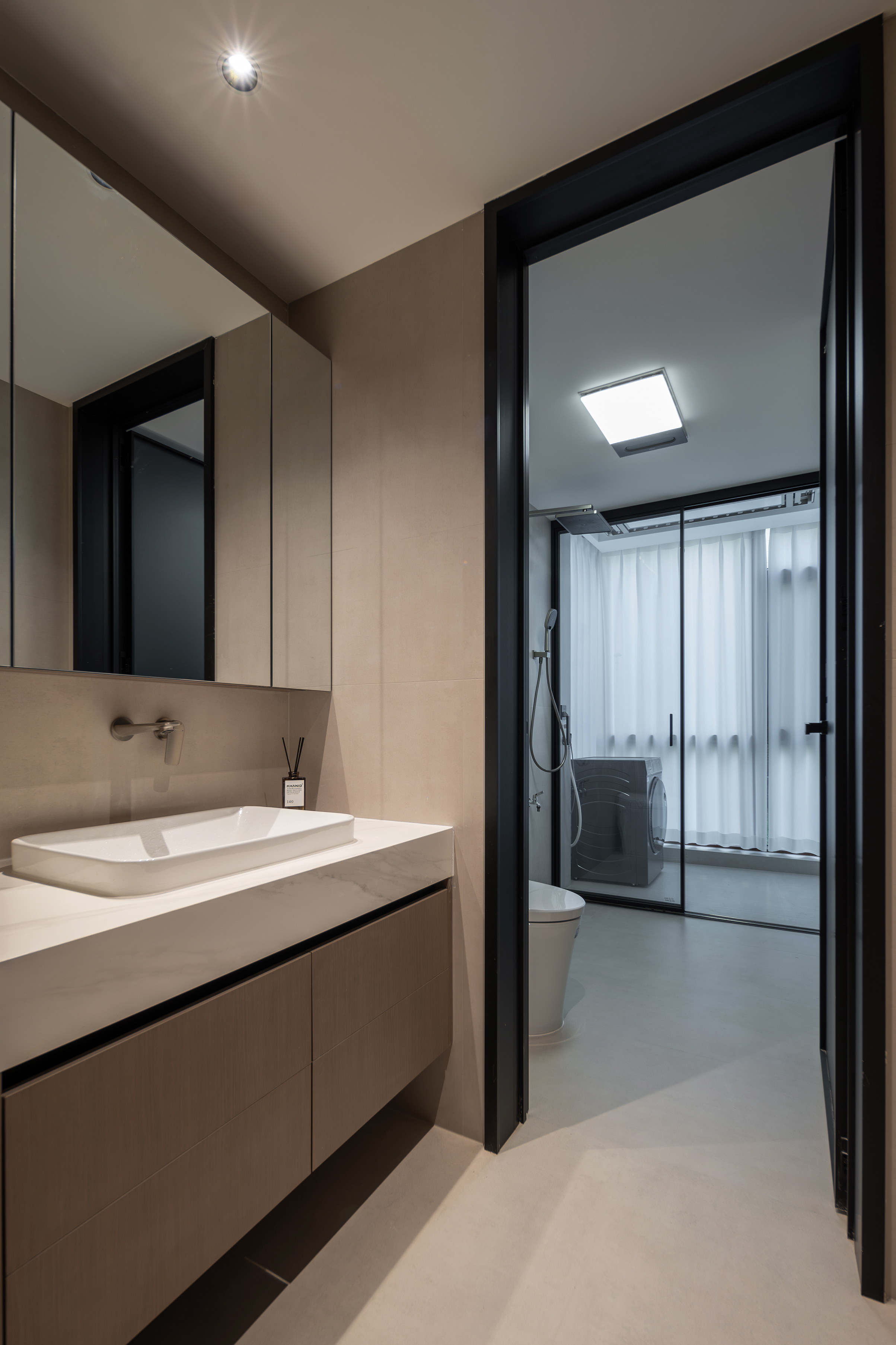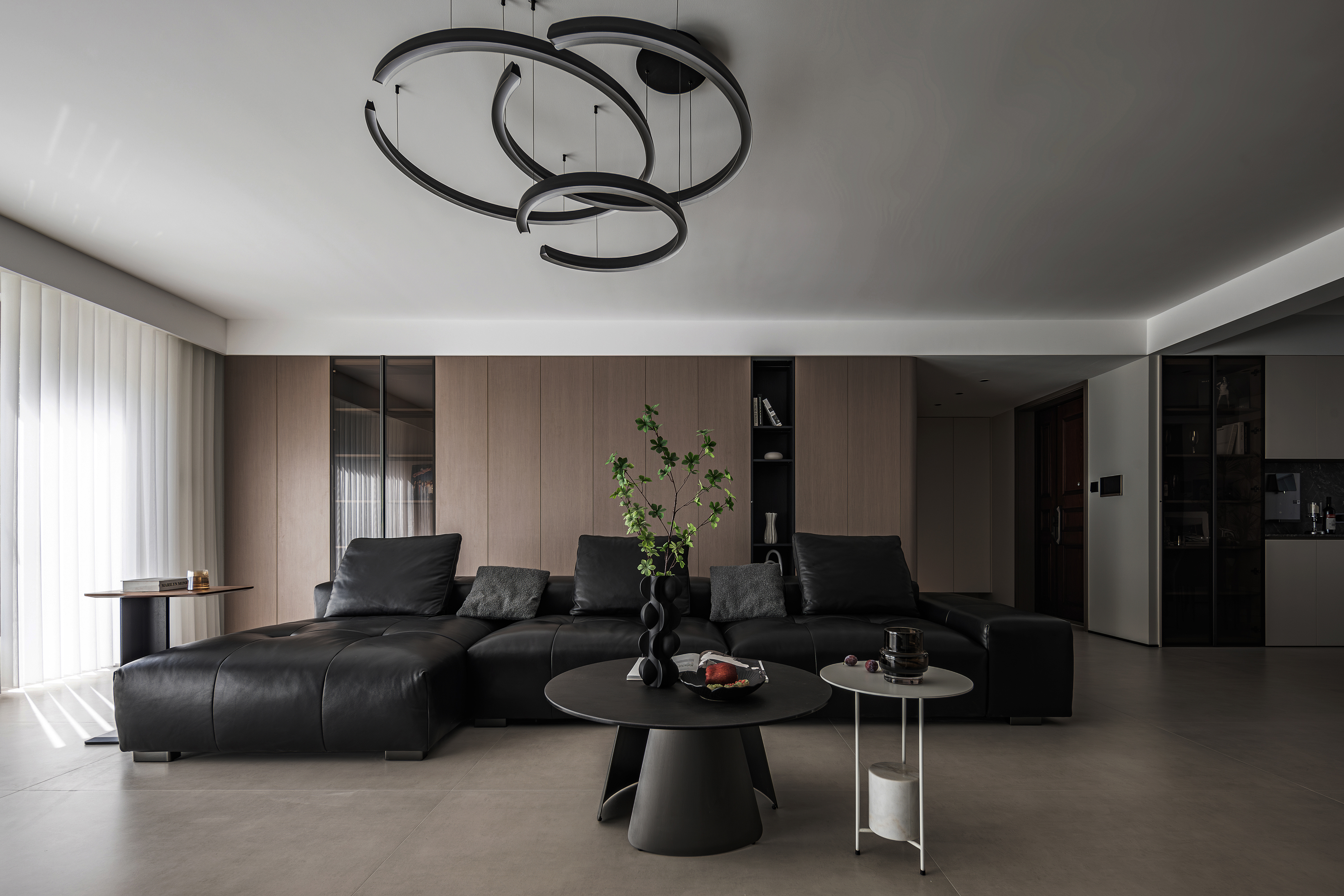 项目定位:本设计以“木·光”为核心主题,通过材质与光影的对话,构建出现代都市中的自然栖居哲学。空间以温润的木色为基底,搭配深浅层次的灰色调,在极简框架中注入温暖的自然气息。