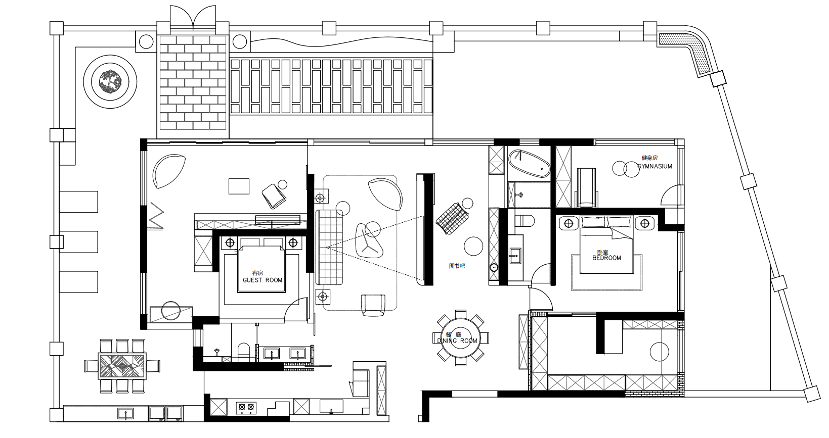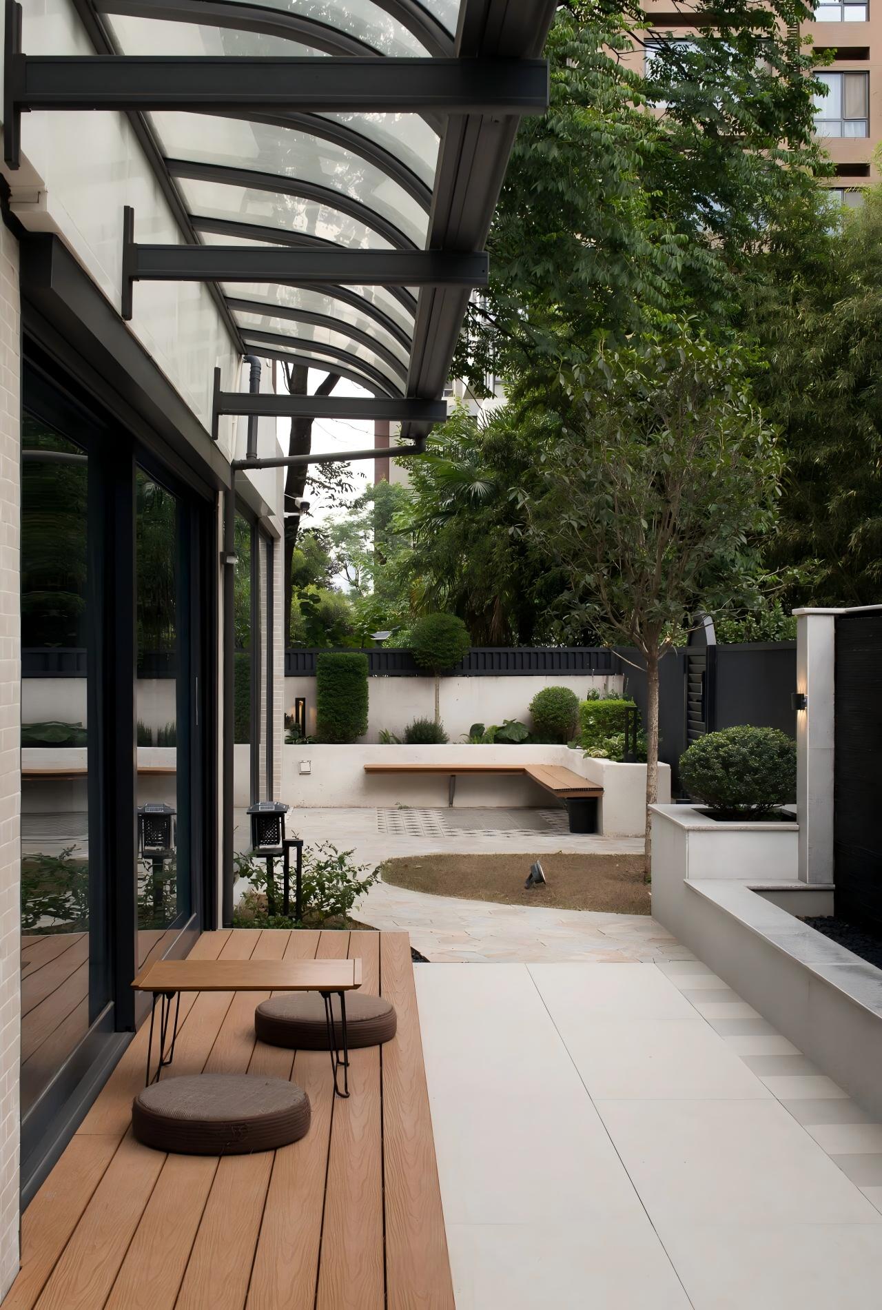 用户体验:通过回行动线保障家庭成员视线与情感交流;庭院植被营造都市绿洲治愈感;茶室水吧台兼顾实用与仪式感;主卧一体化设计提升生活效率;全空间景观渗透实现家与自然共呼吸的舒适体验。