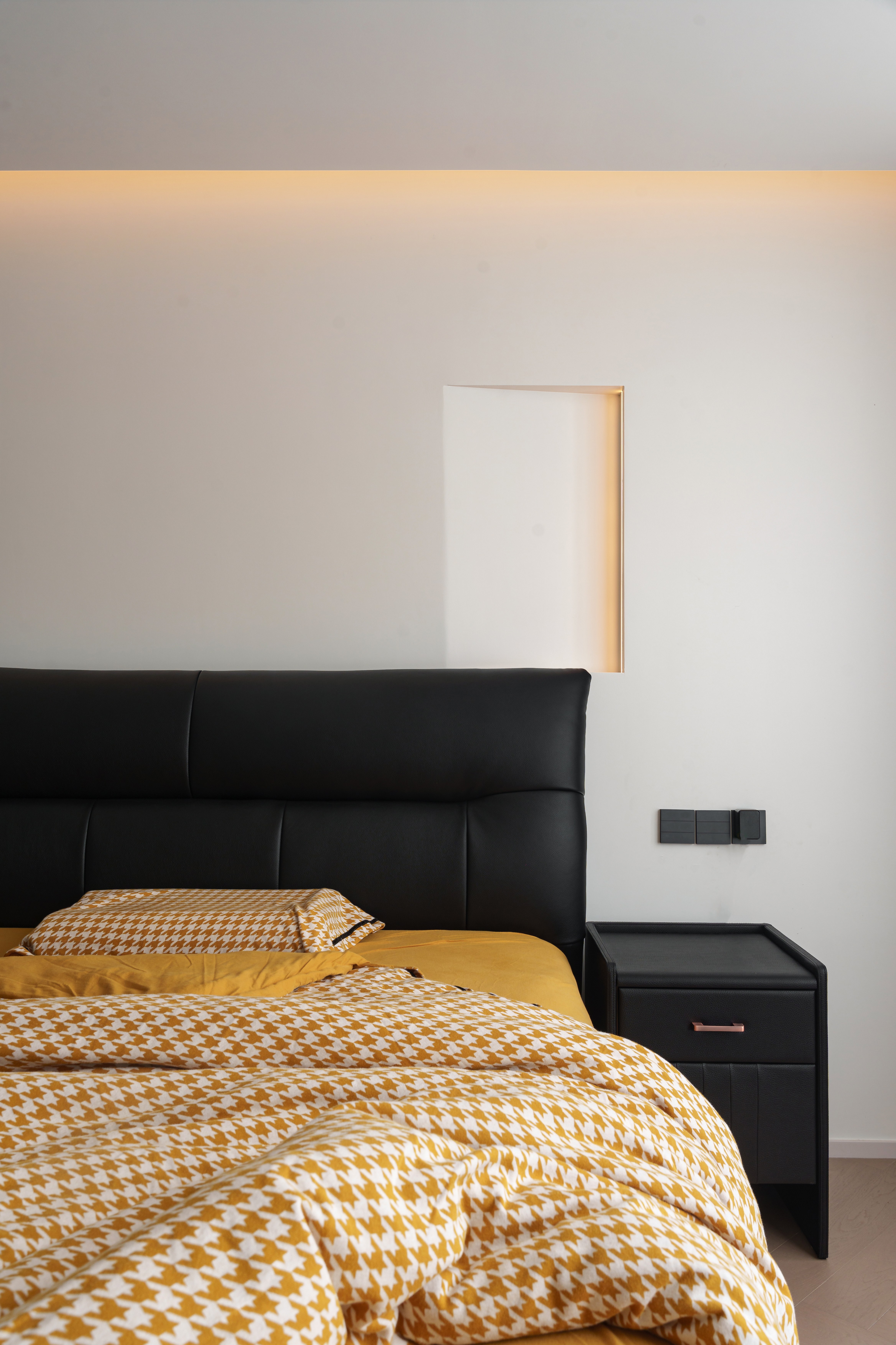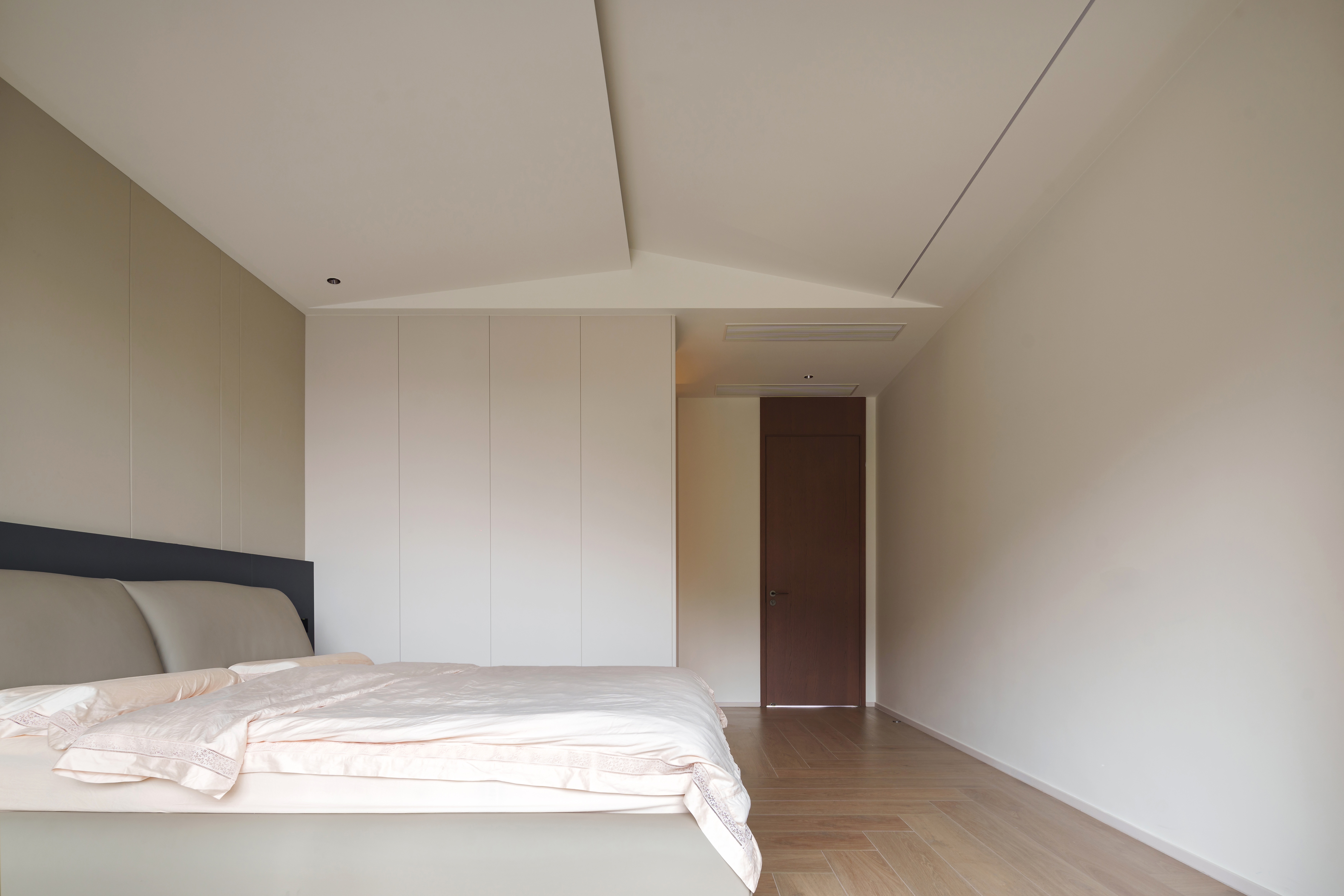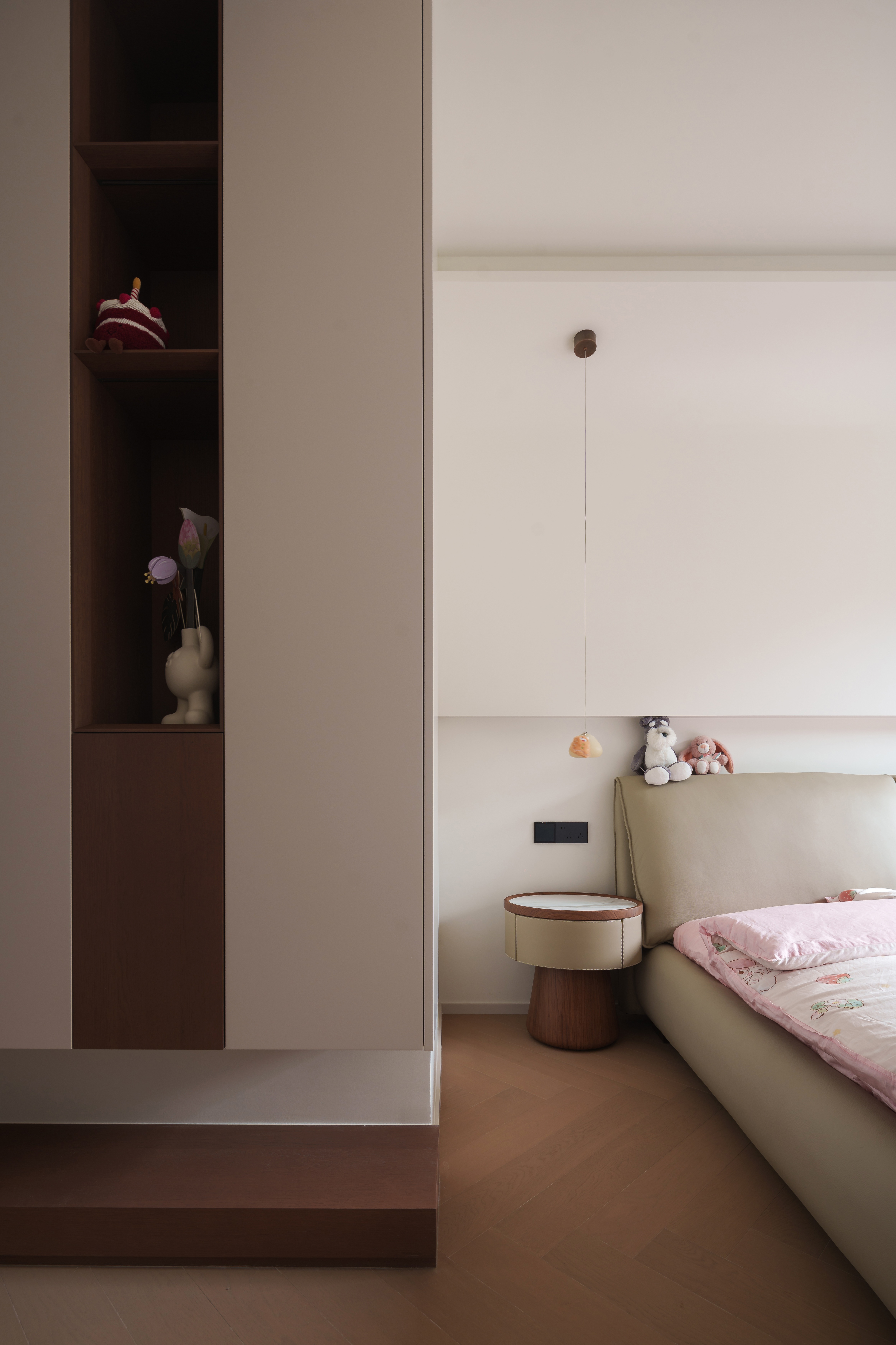光线被温柔地控制在均匀的饱和度里。弧形元素与嵌入式光带,构筑出一个安全、柔软的梦境孵化器。