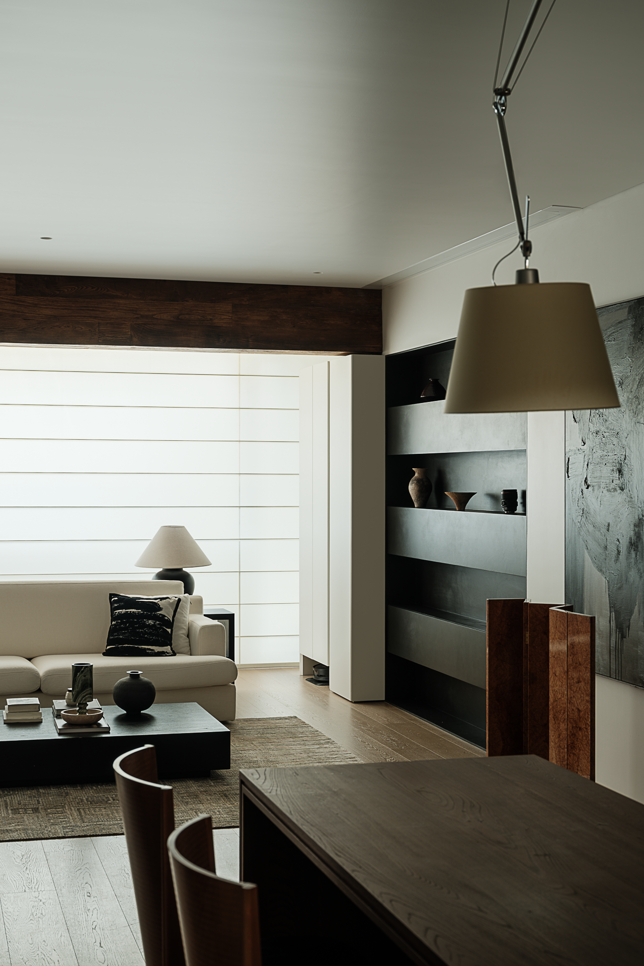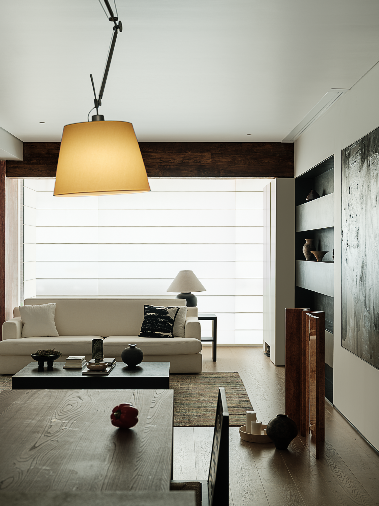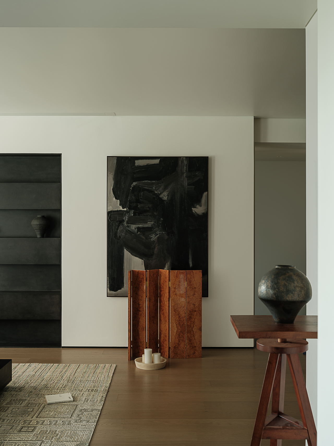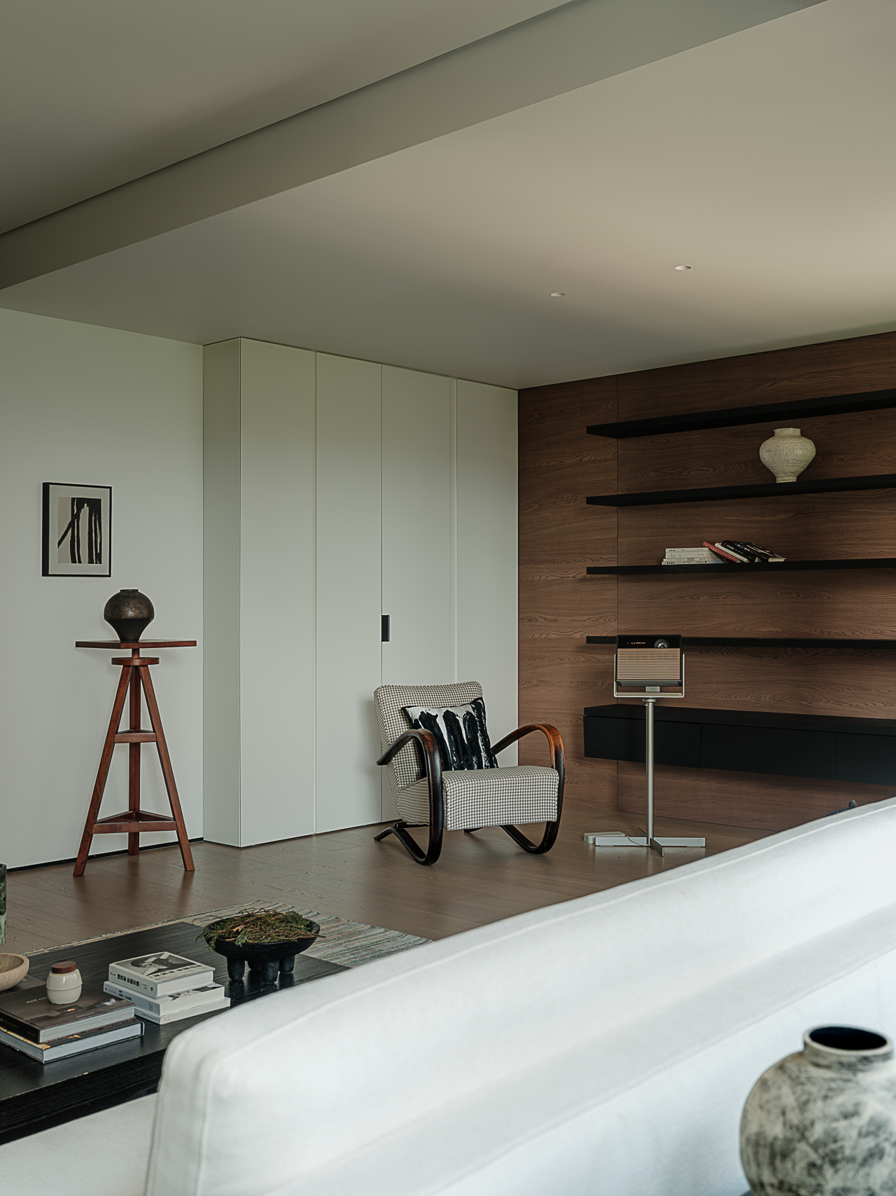 项目定位:项目定位在于营造一种折中而松弛的东方静奢之境,让西方现代设计的风骨,承载东方美学的留白与气韵。设计打破常规,于折中的平衡间,探寻一种去形式化的松弛气韵。我们弱化传统的“客厅”中心,旨在重塑一个自由、流动且滋养身心的当代生活形态。