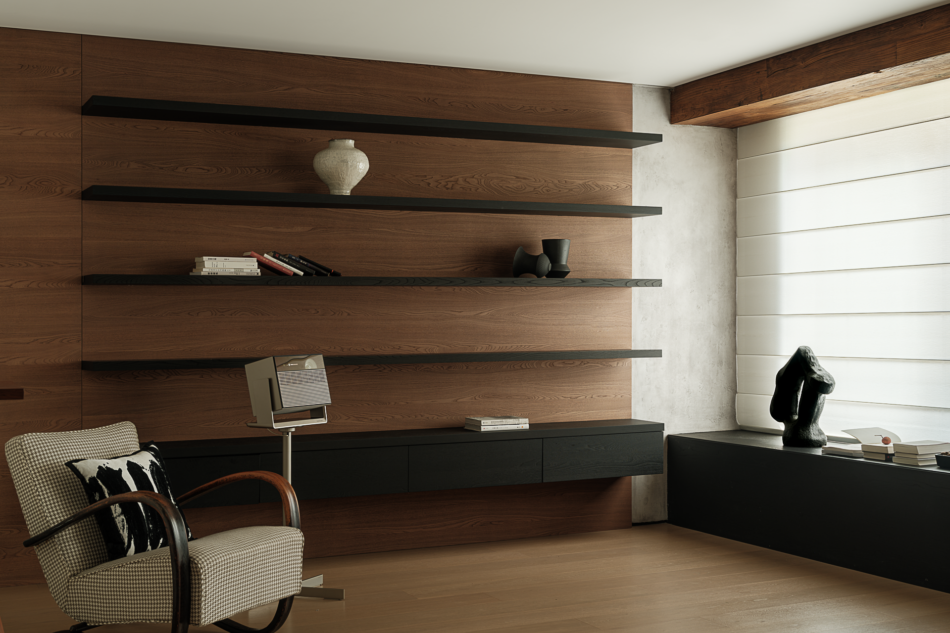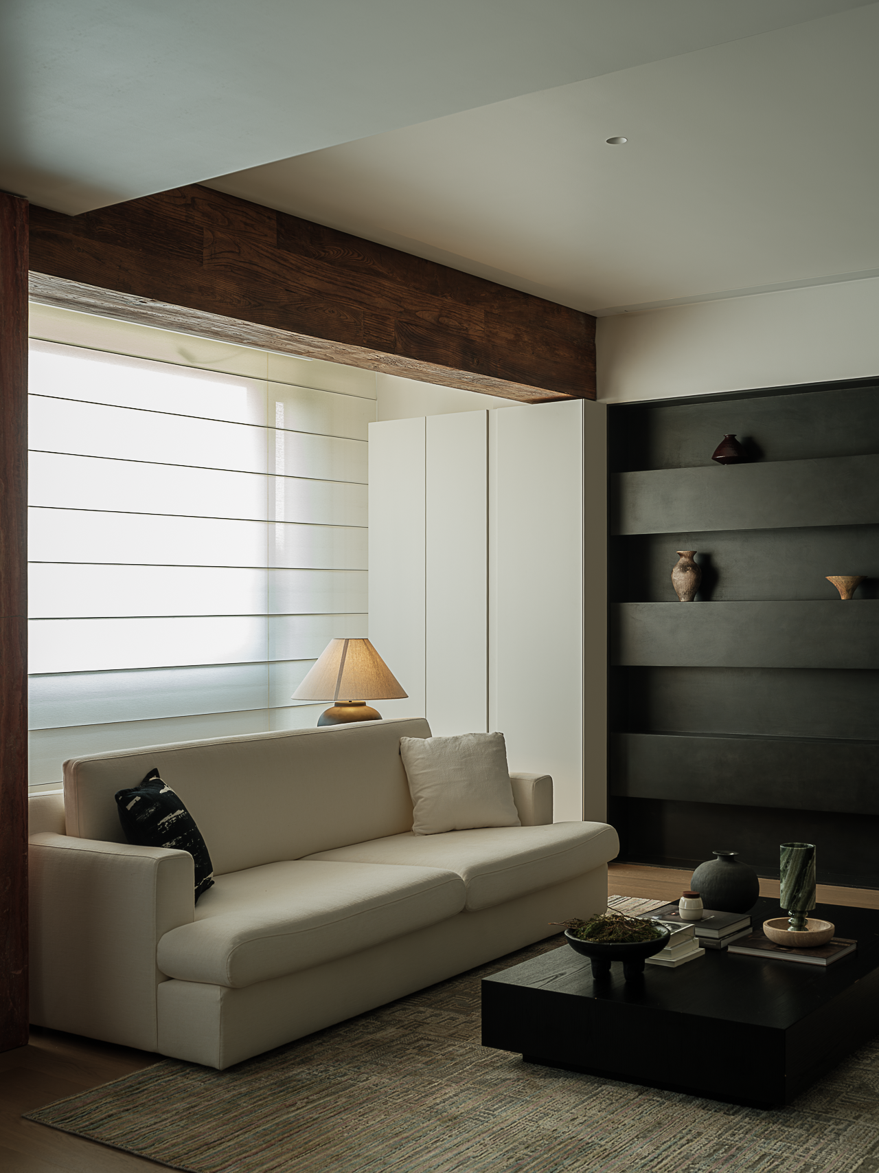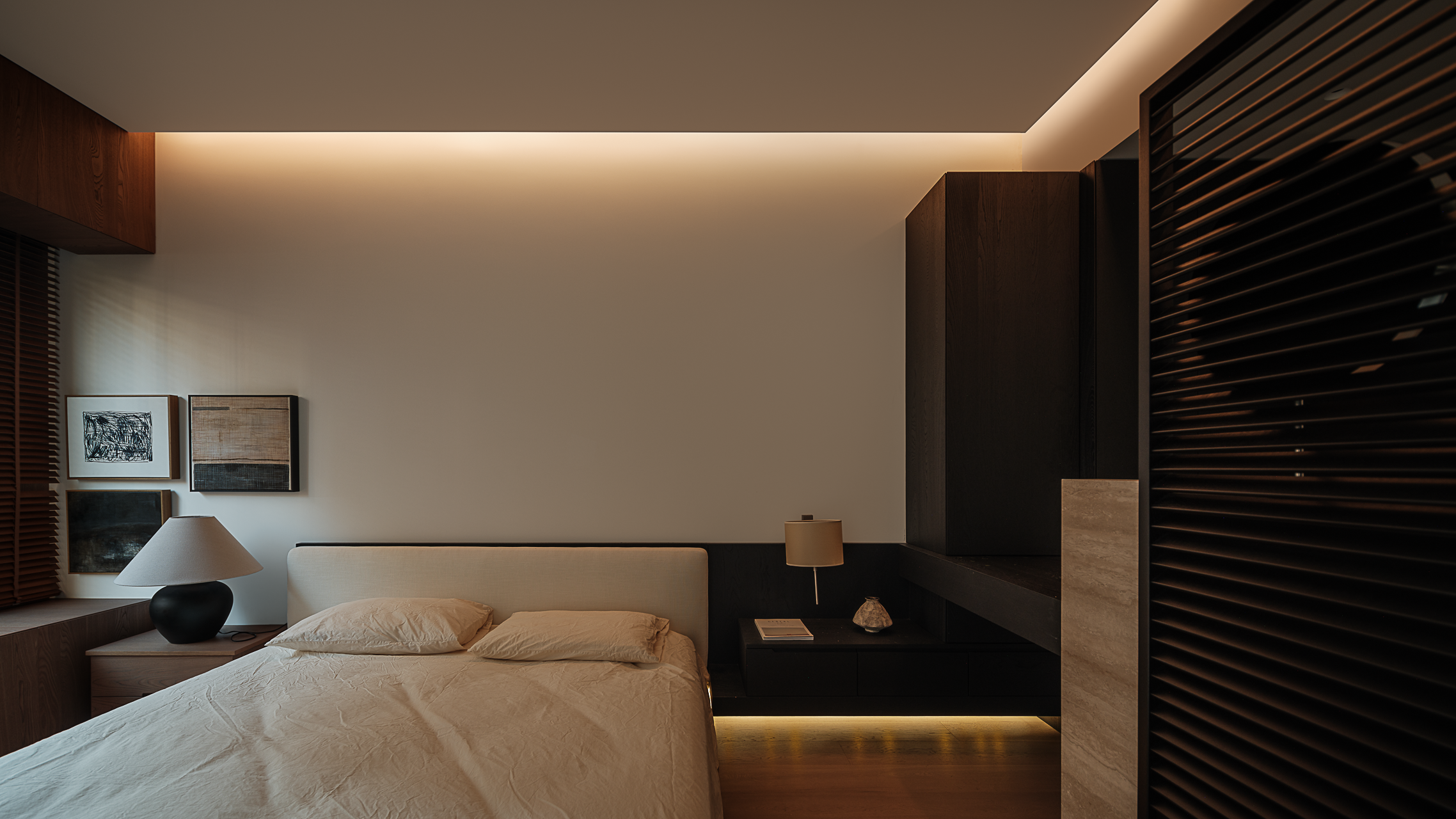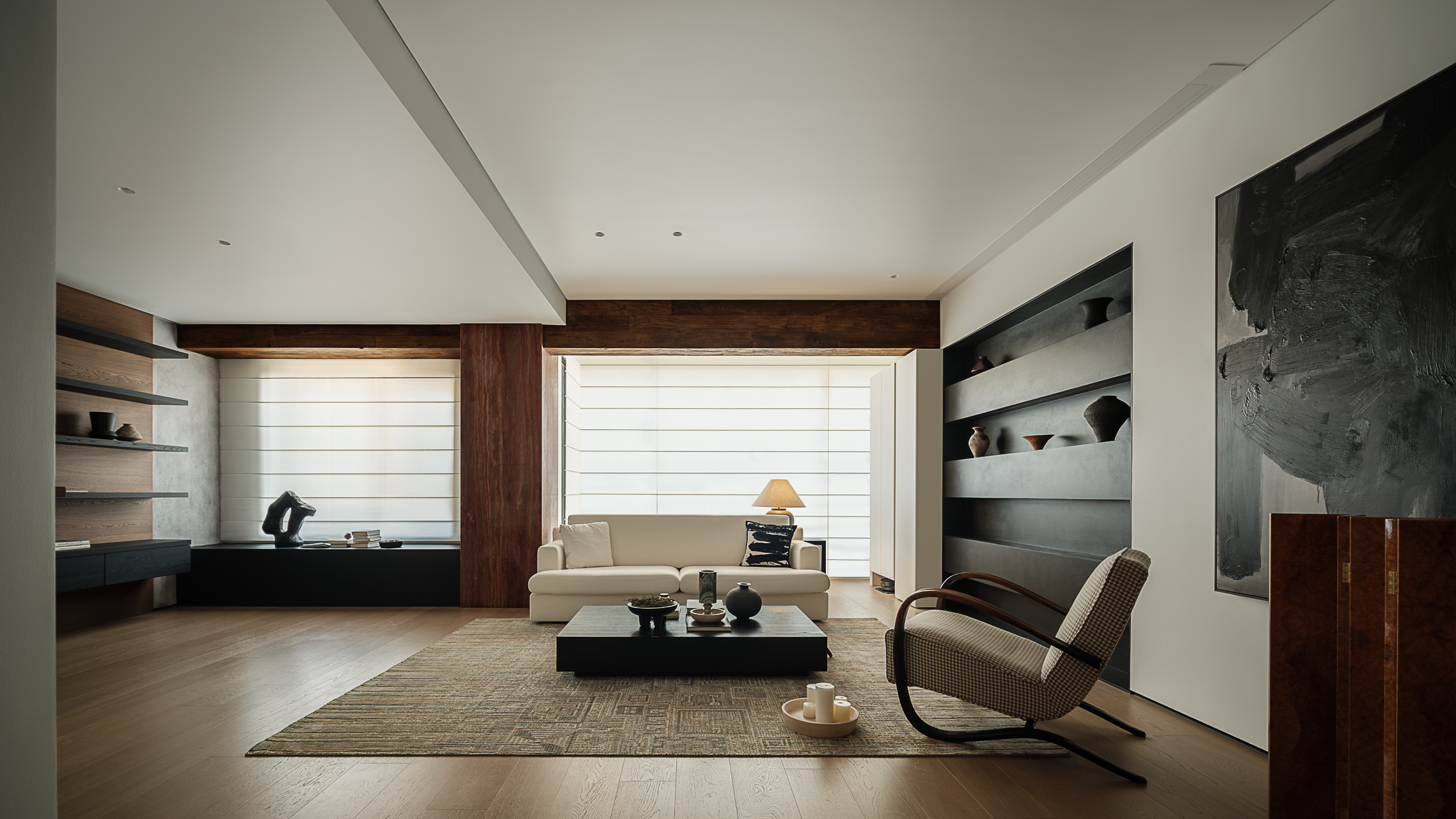项目定位:项目定位在于营造一种折中而松弛的东方静奢之境,让西方现代设计的风骨,承载东方美学的留白与气韵。设计打破常规,于折中的平衡间,探寻一种去形式化的松弛气韵。我们弱化传统的“客厅”中心,旨在重塑一个自由、流动且滋养身心的当代生活形态。