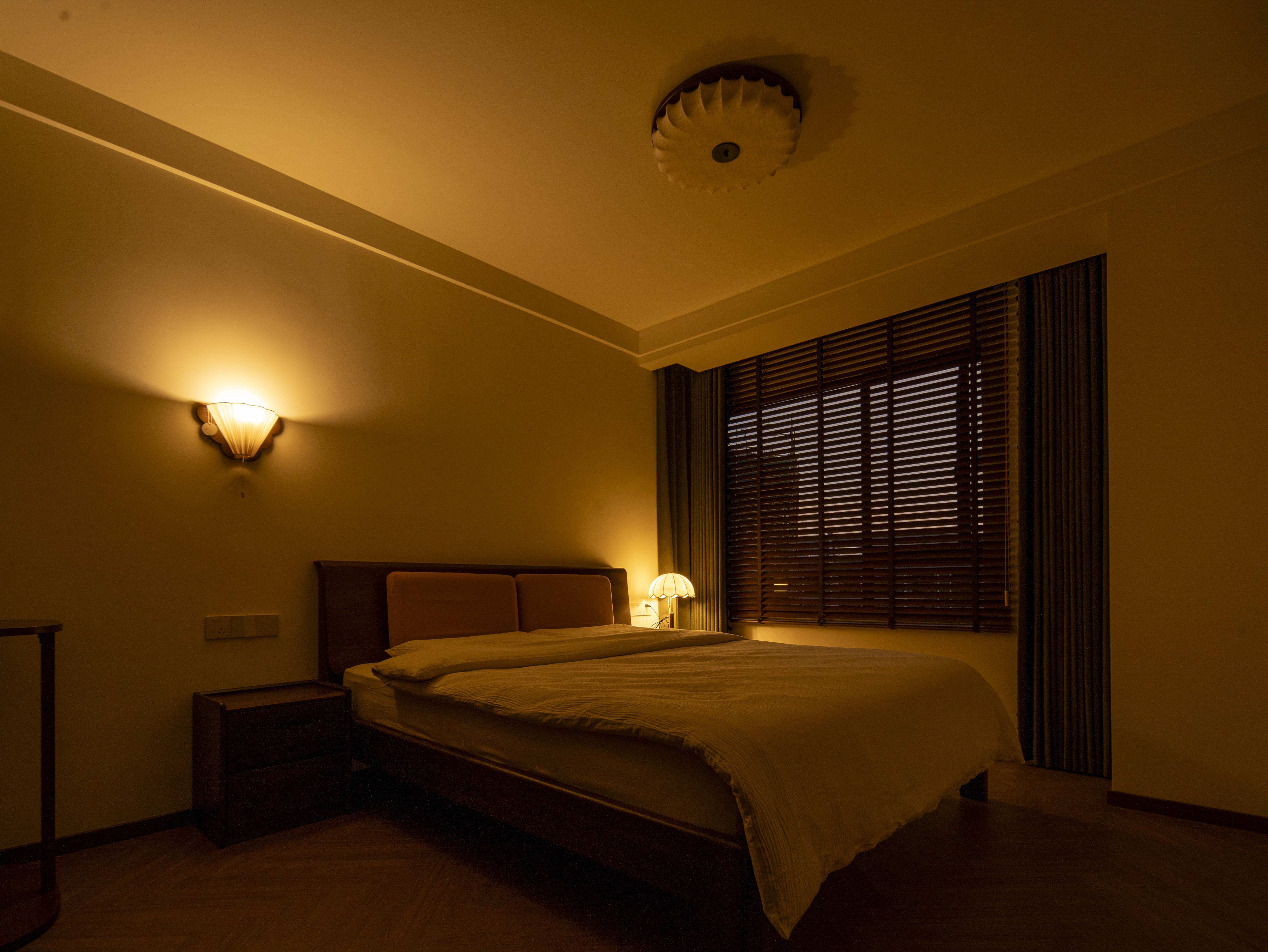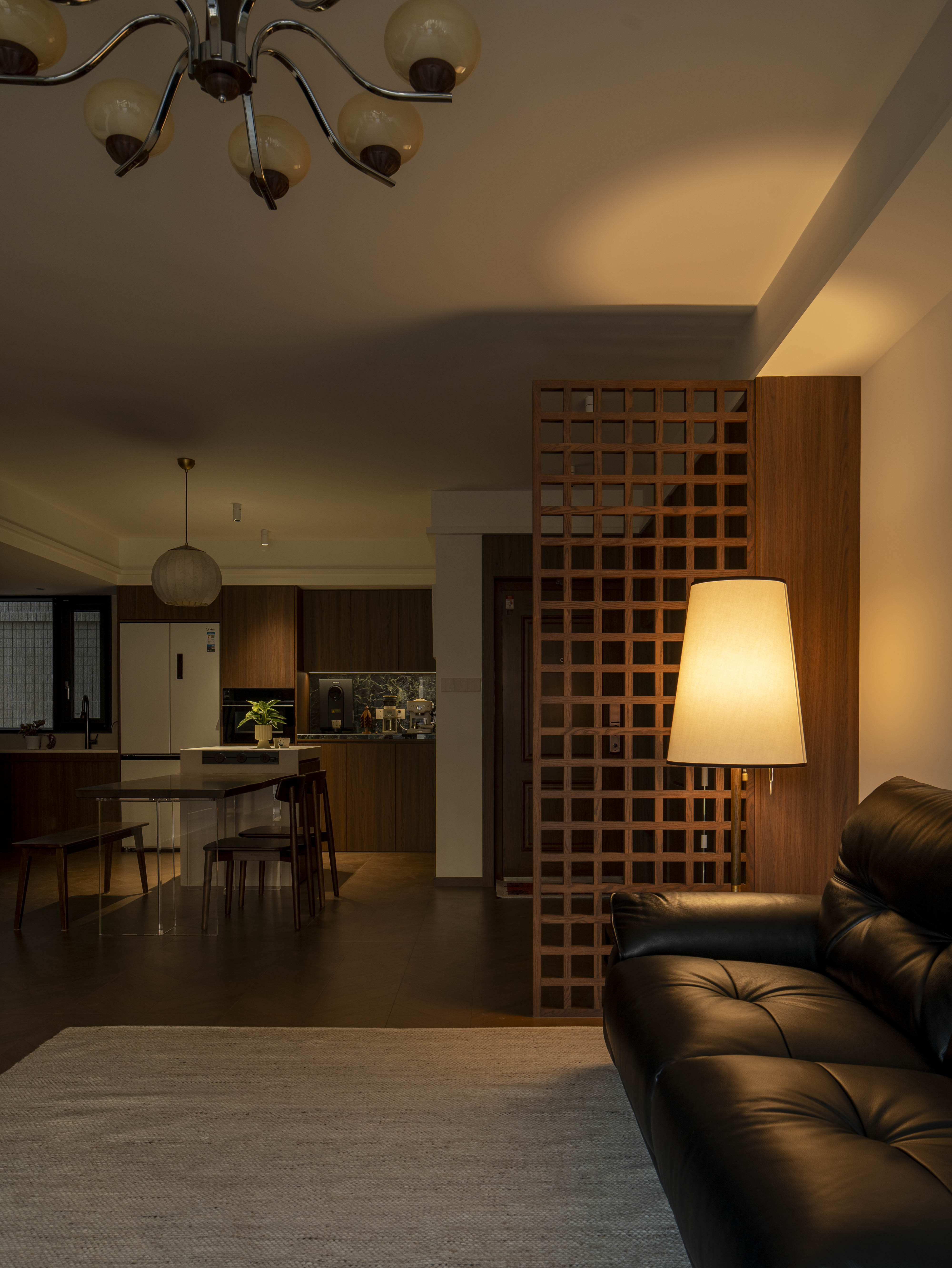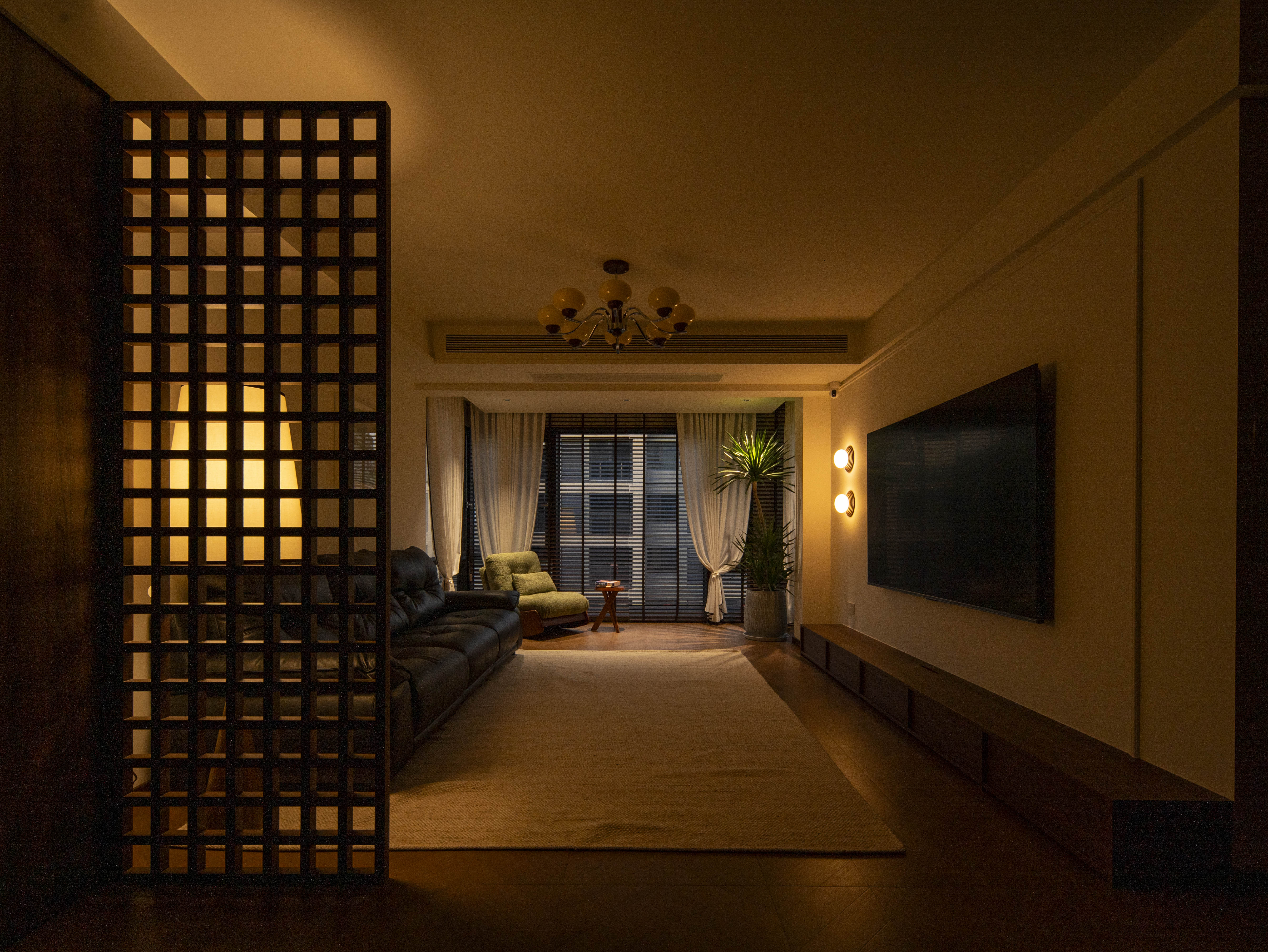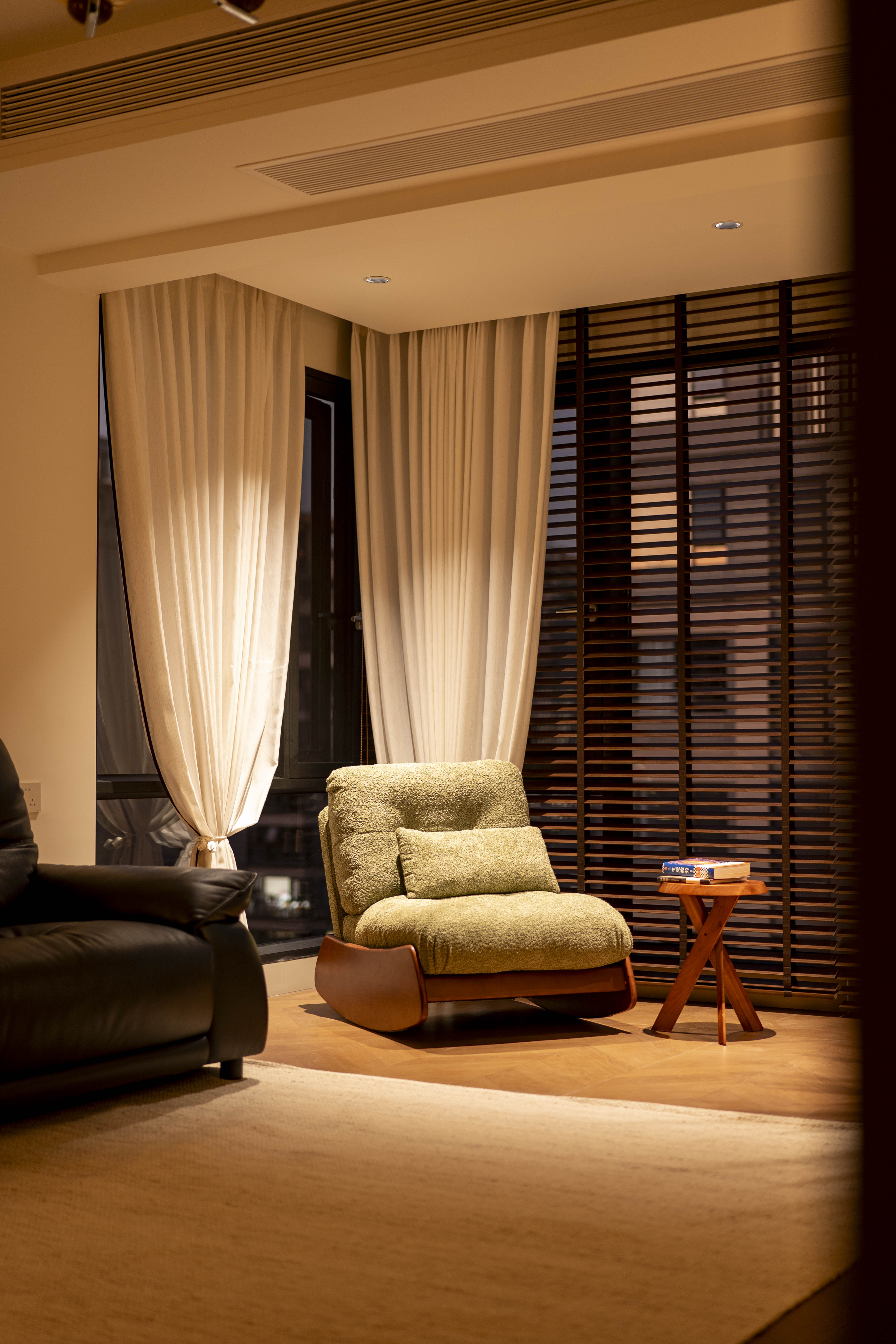 项目定位:本案空间主打中古风格,午后阳光穿过百叶窗,在胡桃木地板上投下长长的光影,以及整体暖色灯光,旨在重塑往昔岁月的迷人韵味,为居住者带来一场跨越时空的审美之旅,使其在快节奏现代生活中寻得一隅怀旧天地。