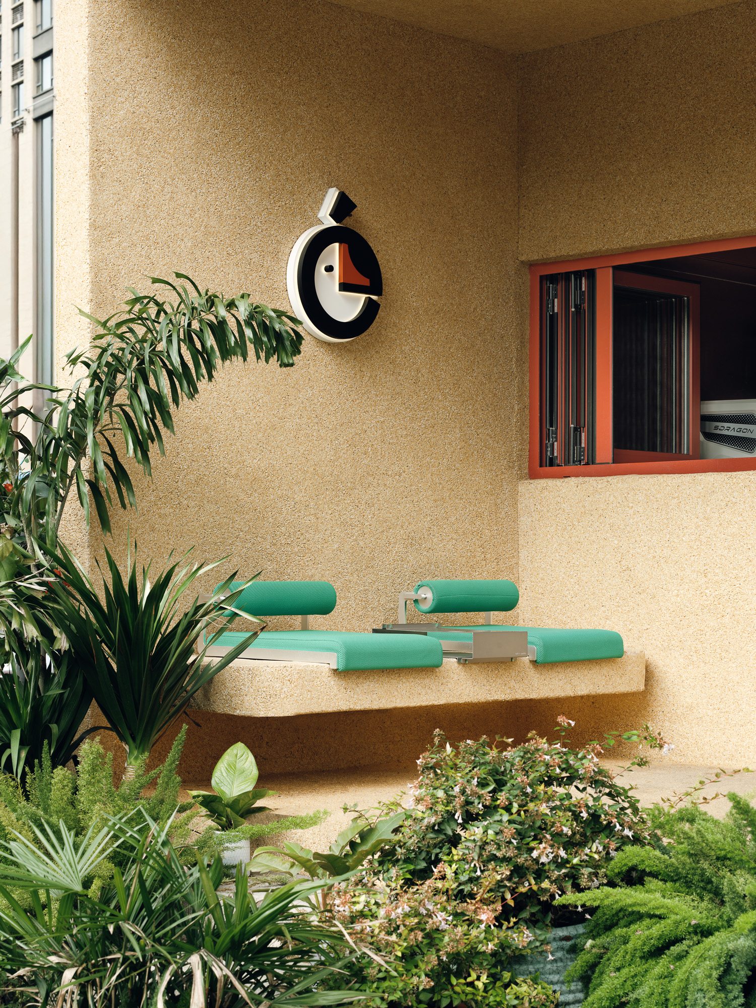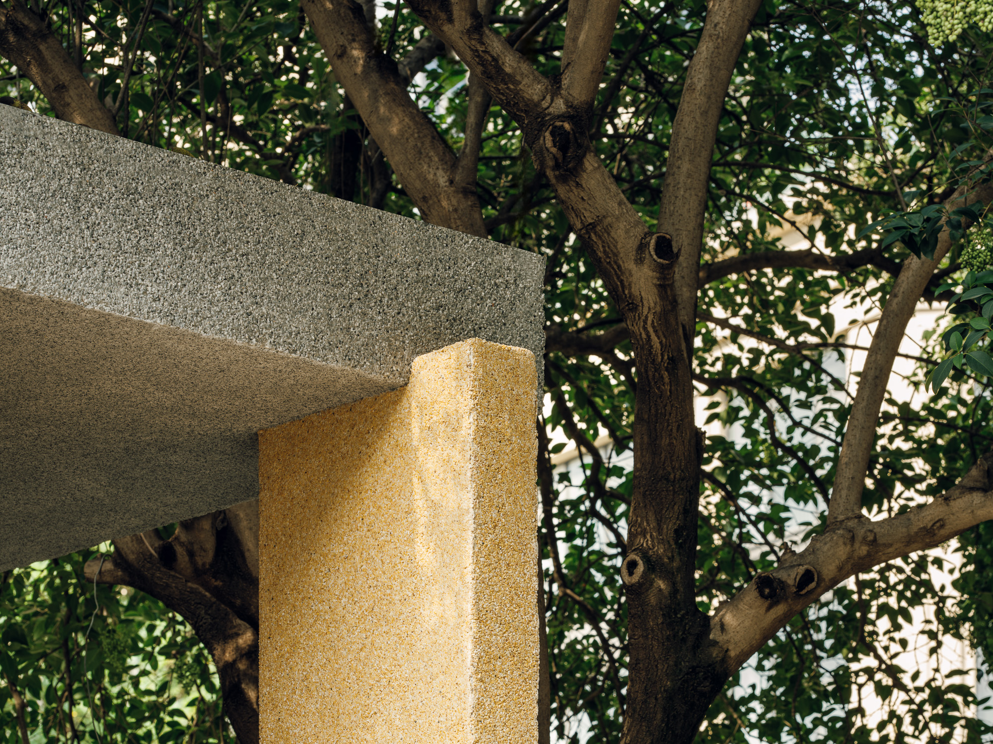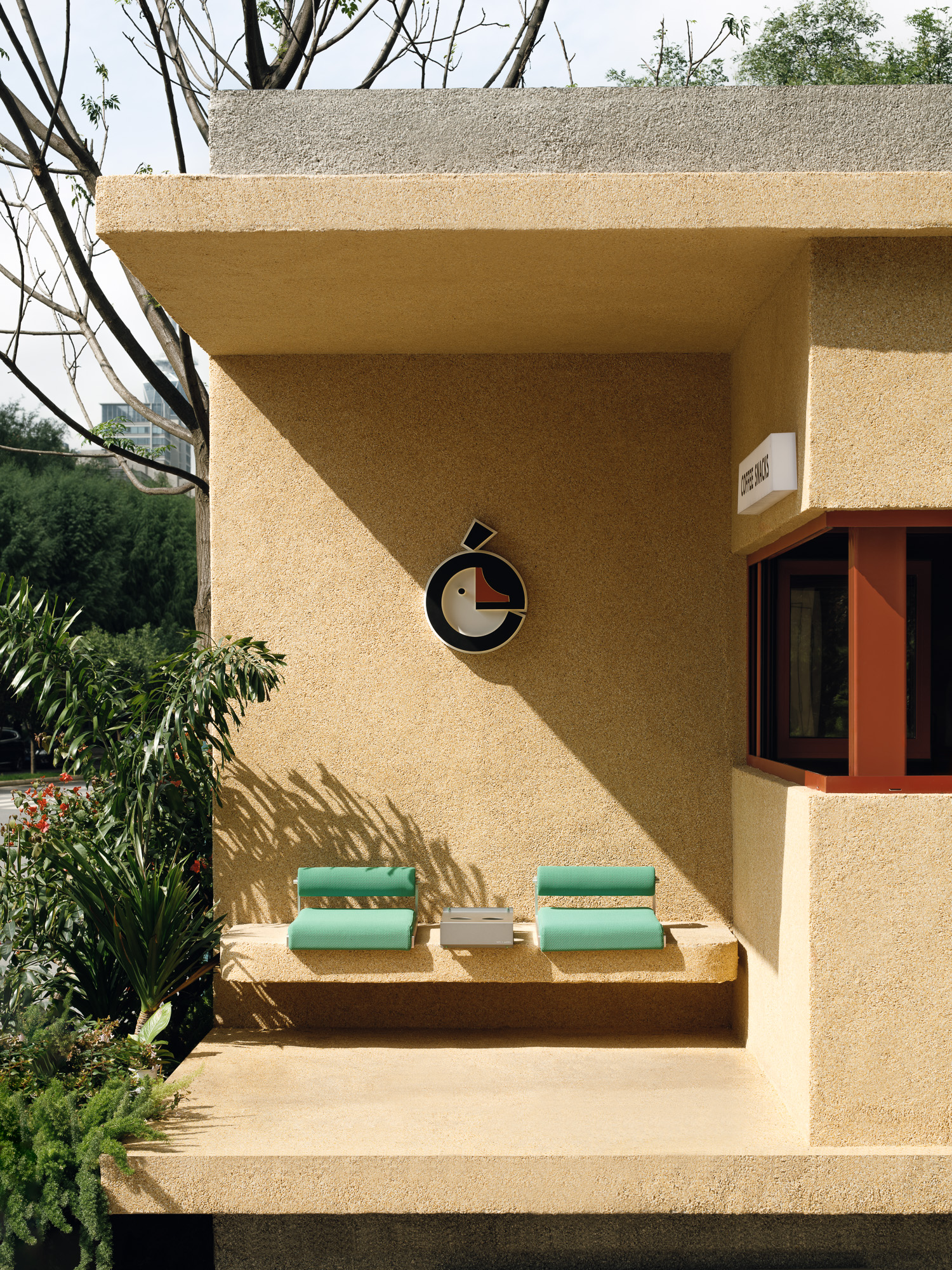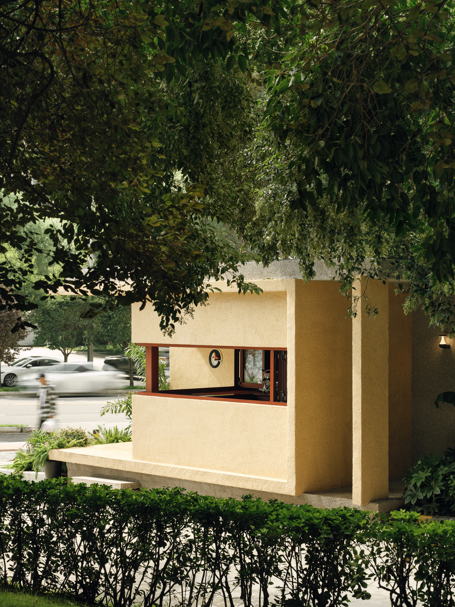 第二个盒子,则是在小盒子的外部,围合出一个半开放的结构,两个立面沿两侧街道完全打开,小盒子被嵌入其中,大盒子的空余区域则形成一处灰空间,营造出小盒子向外延伸,大盒子向内退让的双重趣味。 -