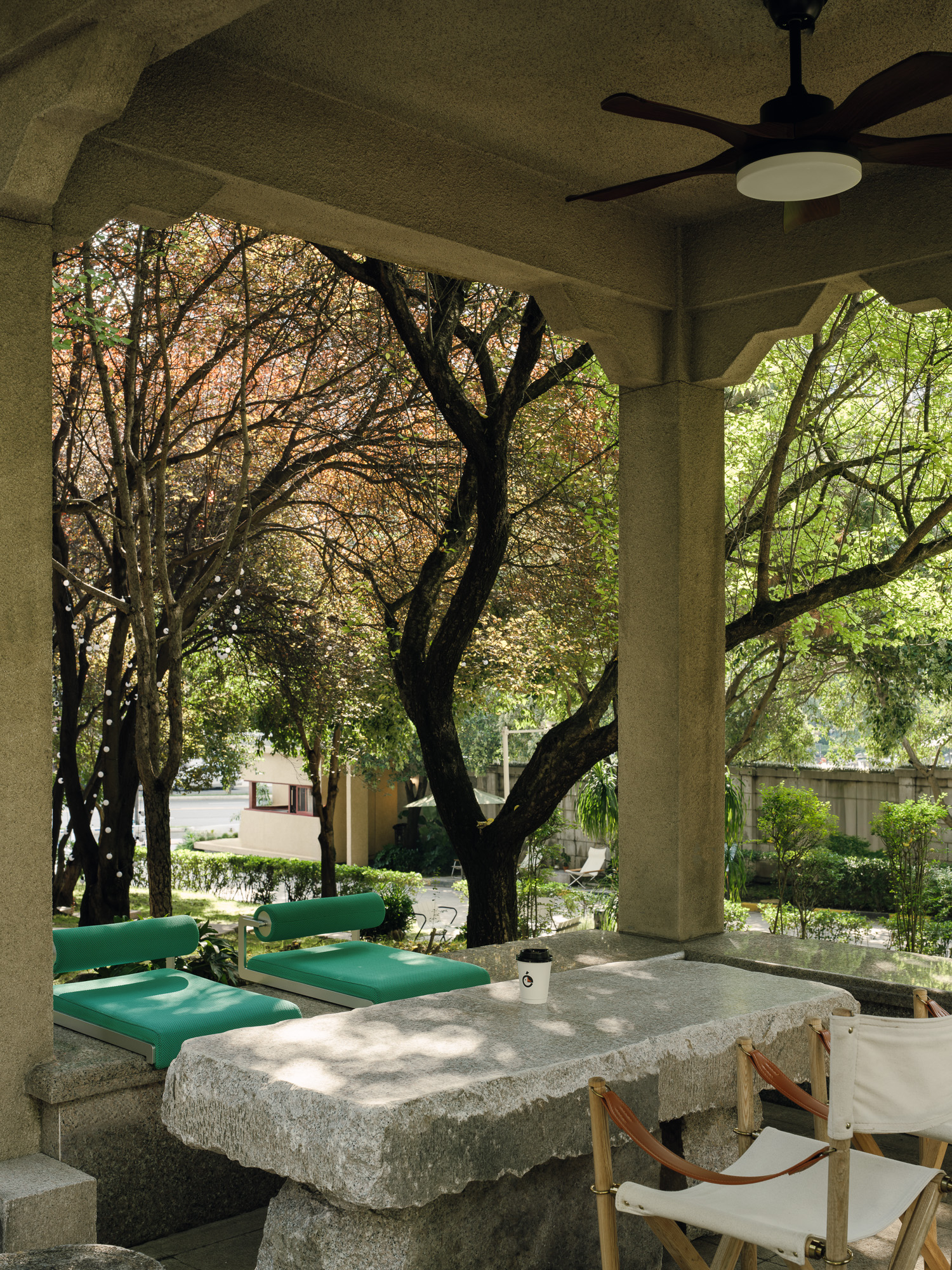 空间意境:一是极限6平米的改造,二是将一处闲置绿地改造为咖啡馆的配套公园,供客人停留和休憩。