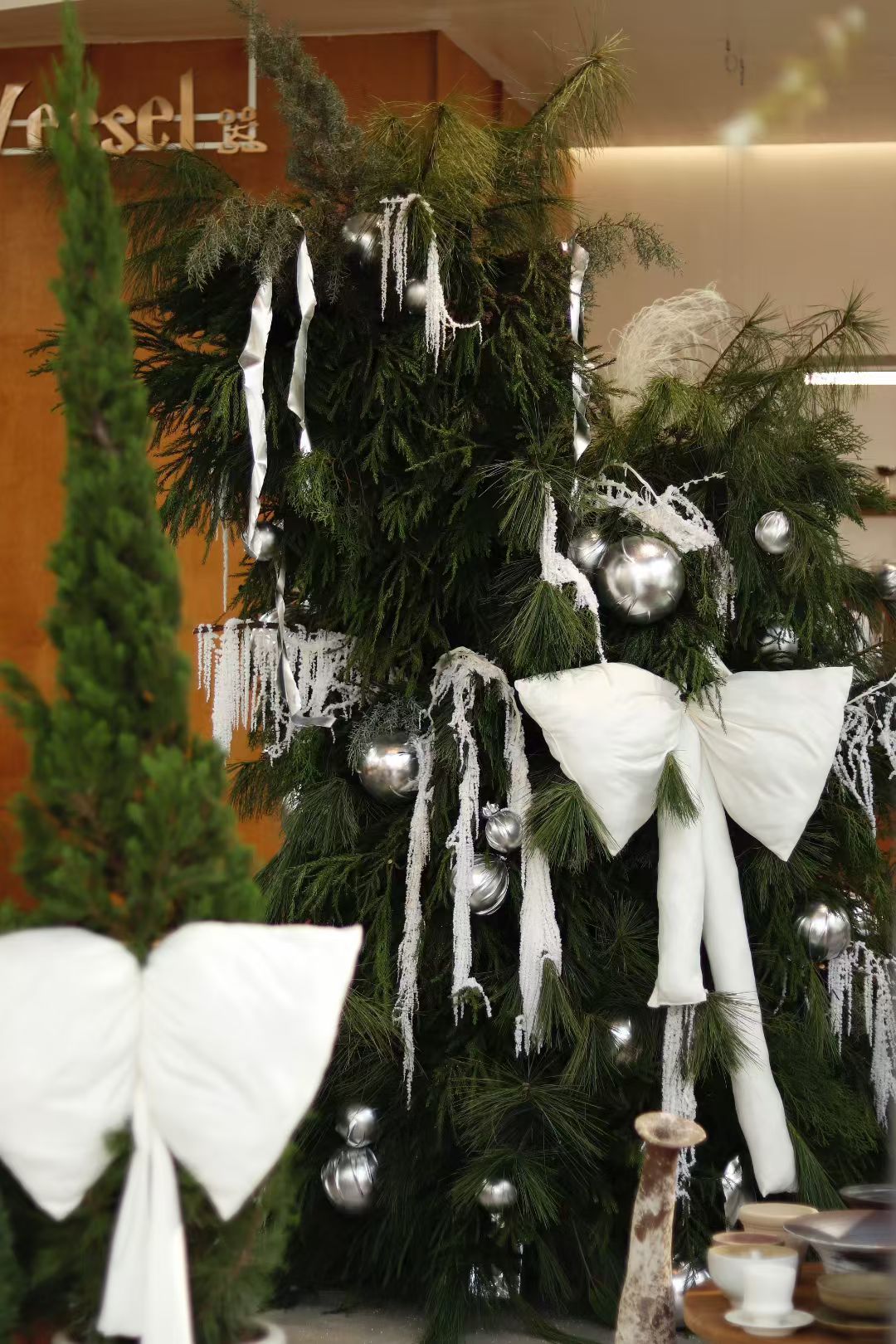放弃明确的 “吧台 / 用餐区 / 展示区” 分区,用花艺装置、器物展台模糊功能边界(如吧台旁直接摆放器物桌,散座区穿插小型花艺);
