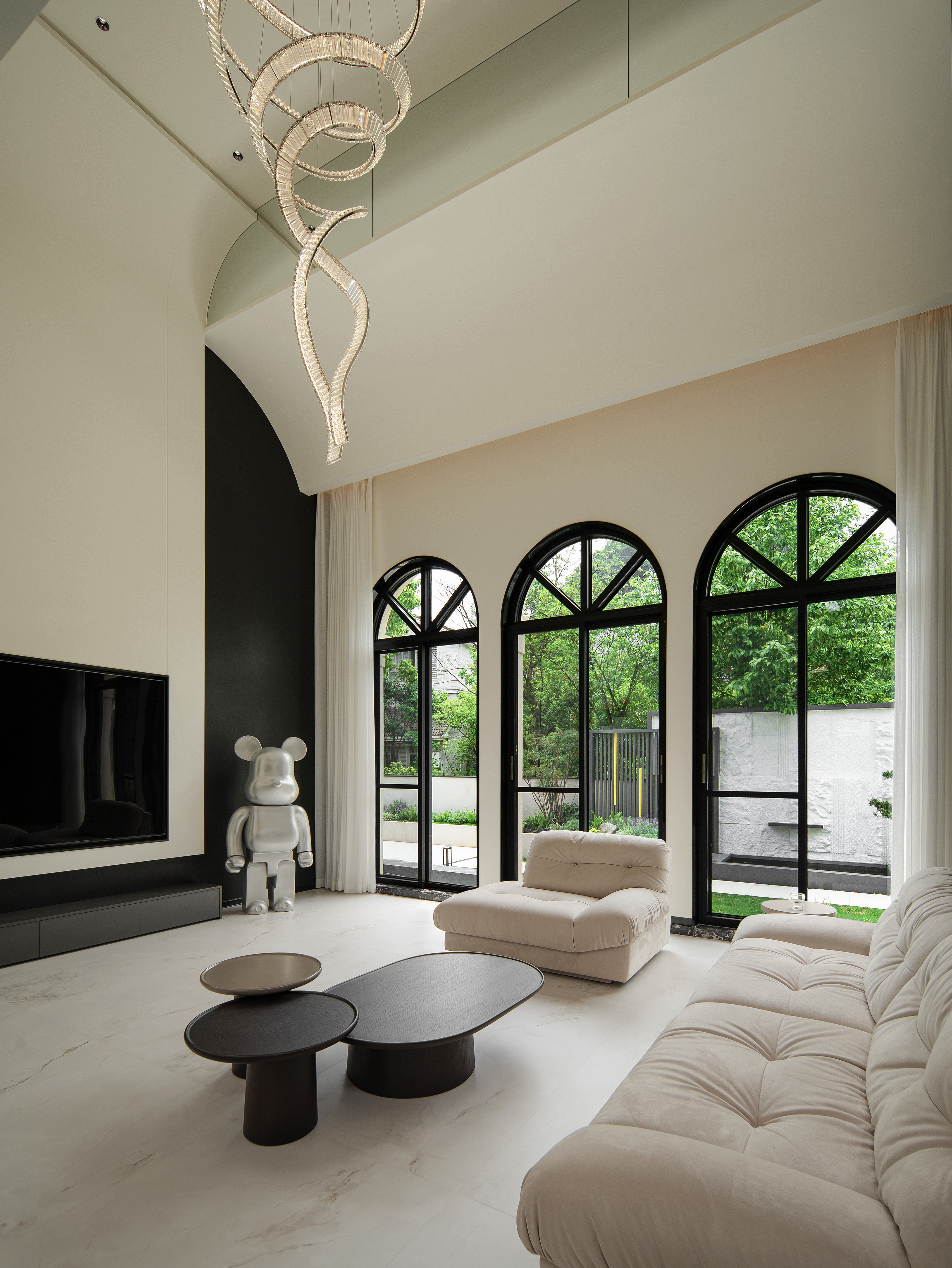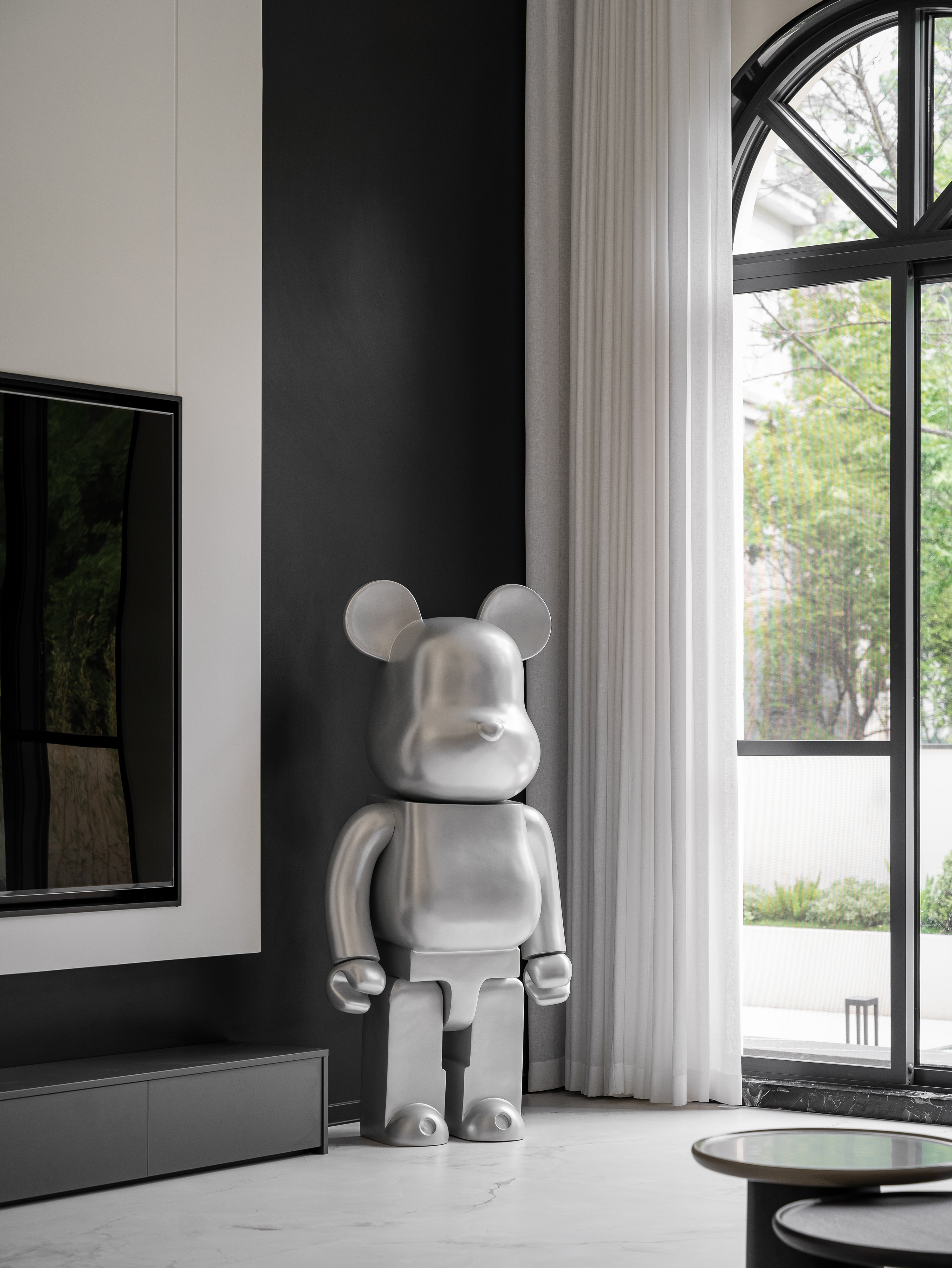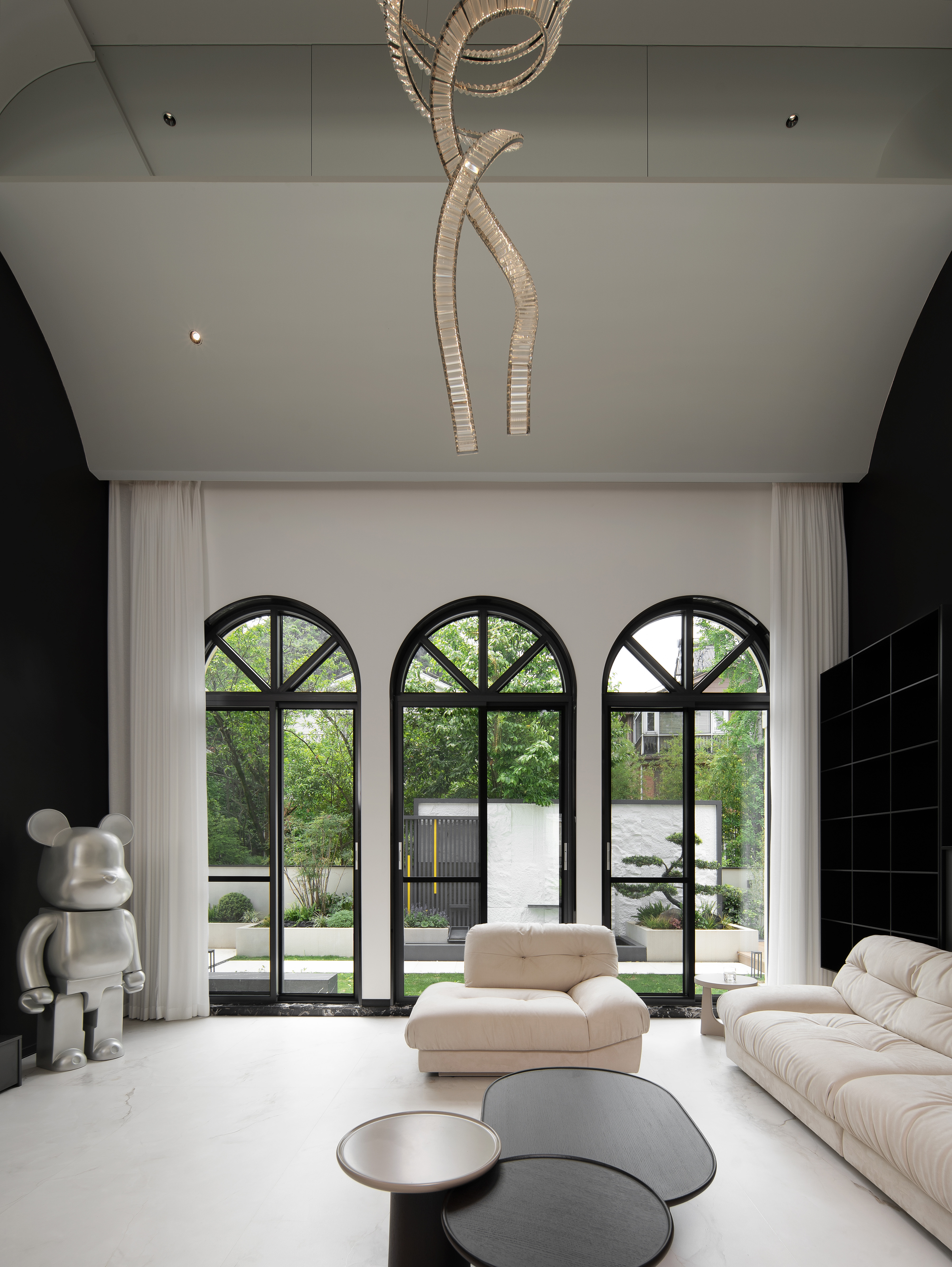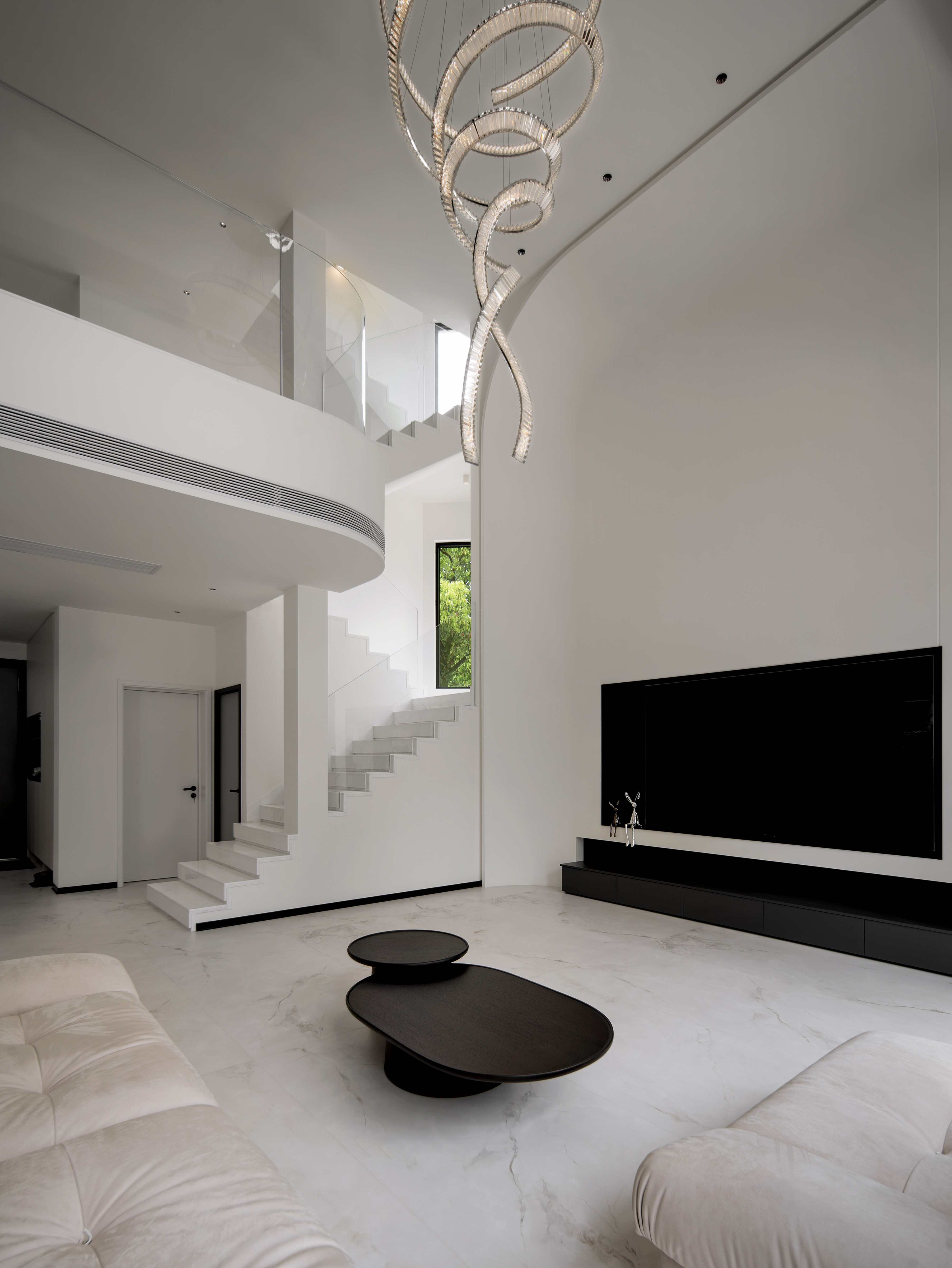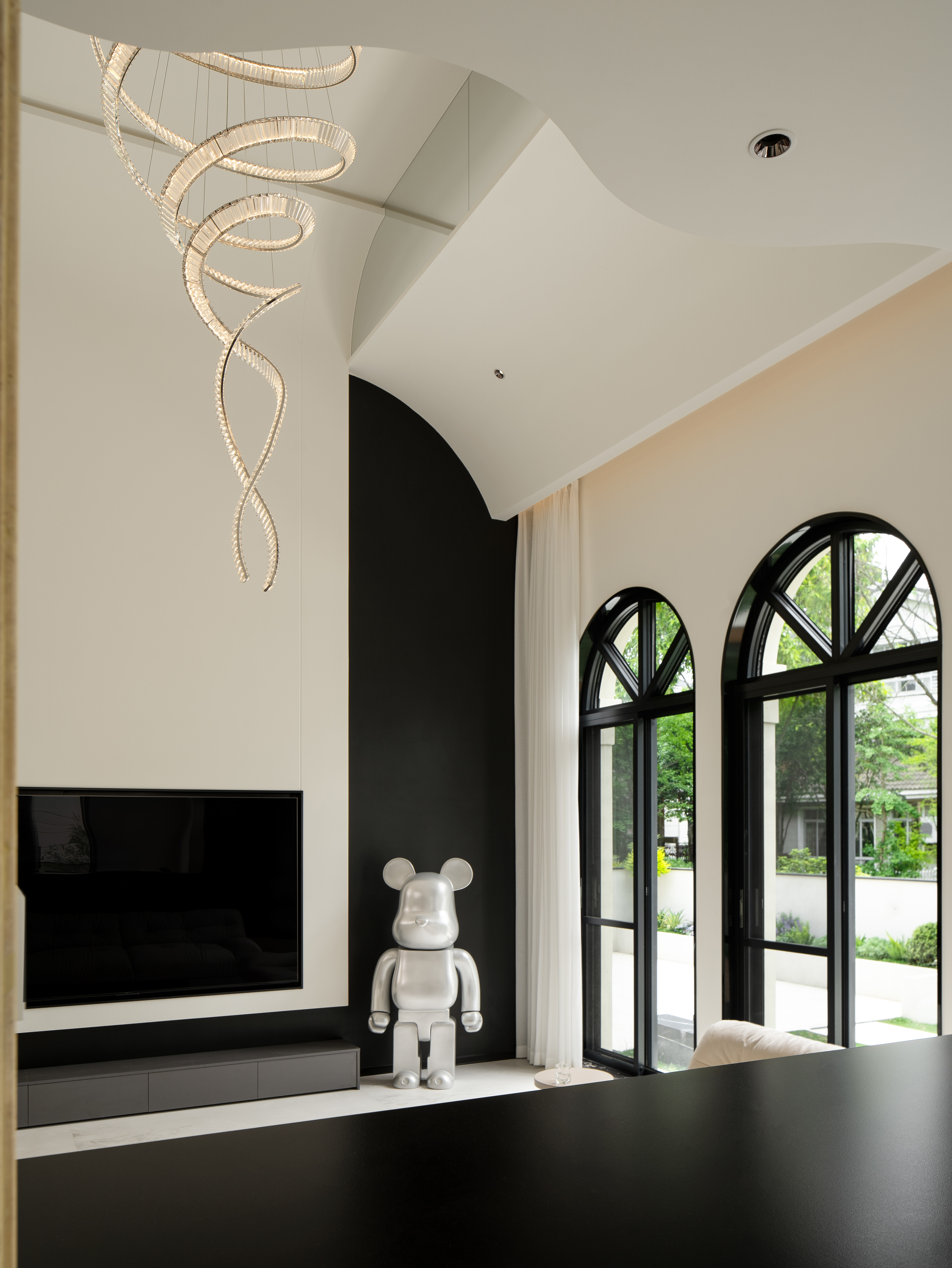 空间意境:本案采用黑白极简风,没有复杂的颜色,化繁就简,依旧能以利落的线条描绘空间层次,描绘房屋主人的居住态度,剔除复杂的装饰,以简洁的黑白灰语言进行风格叙述,将精致极简、从容优雅藏于内,将平静内敛呈现眼前。