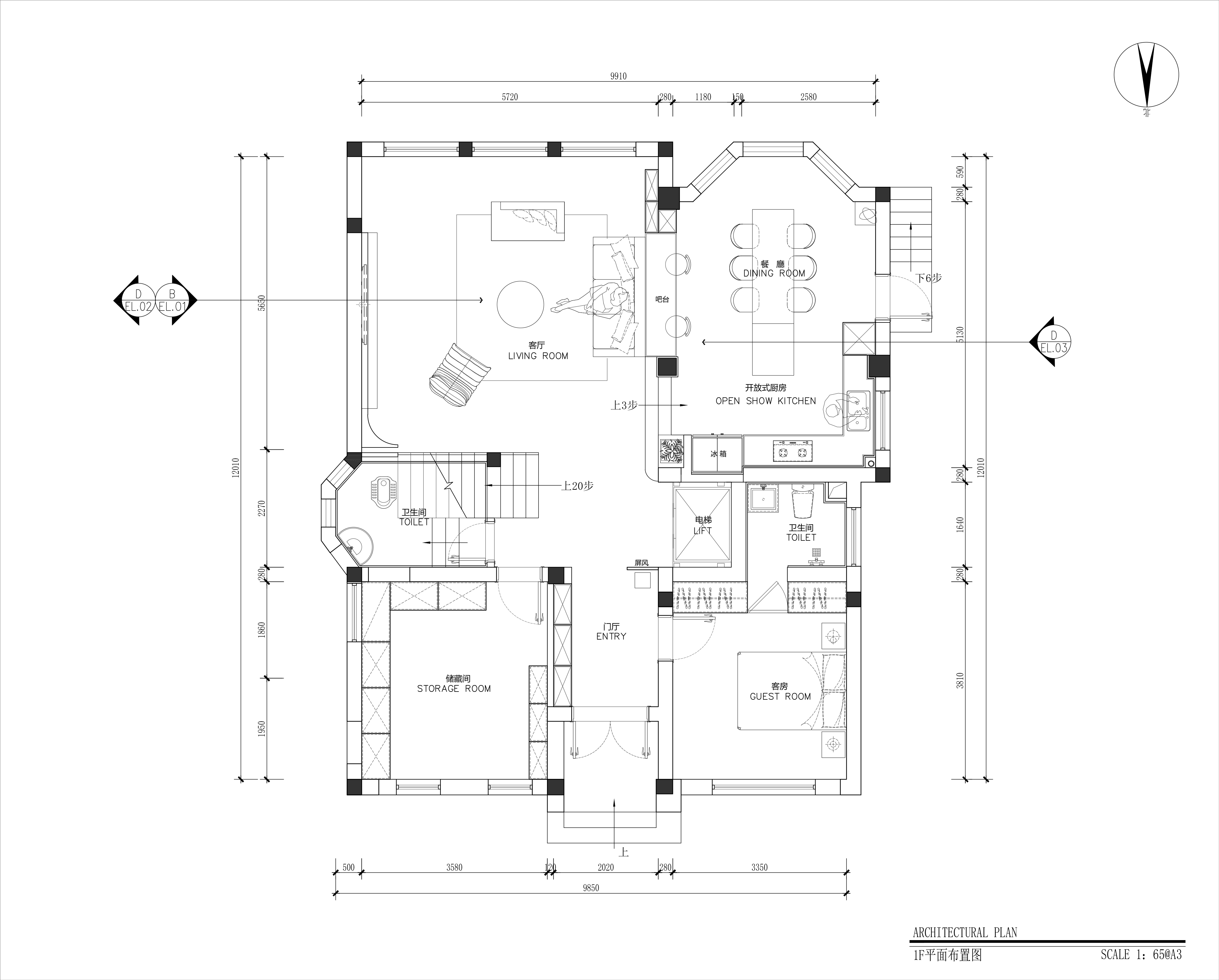 设计选材:基于整体效果及装修预算考虑,使用常规的瓷砖,涂料及石材,墙布等。