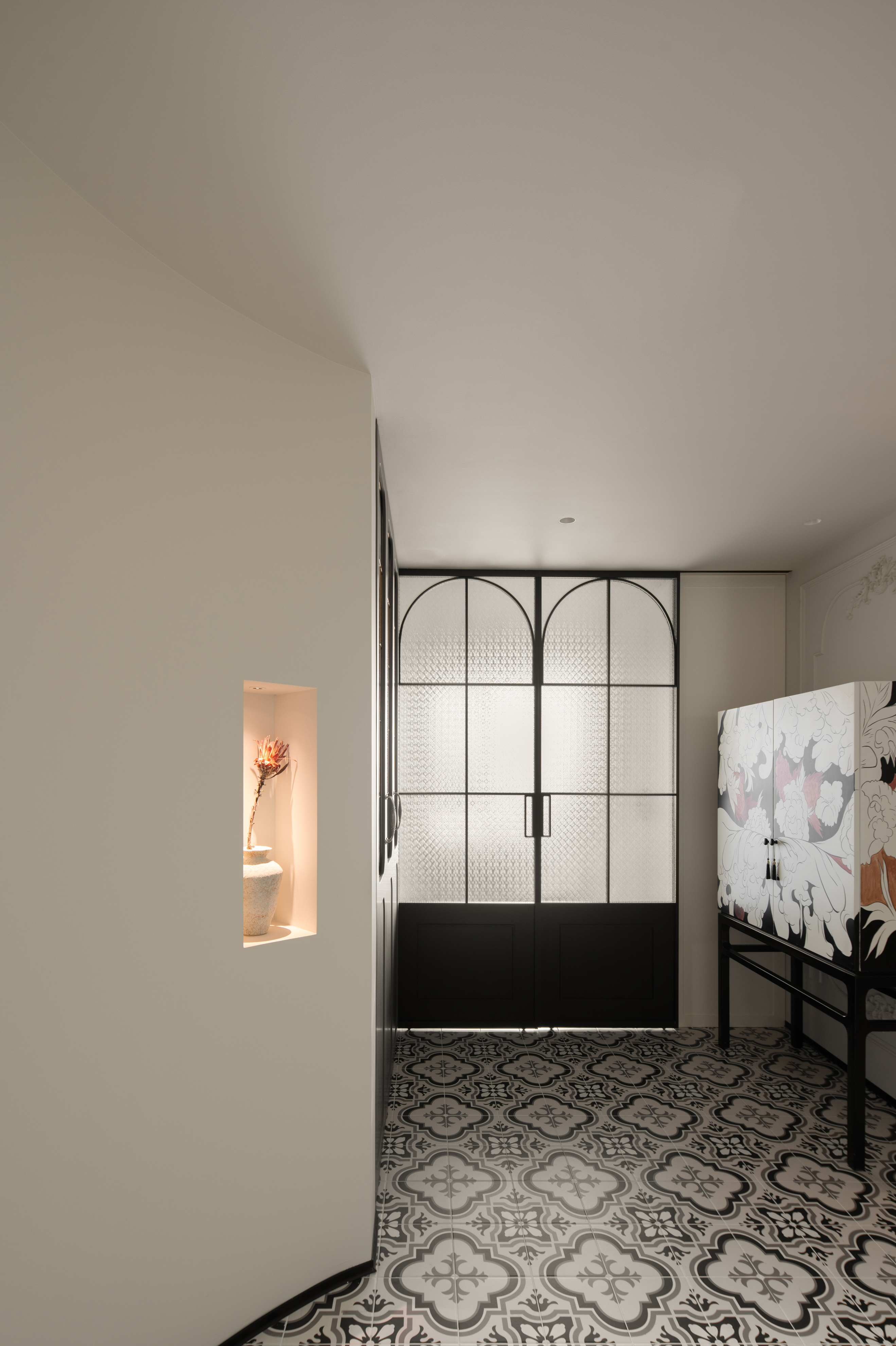 拆除原始玄关墙体,做弧形过度。既可以做入户仪式感又可以完成入户动线优化。