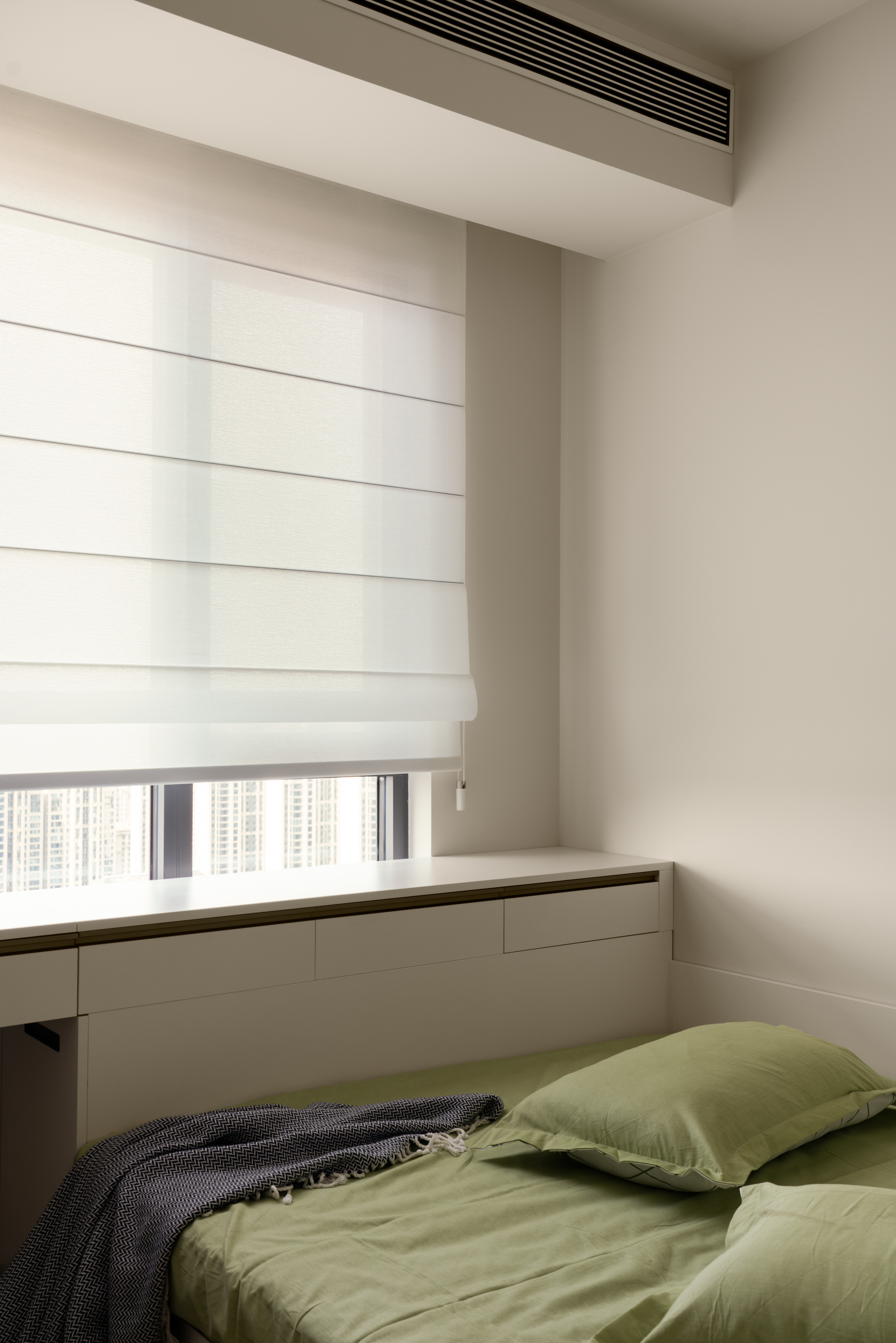 次卧整体浅色系配色,展现自由松弛的适眠氛围。