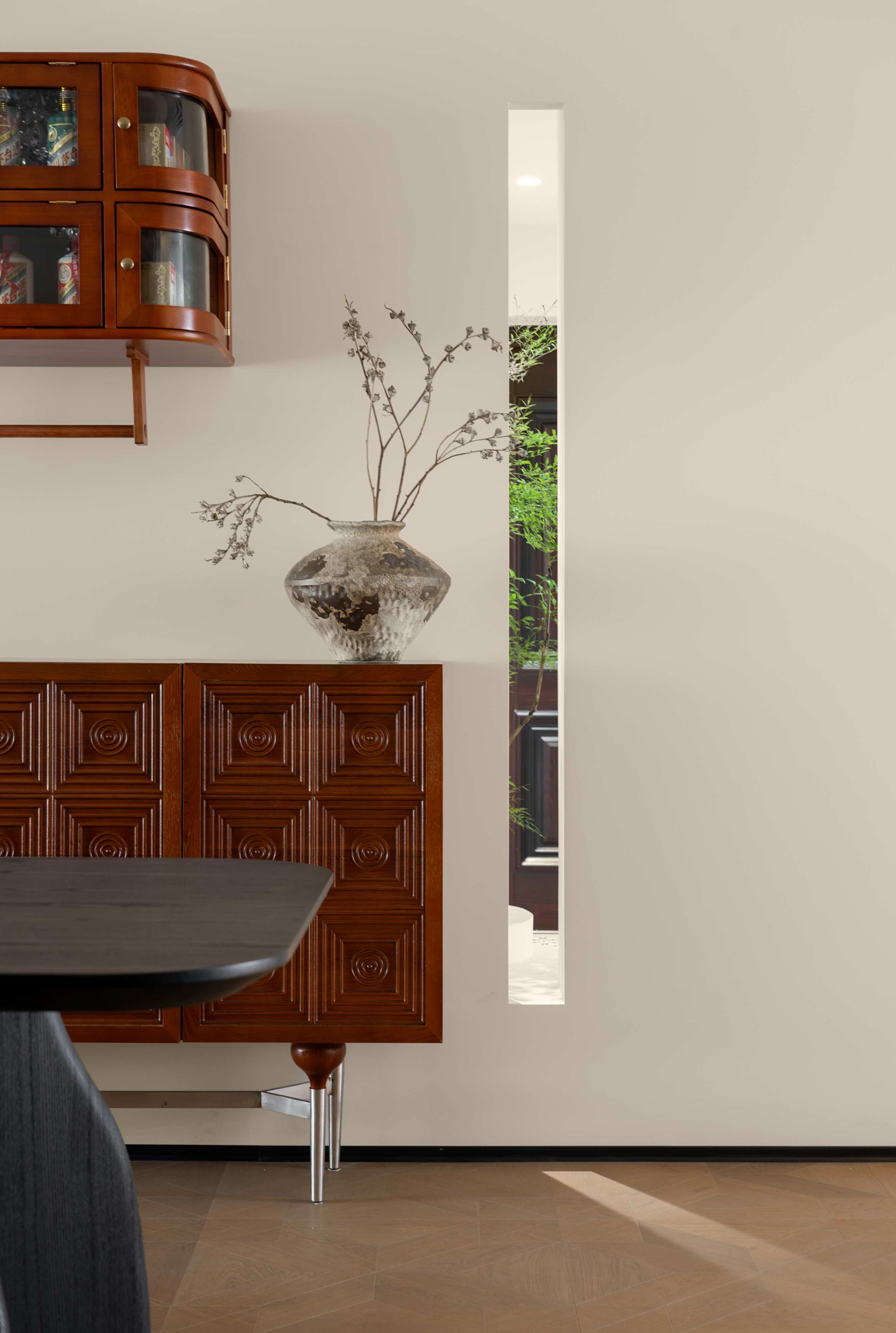 餐厅增加中古柜,可以用做餐边柜使用。