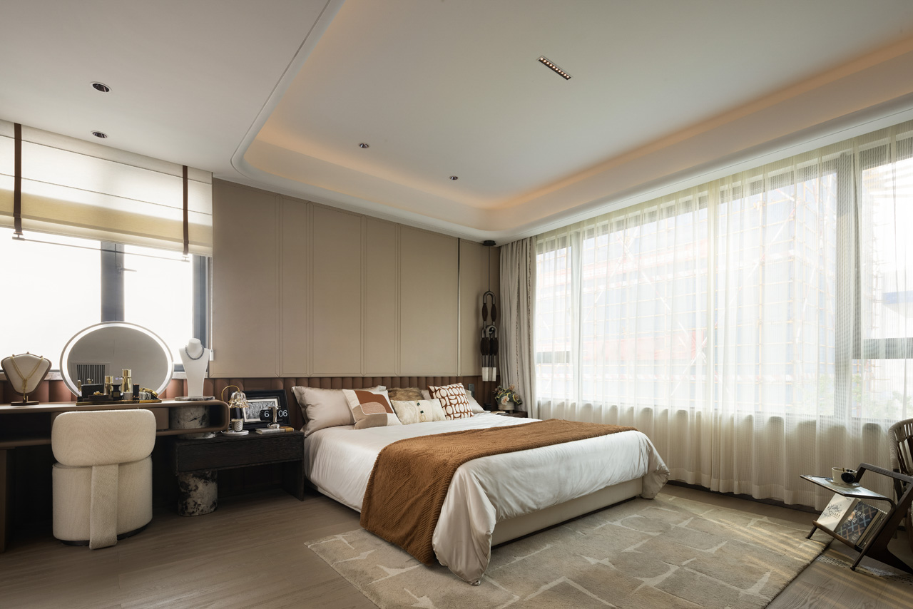 但空间的核心,始终向着「沉睡」温柔倾斜:床榻绵软如陷云间,厚帘垂落拢住满室静谧,马毛壁灯漫开恰到好处的暖调,悄悄催生出睡意的落脚。 -