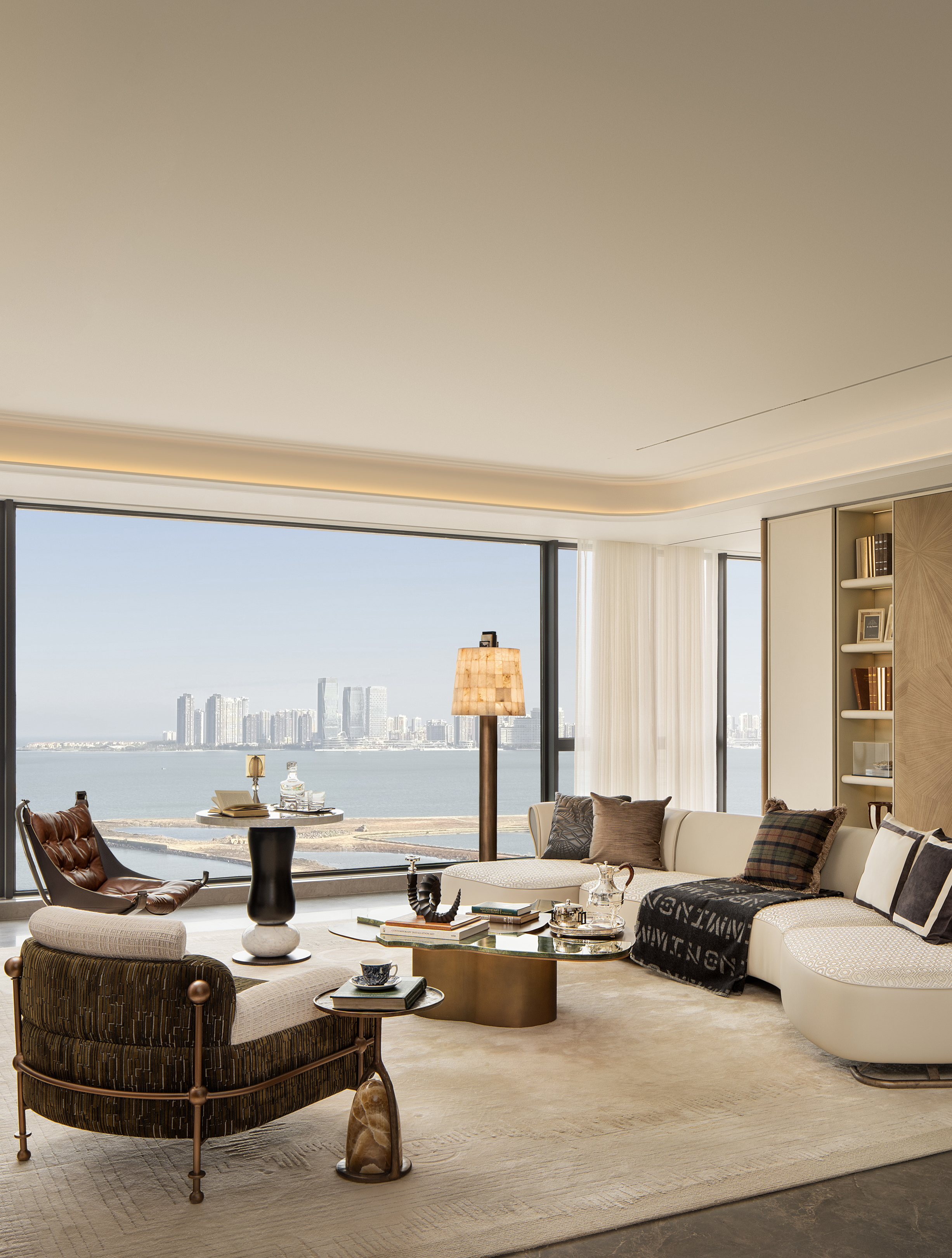 项目定位:本项目坐落于海口湾核心区,坐拥一线海景与四大公园环绕的稀缺资源,作为湾区最后一块住宅用地,以“在地优势+品牌基因”为核心,打造235㎡酒店轻奢风格样板房,精准匹配精英客群需求。