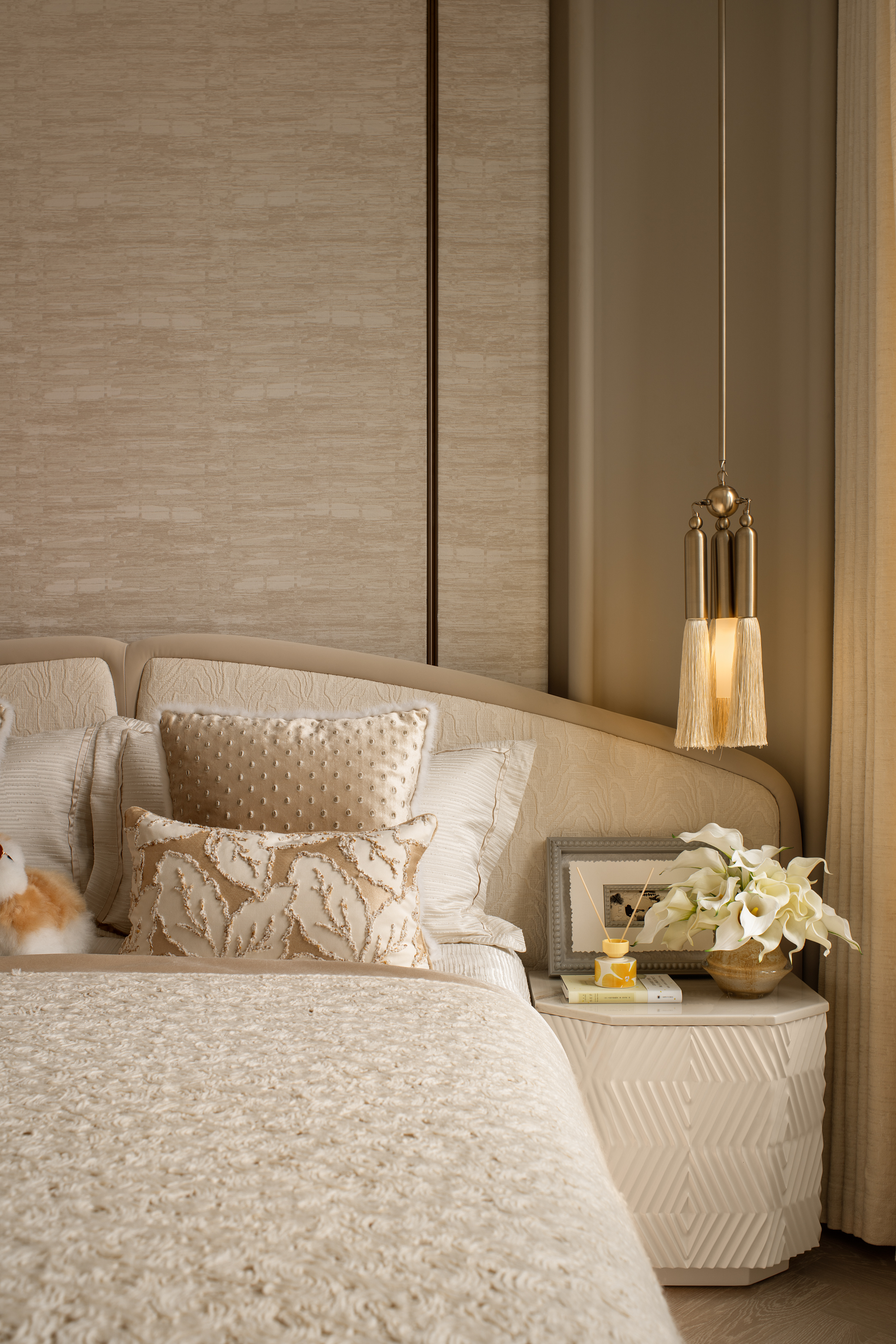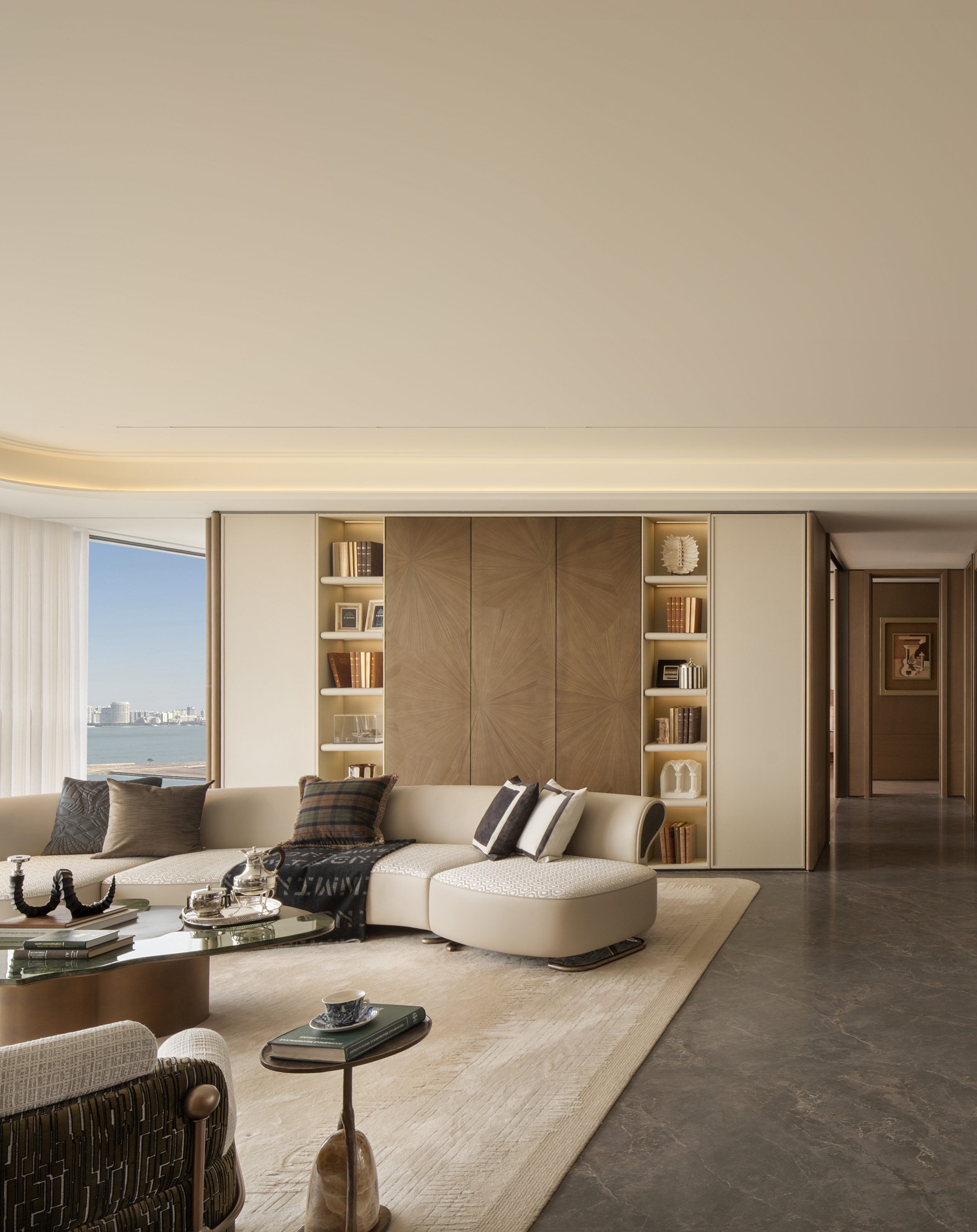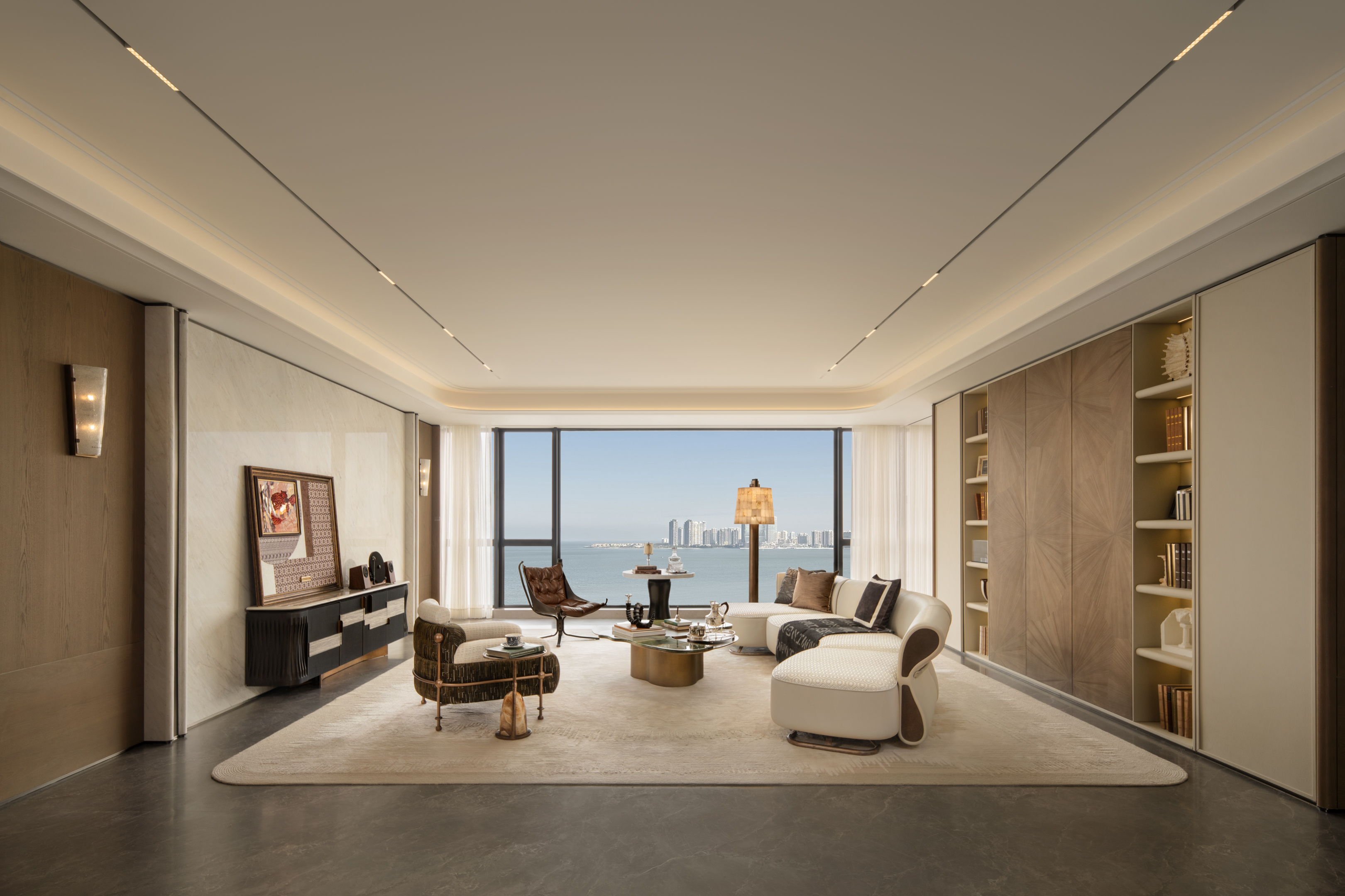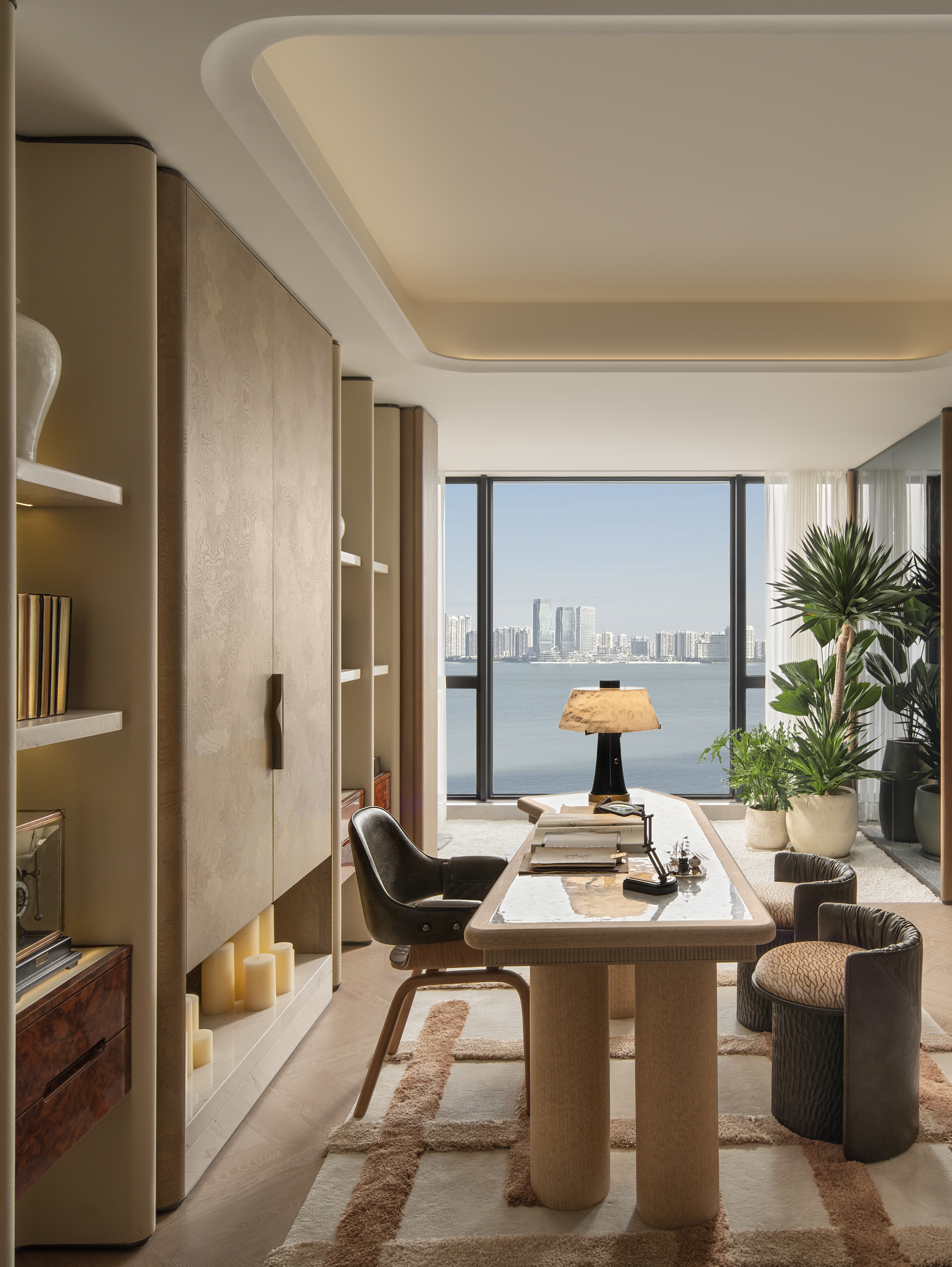 空间意境:设计以中性色调为基底,通过简约优雅的家具造型、艺术化装饰配饰、多层次灯光布局体现空间品质。空间的气质兼具品质仪式感与情感温度的复合美学体系。平衡实用功能的美学价值,体现高端生活场景的雅致体验。