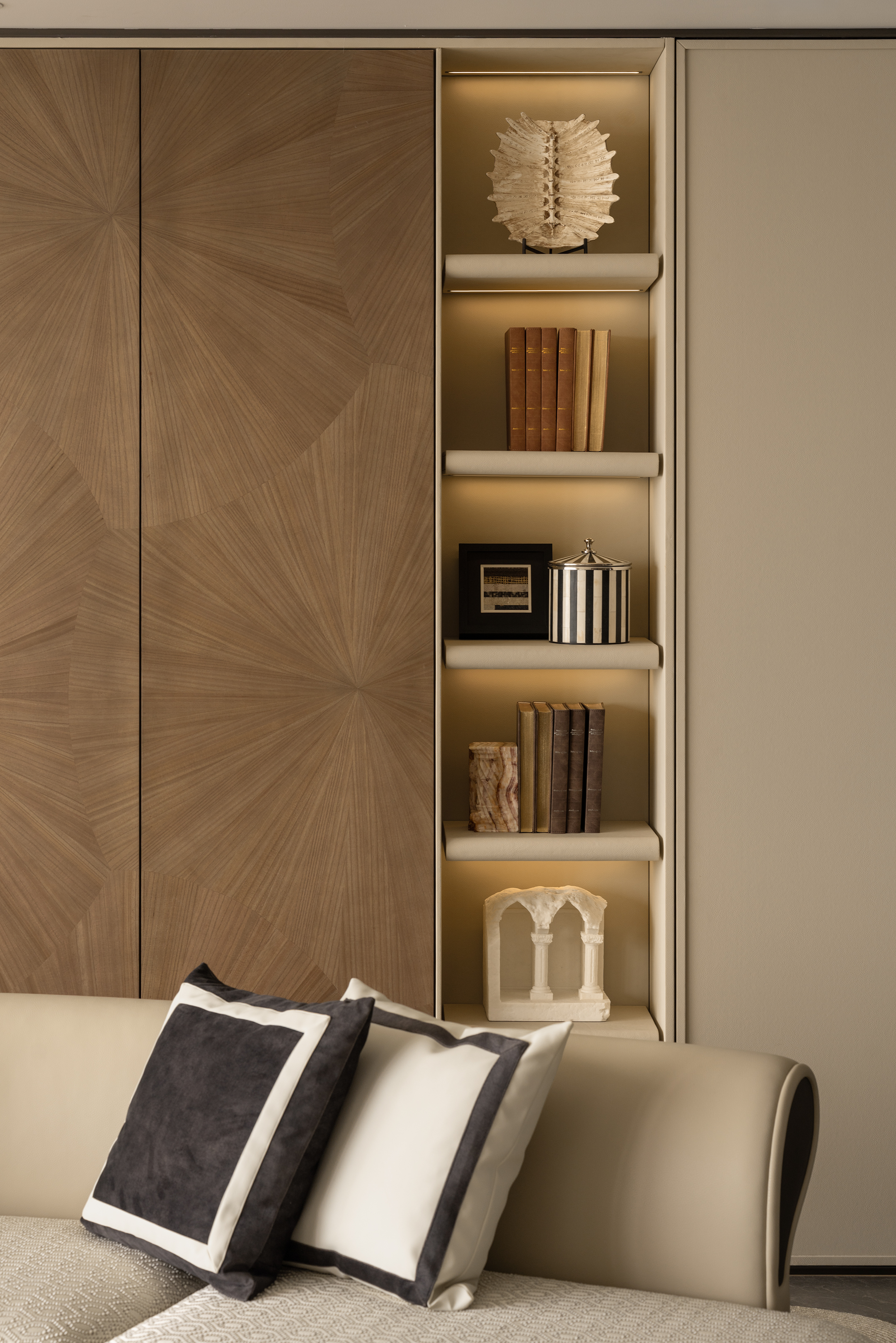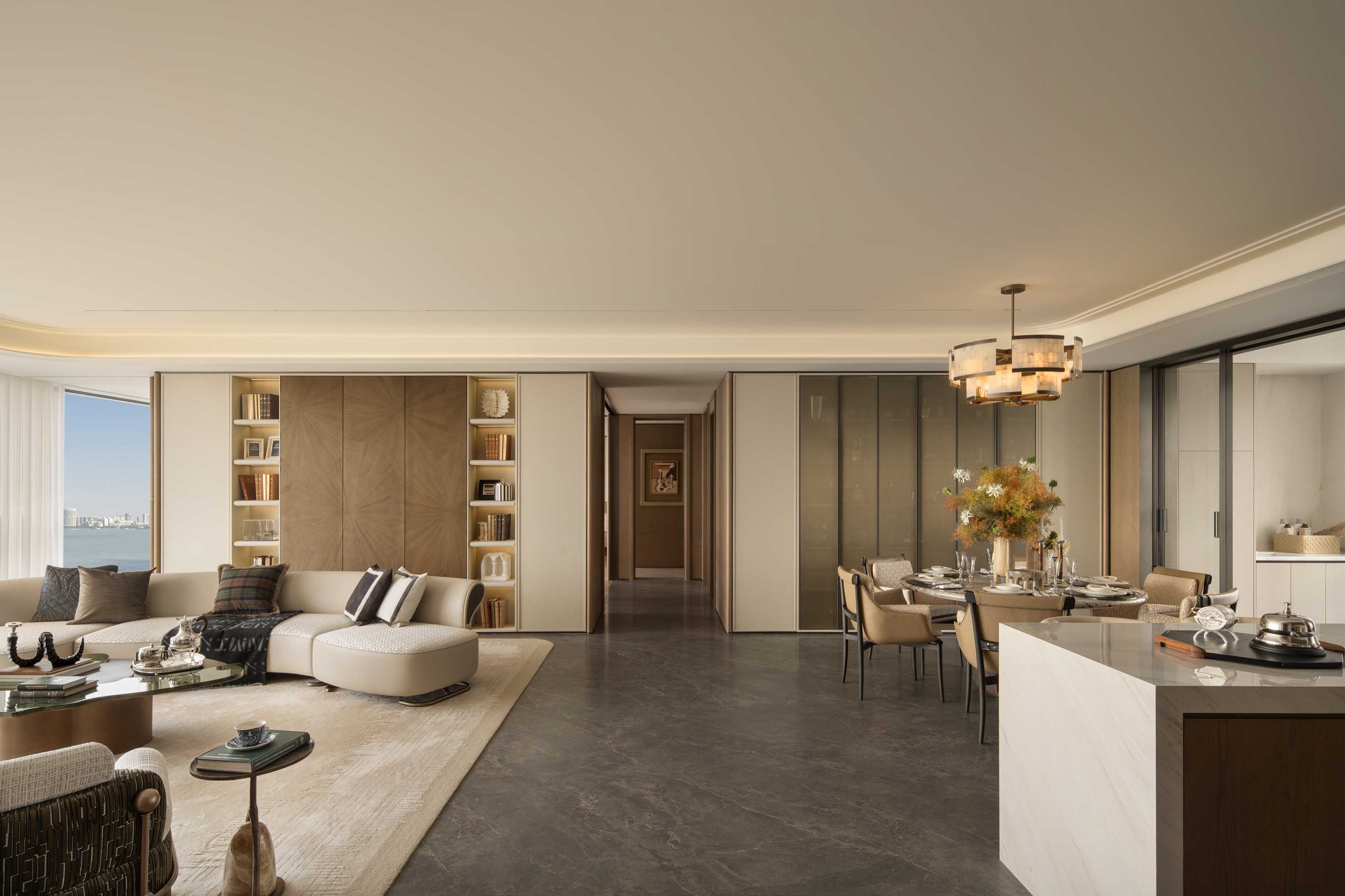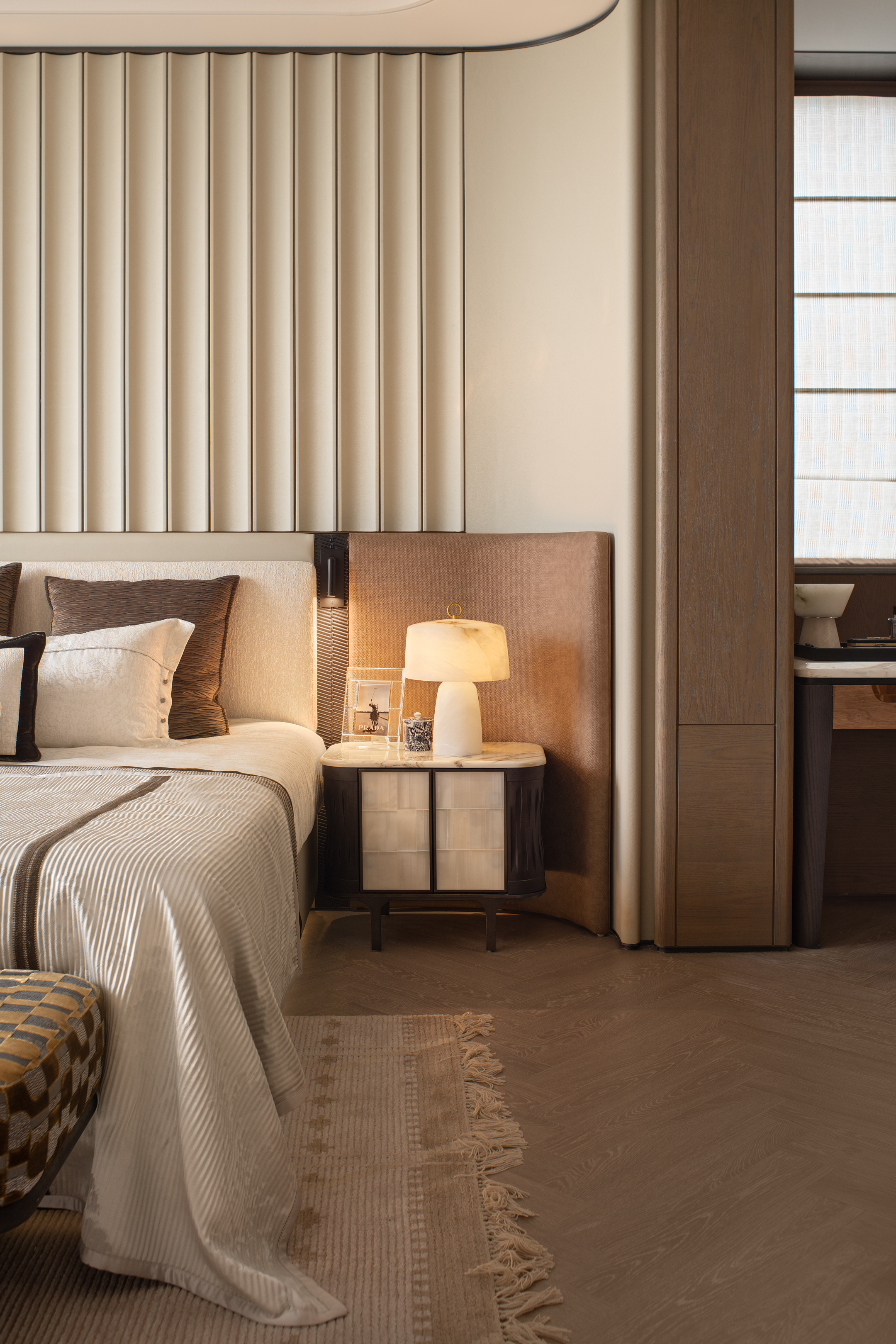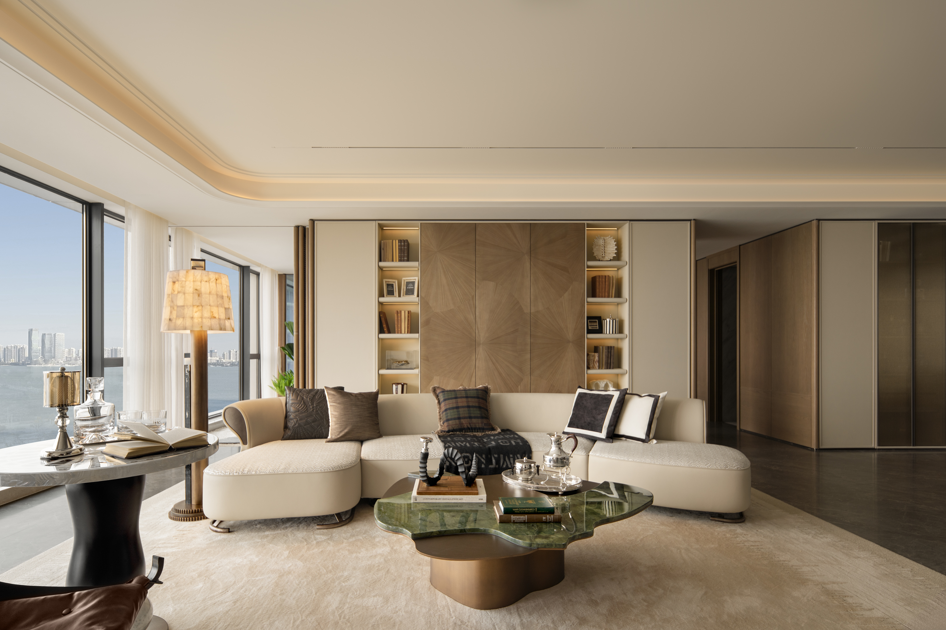 空间意境:设计以中性色调为基底,通过简约优雅的家具造型、艺术化装饰配饰、多层次灯光布局体现空间品质。空间的气质兼具品质仪式感与情感温度的复合美学体系。平衡实用功能的美学价值,体现高端生活场景的雅致体验。