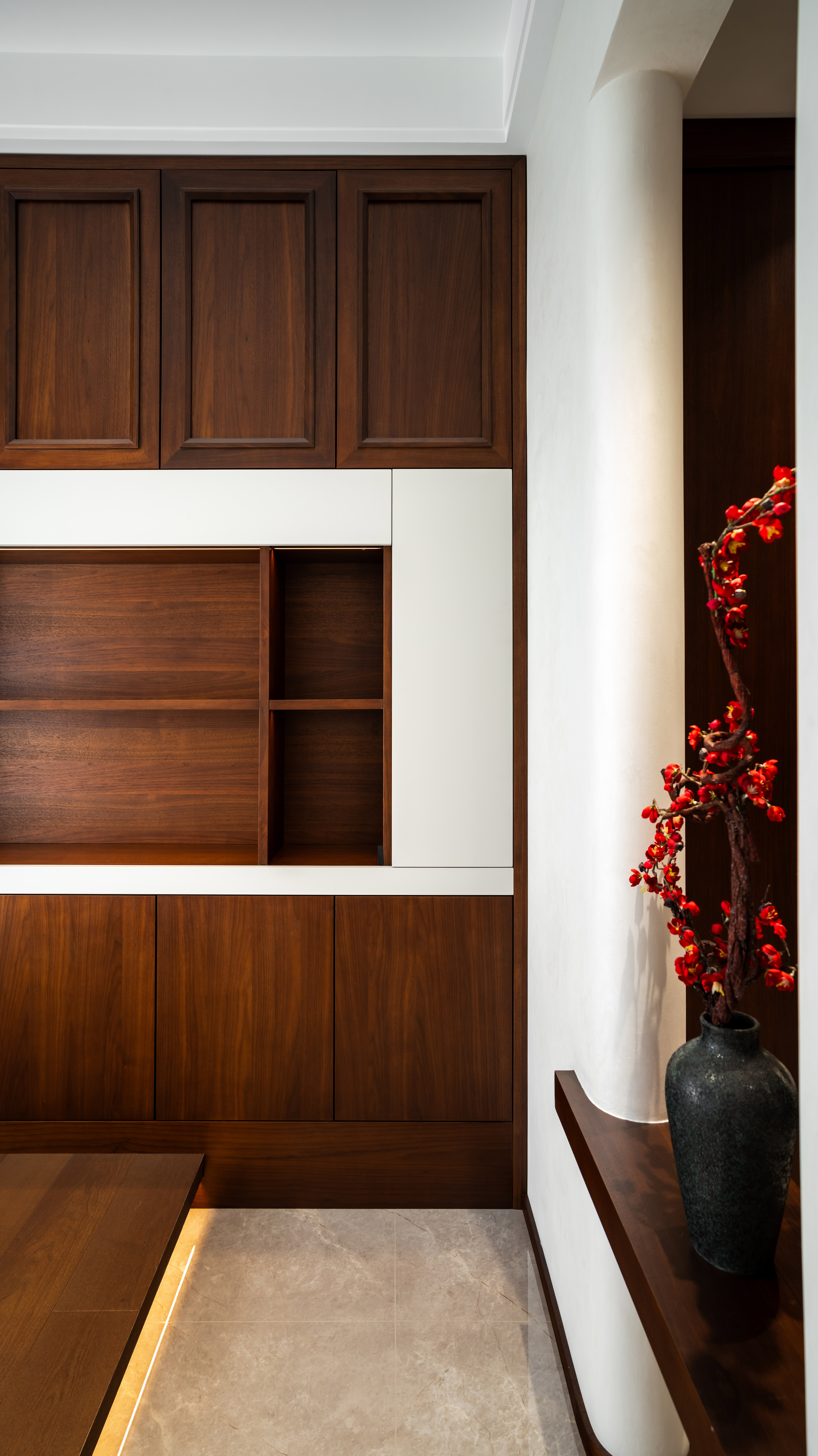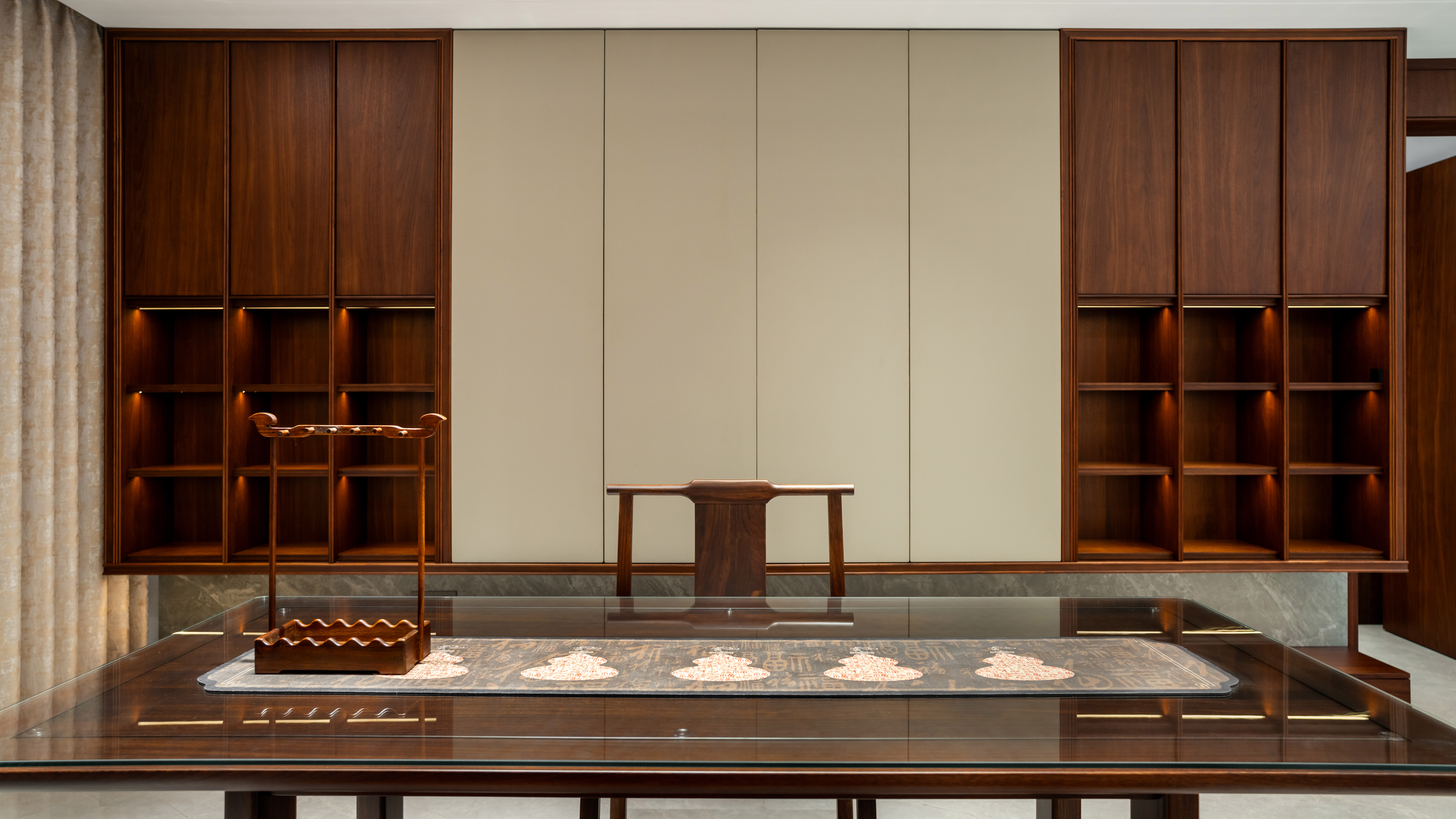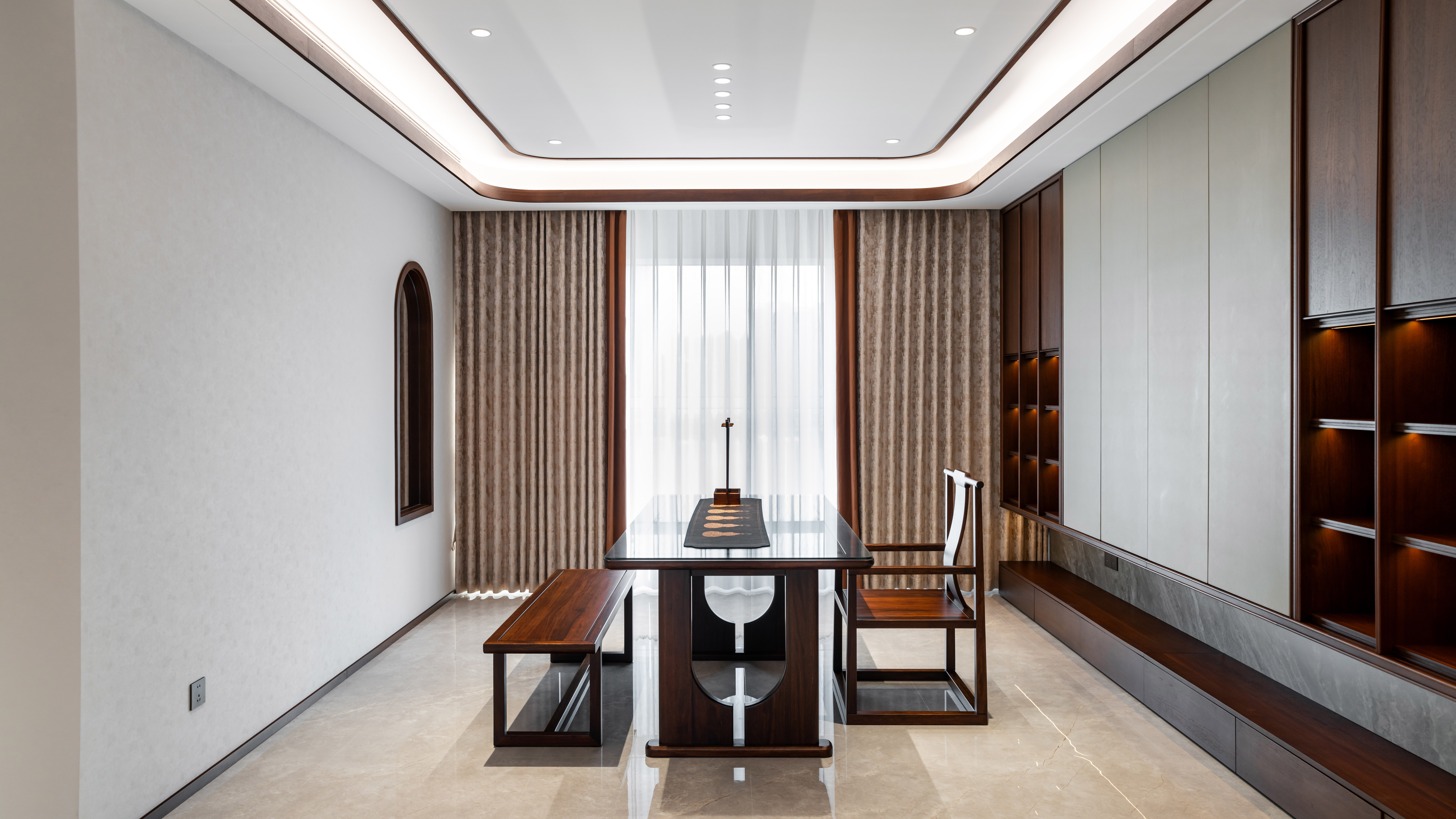 空间意境:空间场景主要结合客户需求及爱好,规划出休闲区及书法区,空间收纳考虑到位。