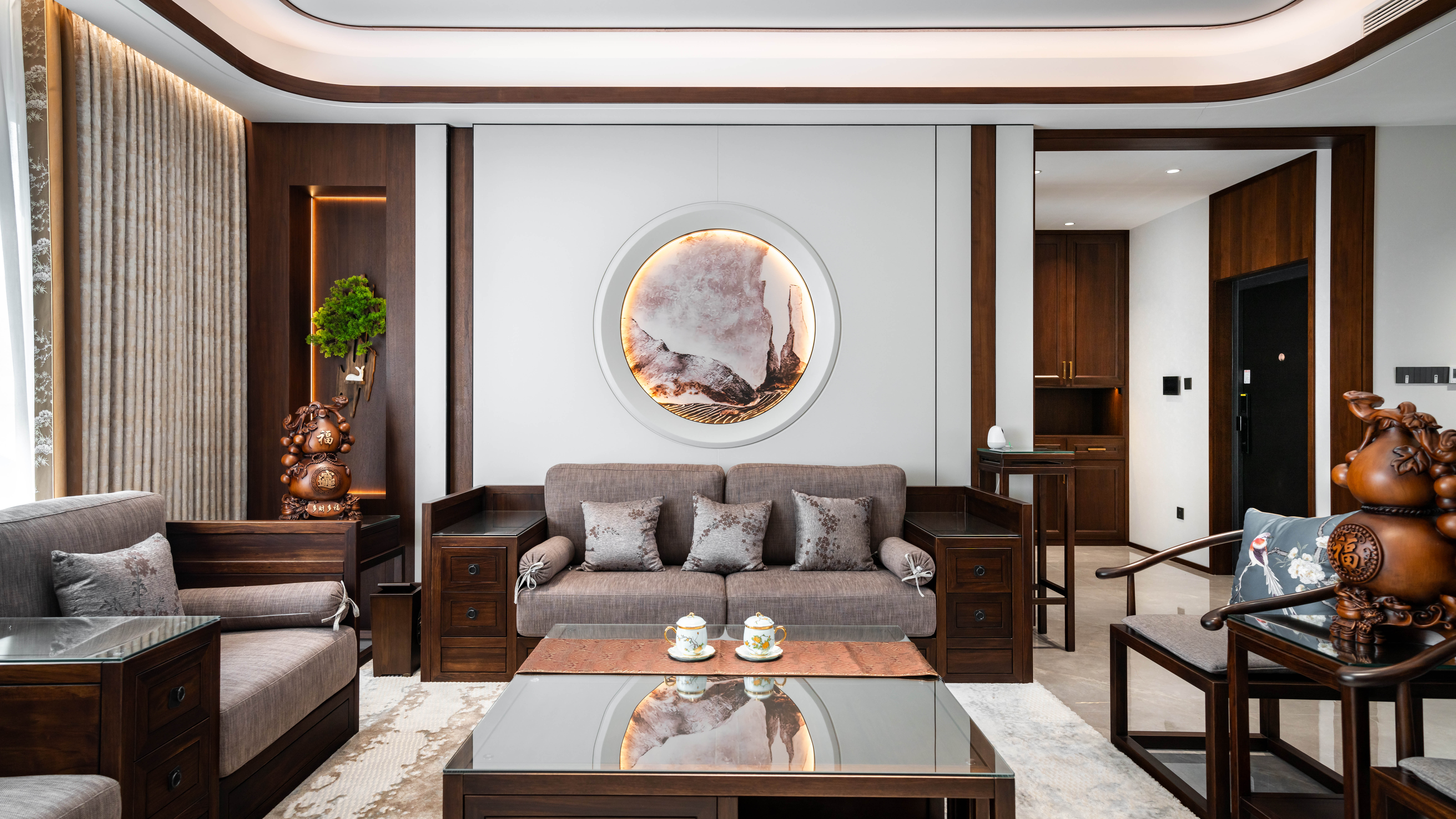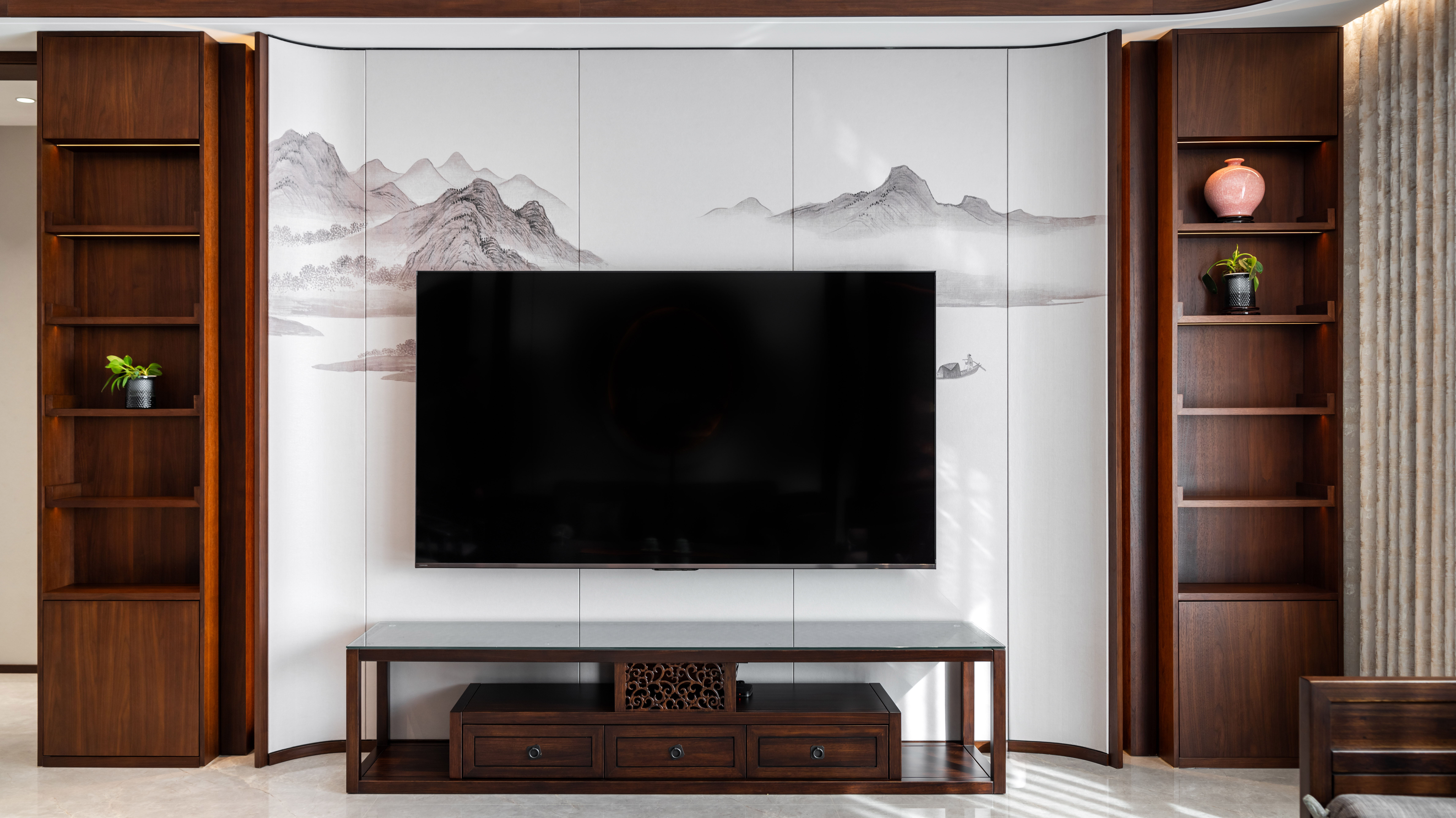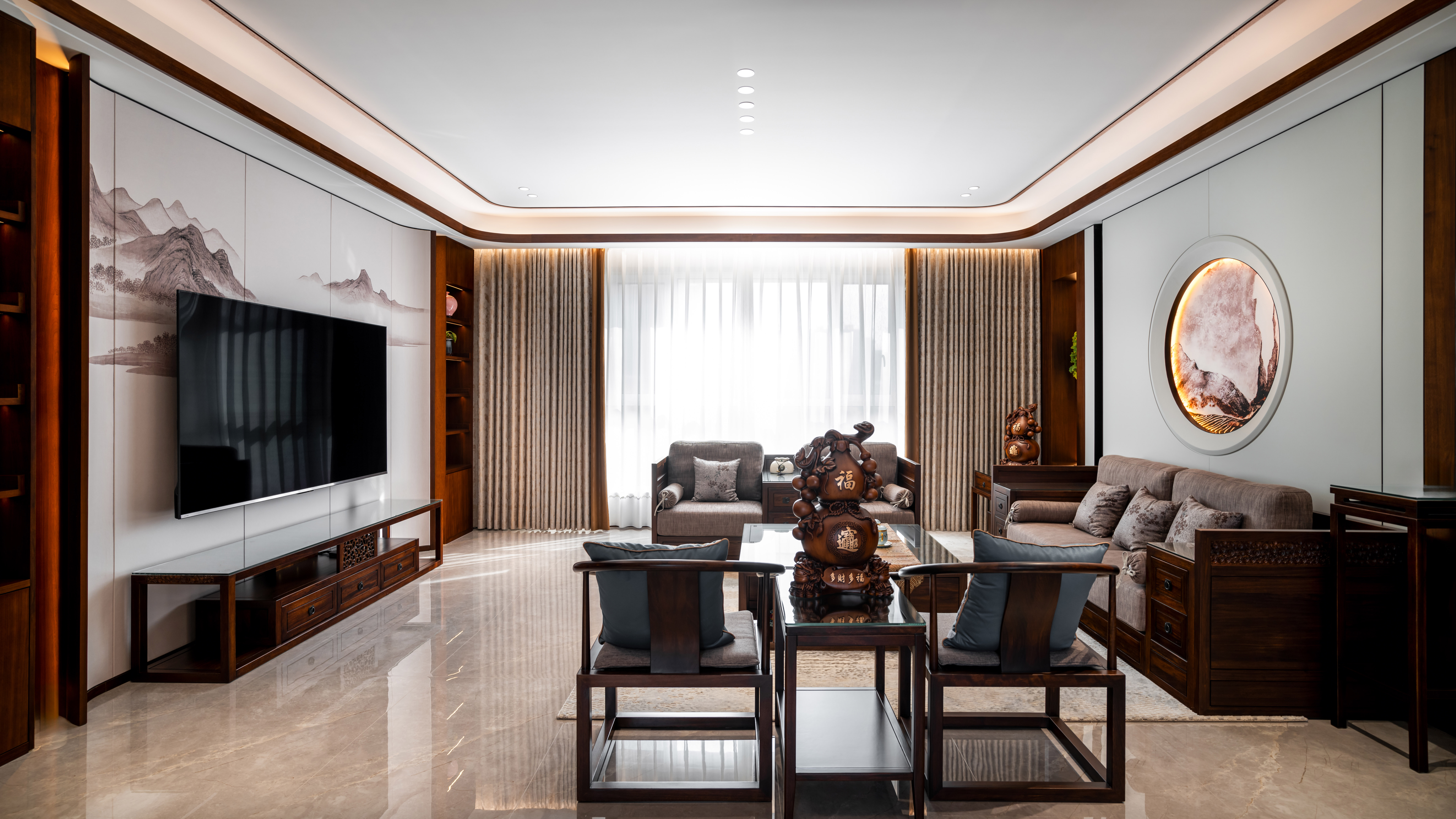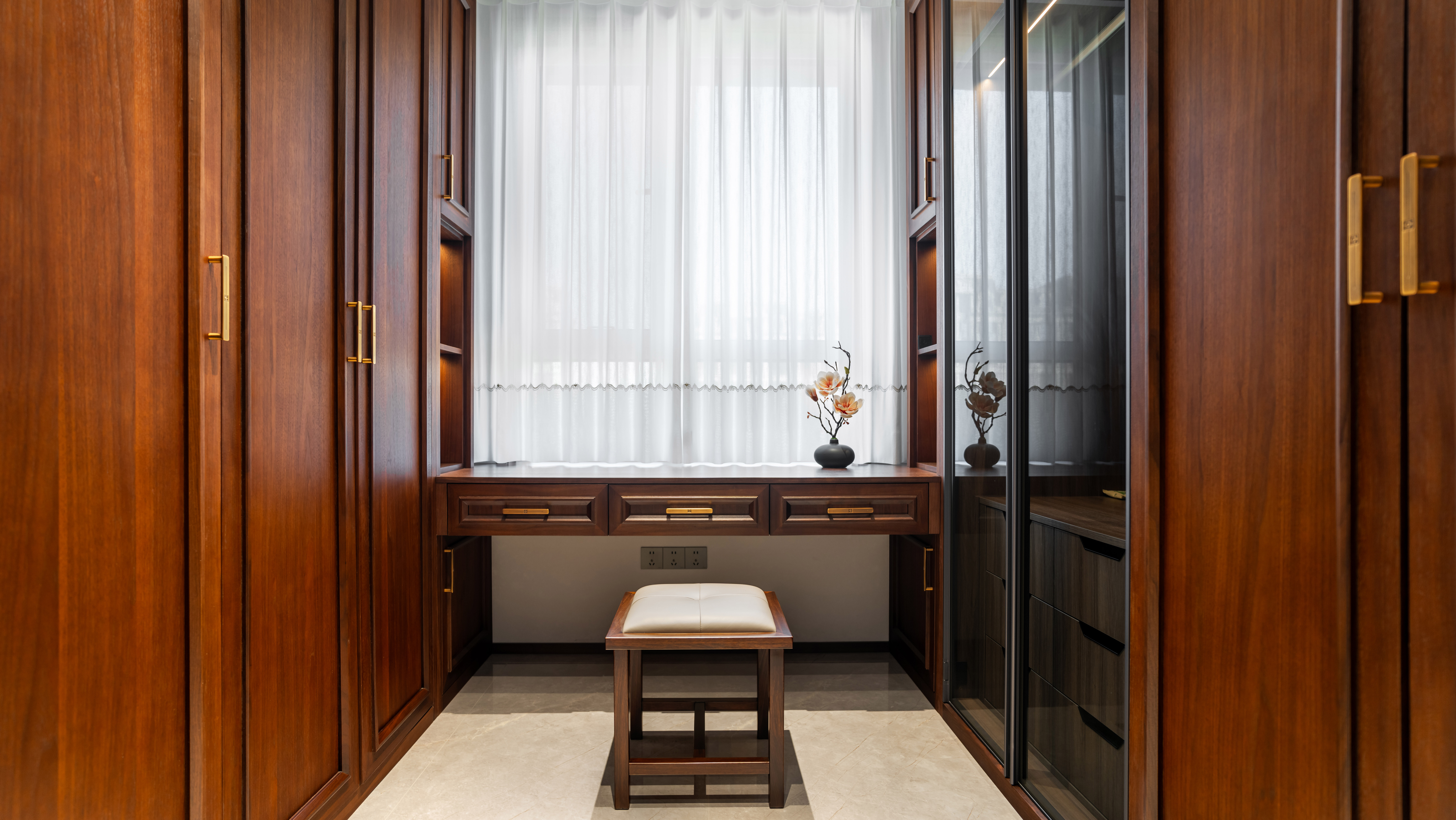 空间意境:空间场景主要结合客户需求及爱好,规划出休闲区及书法区,空间收纳考虑到位。