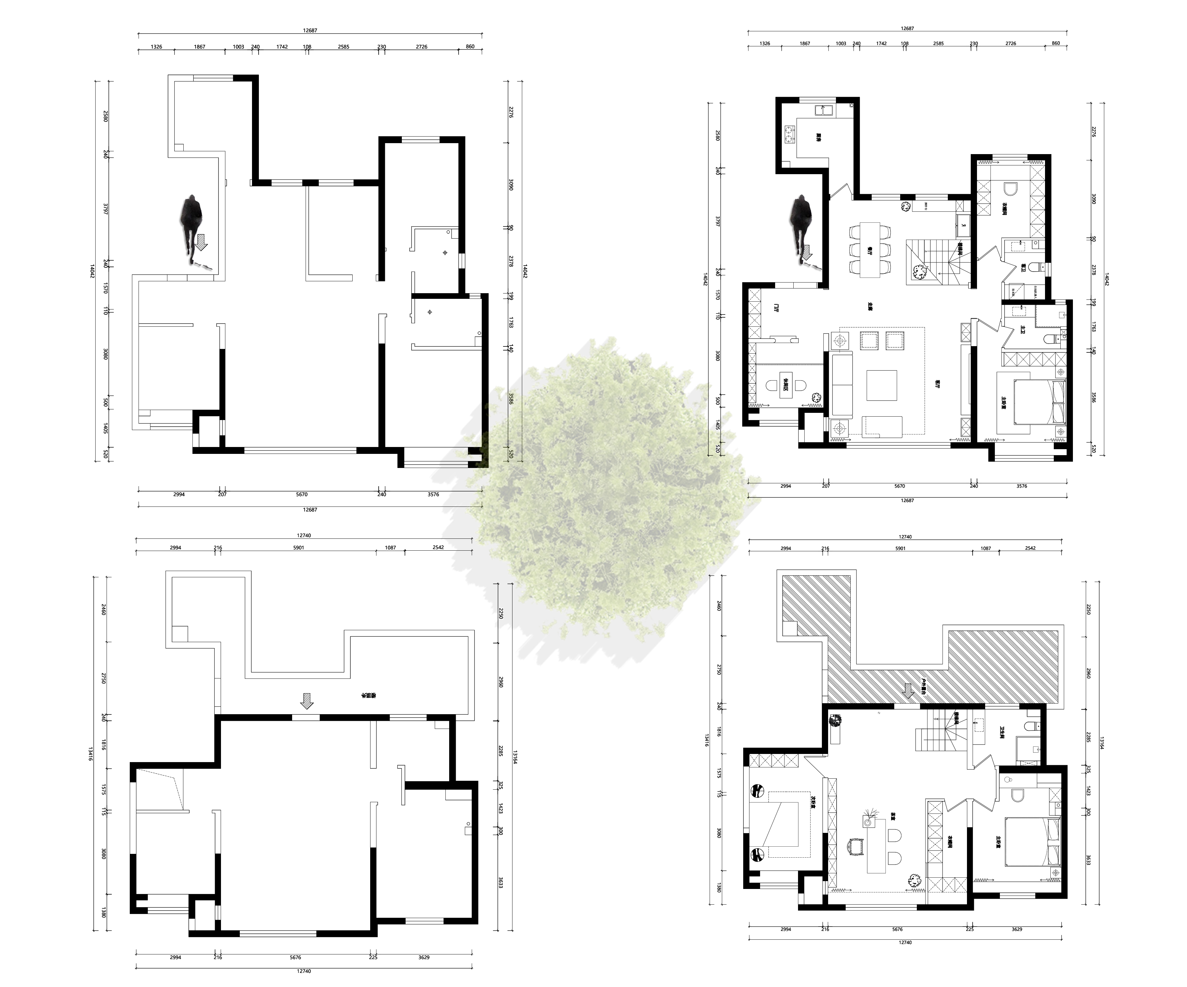 项目定位:此项目为跃层空间,老年夫妻居住,喜欢沉稳中式,空间要求简洁大气,避免传统中式的厚重感。