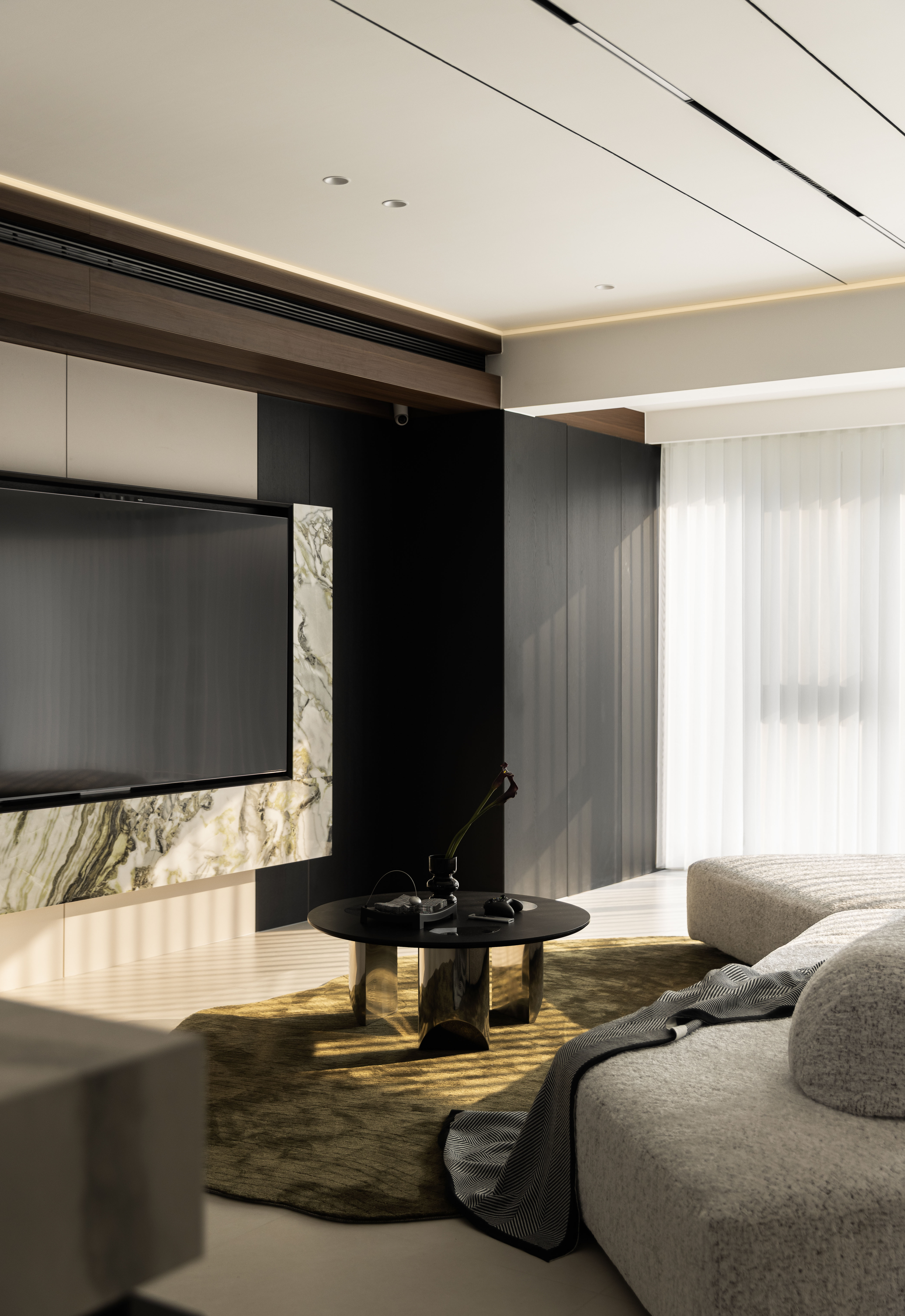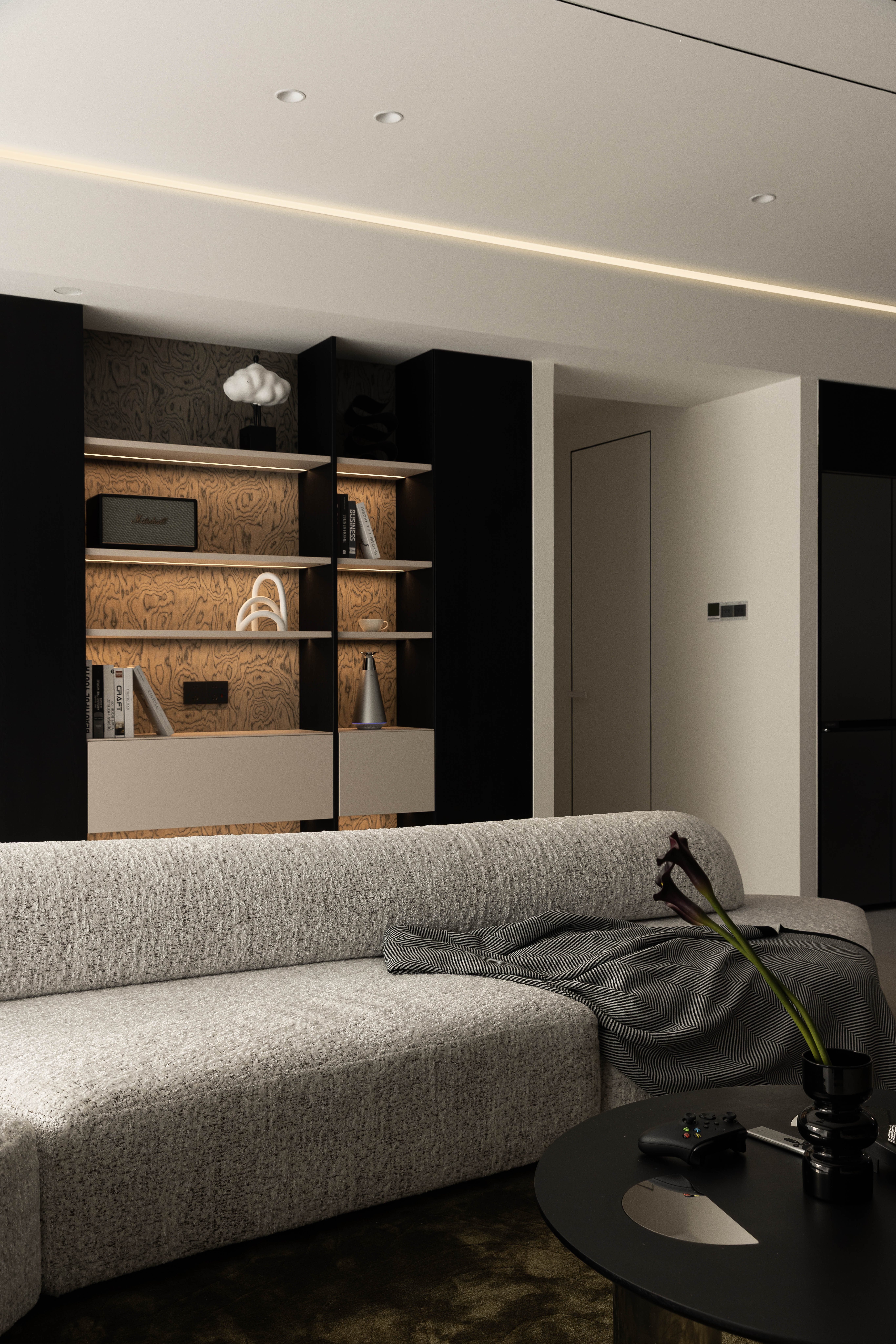 空间意境:风格为低饱和度,深色调的意式极简风格。