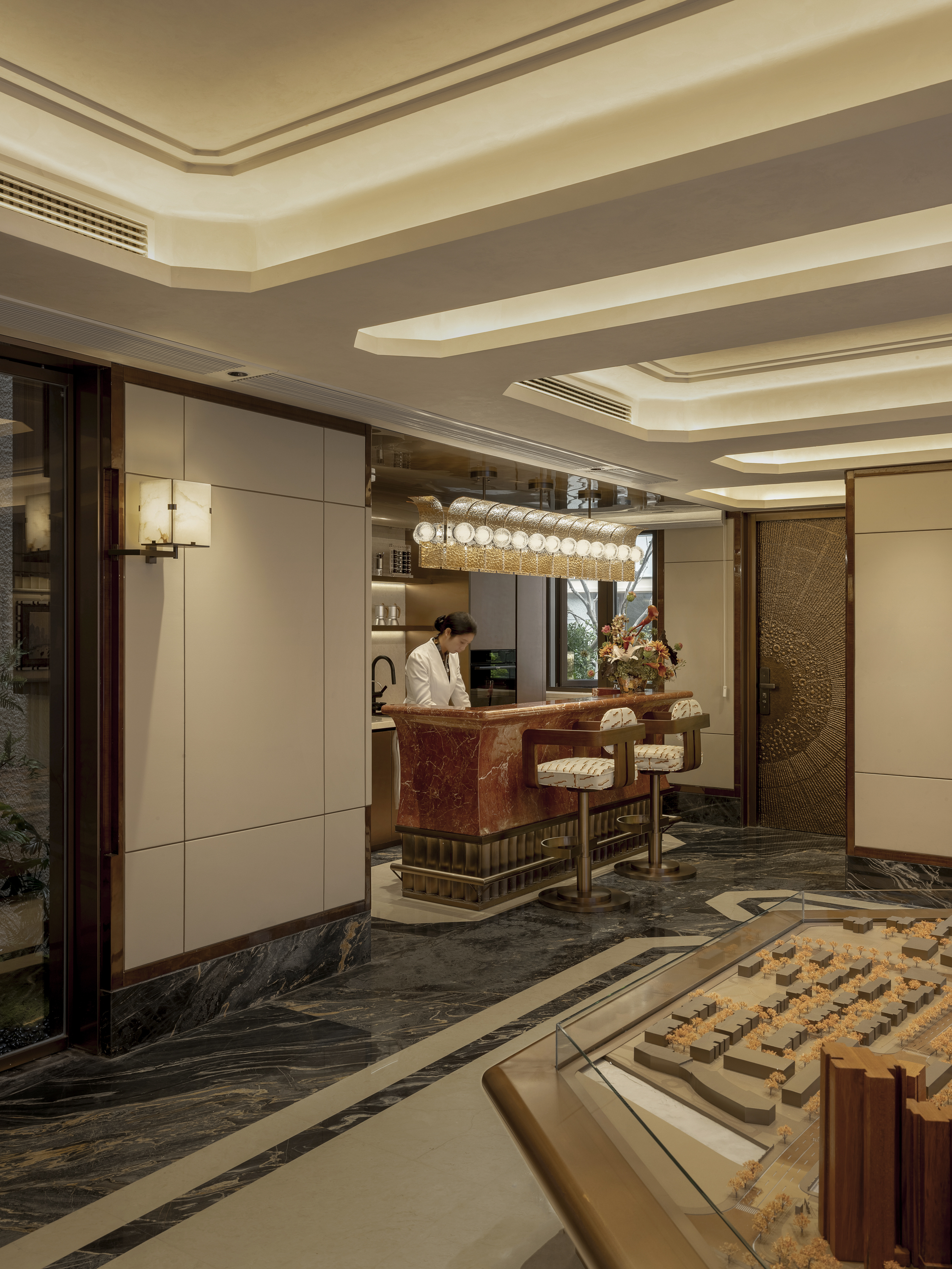项目定位:这是一个具备样板间展示的售楼处,一共5层的独特建筑,有庭院,有阳台,将售楼处沙盘区设置在一层,其它空间还包括会客区,VIP室,超级套房,瑜伽区以及黑胶区,我们希望业主在了解售楼处的同时,直观的感受到未来的生活方式。