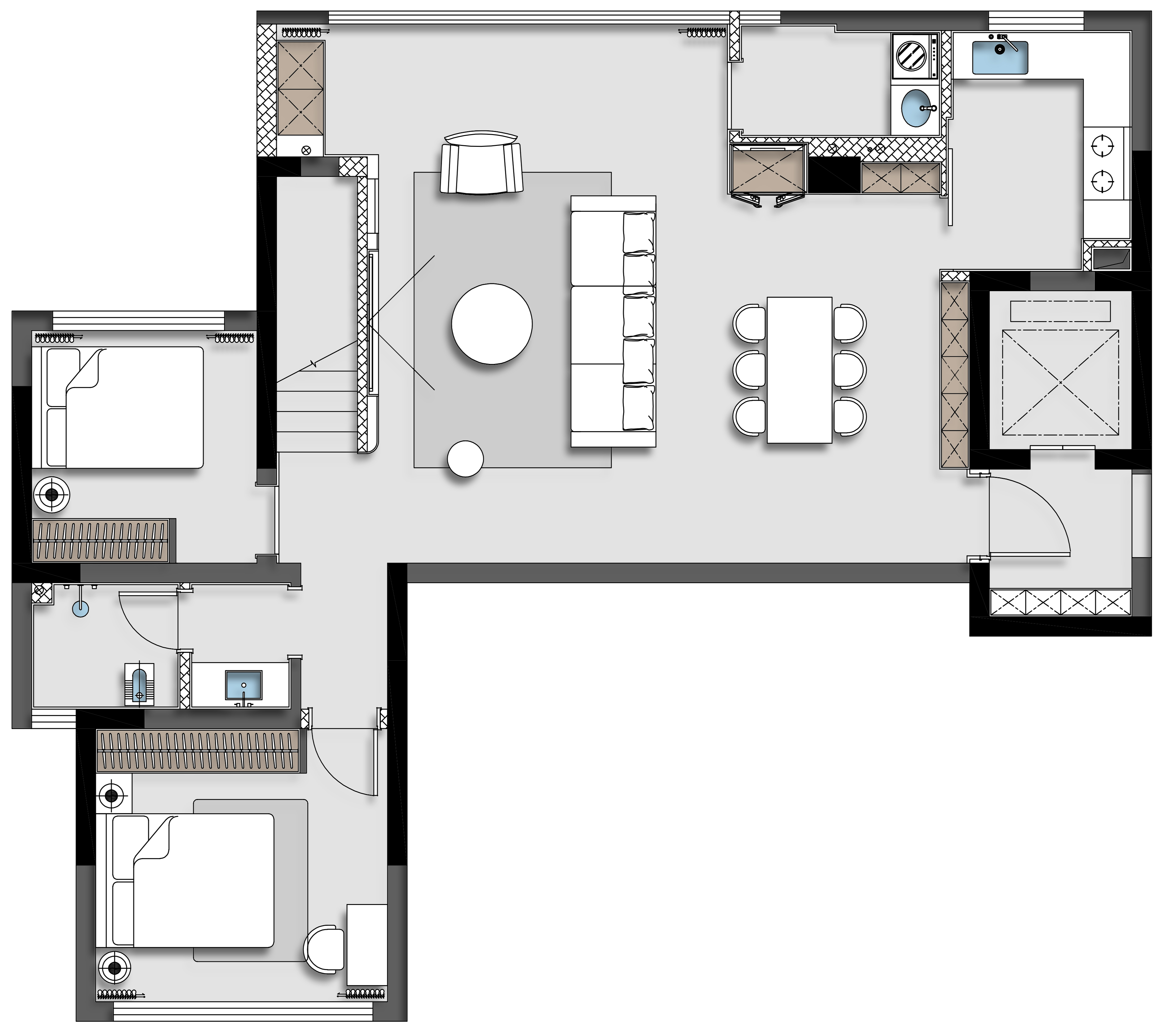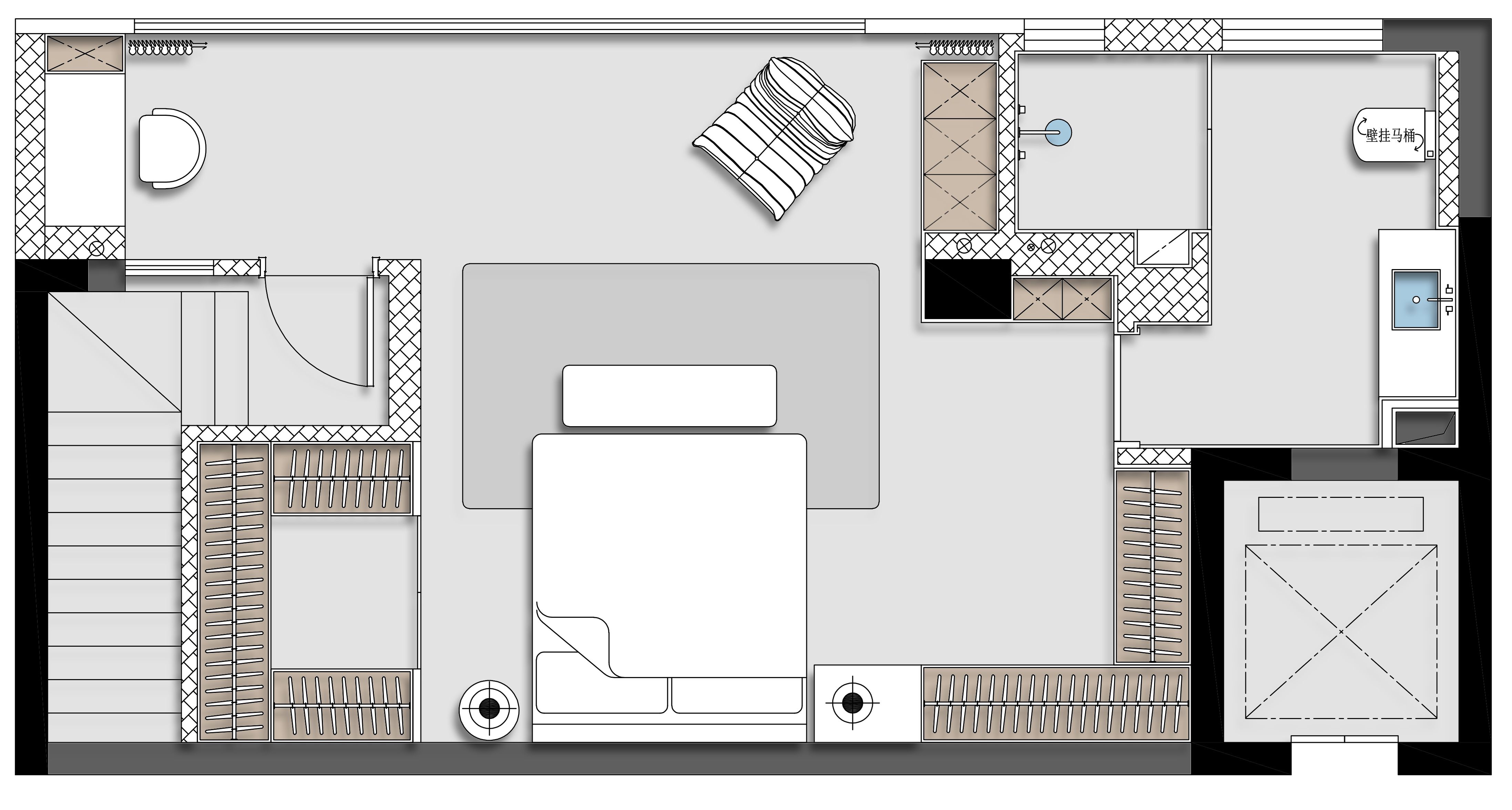 项目定位:客户诉求:温馨,房屋整体卫生简洁大方,收纳空间要多,桌面、台面均不喜欢摆放物品,需要独立衣帽间及书桌需求;采光明亮并具有隐私性;客厅卧室都需要开阔,明亮的视野。