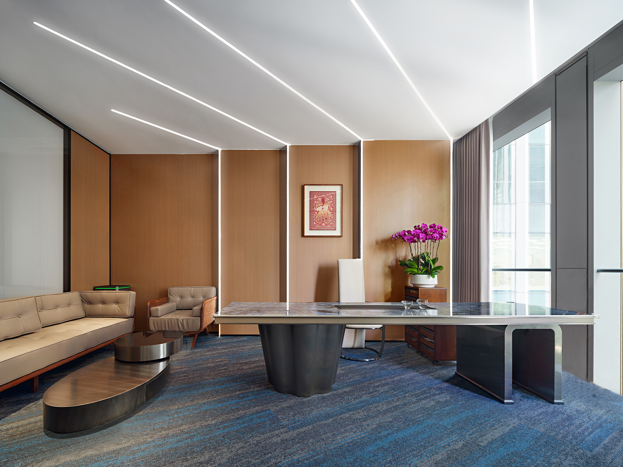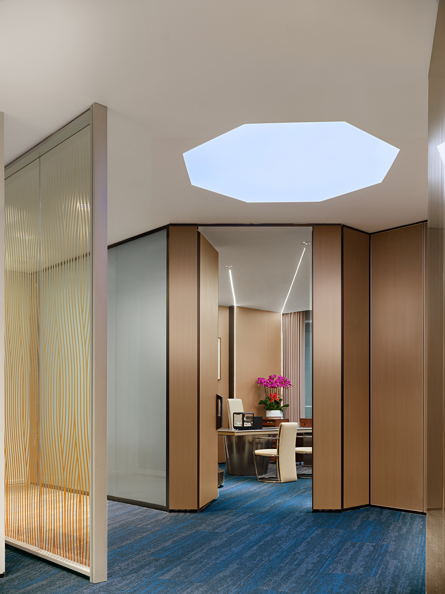 橘色(希望):通过软装(座椅、艺术装置)局部点缀,象征创新活力与行业使命感"