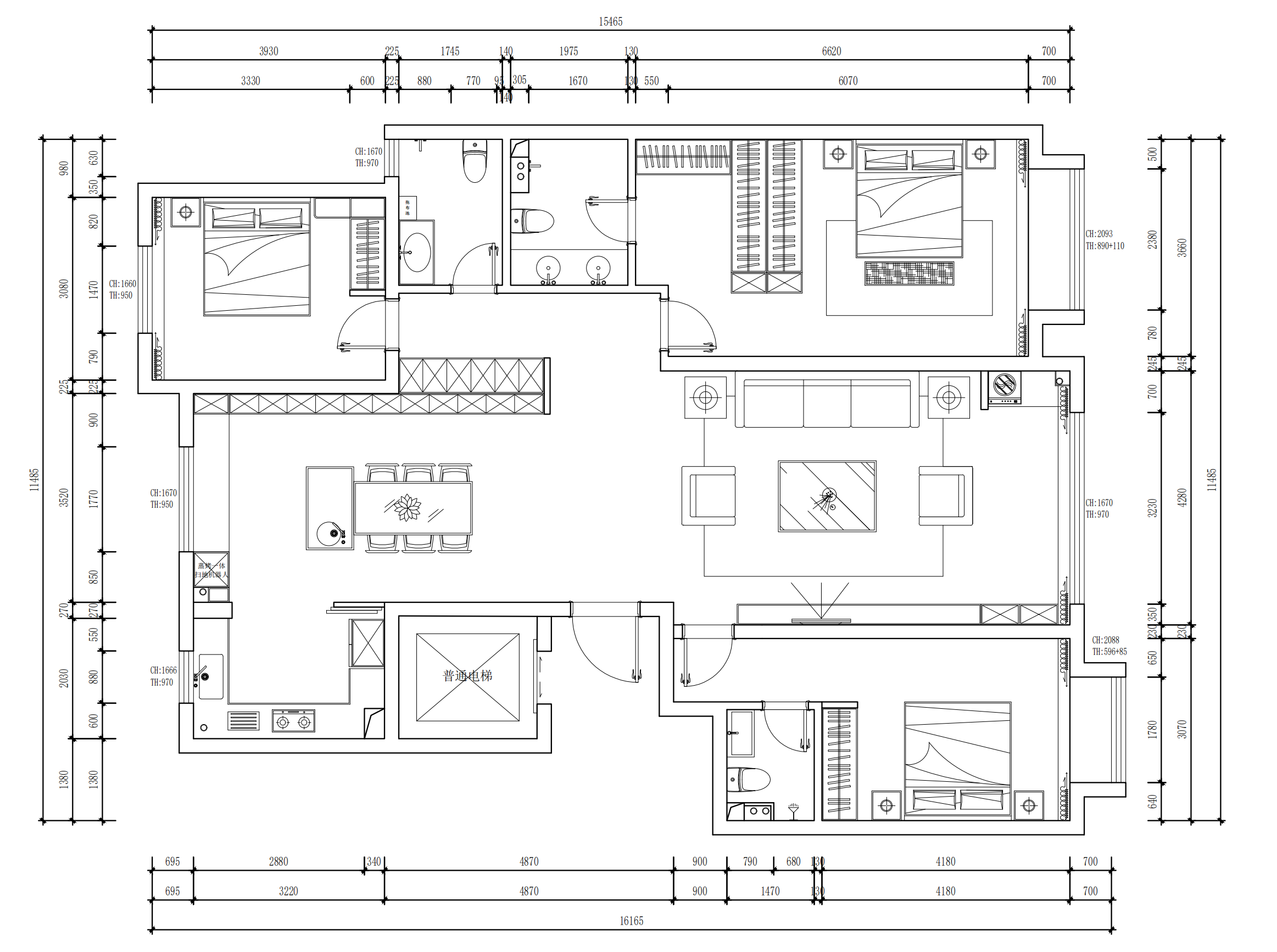 ◦ 采用大开间横厅布局,弱化空间分割,让客厅视野更开阔;