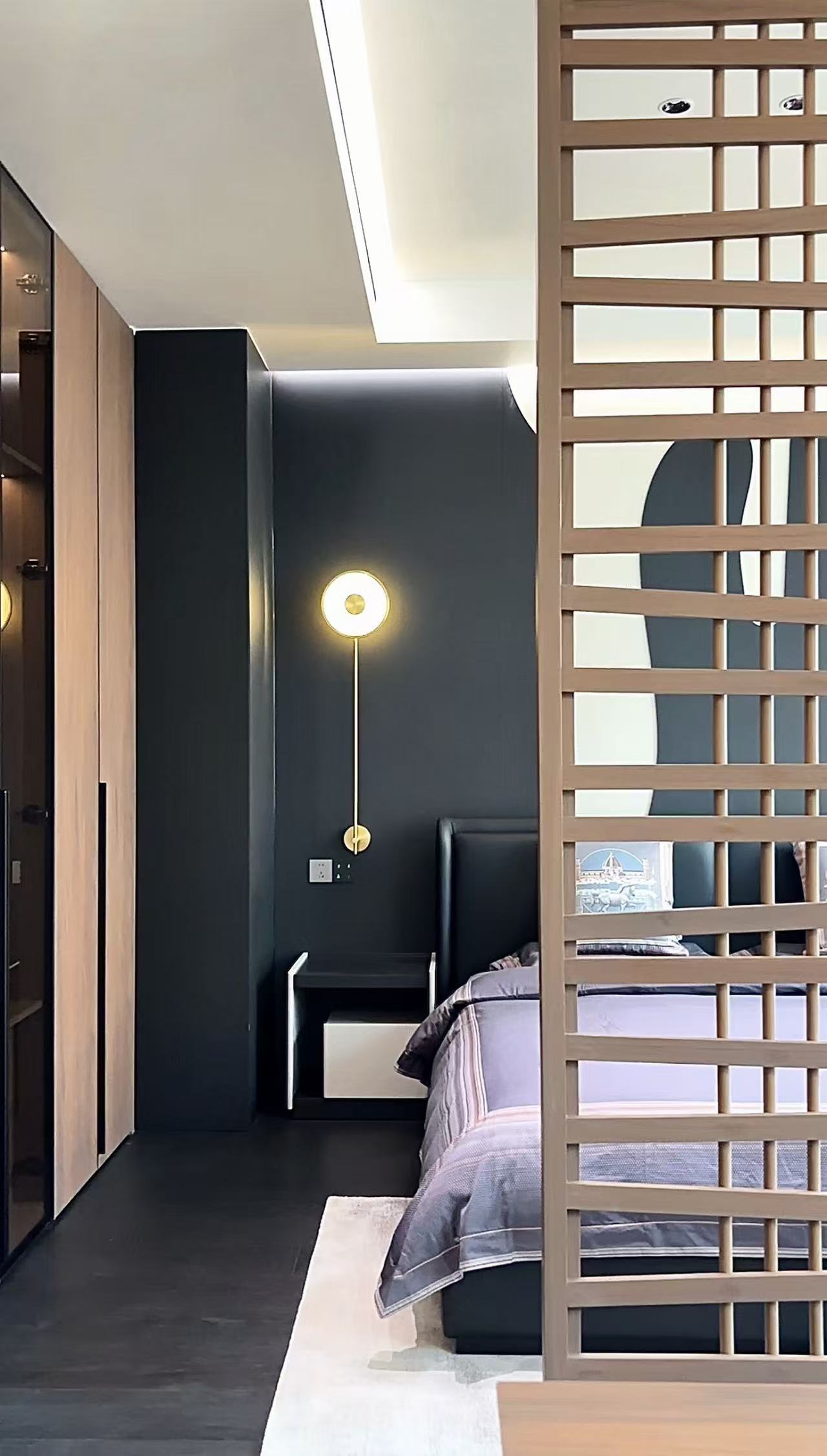 空间布局:打掉了影响美观、与风水有冲突、布置不合理、入户就能看见的卫生间。优化了过于狭长的卧室过道,扩大主卫空间,打掉了厨房与餐厅的隔墙,改用生态玻璃柜隔断,优化了儿子房与女儿房之间的卫生间。