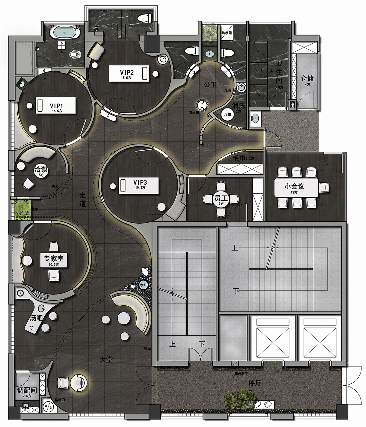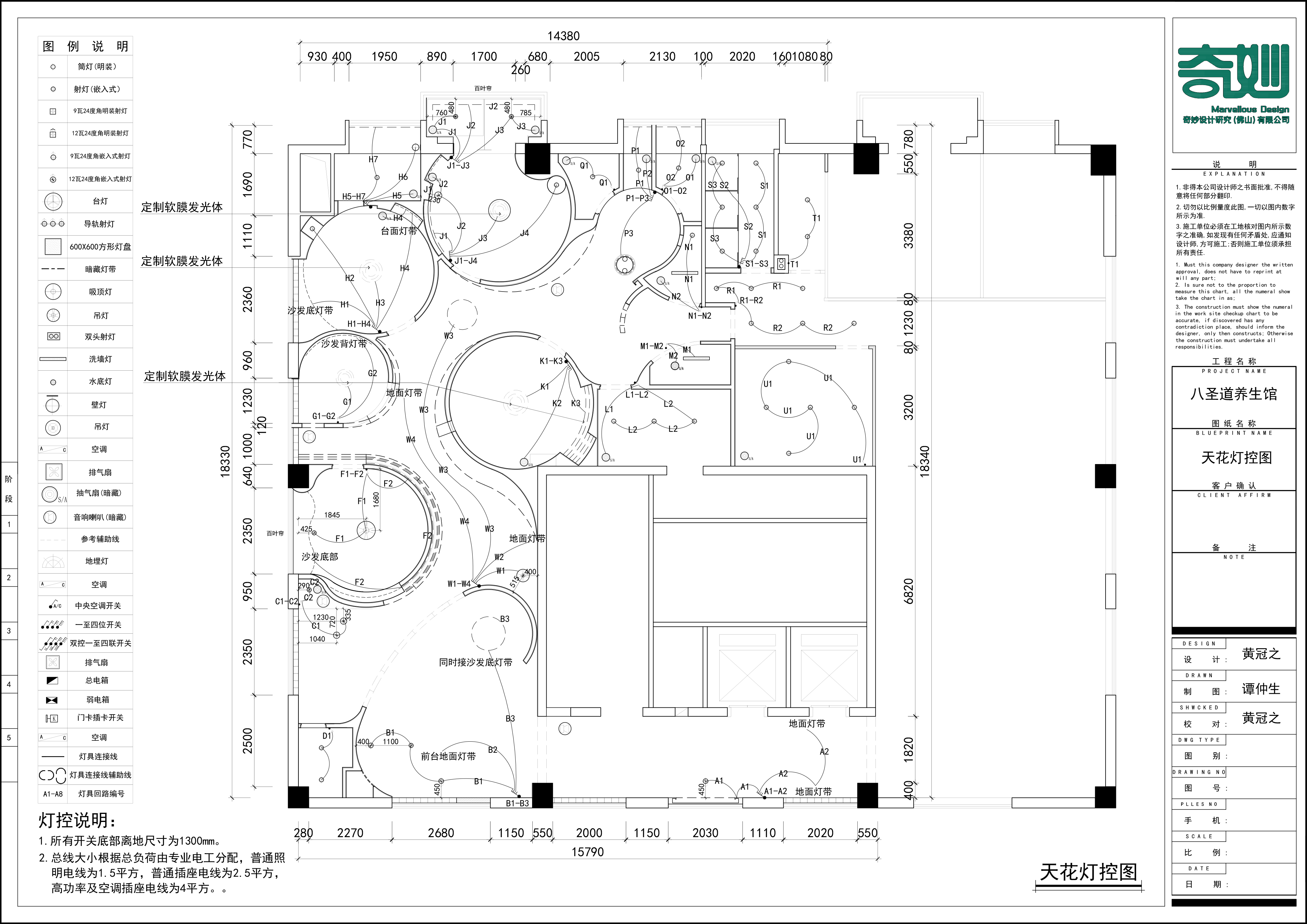 照明设计说明:上医养生,归心藏气,易医同源,道法自然。