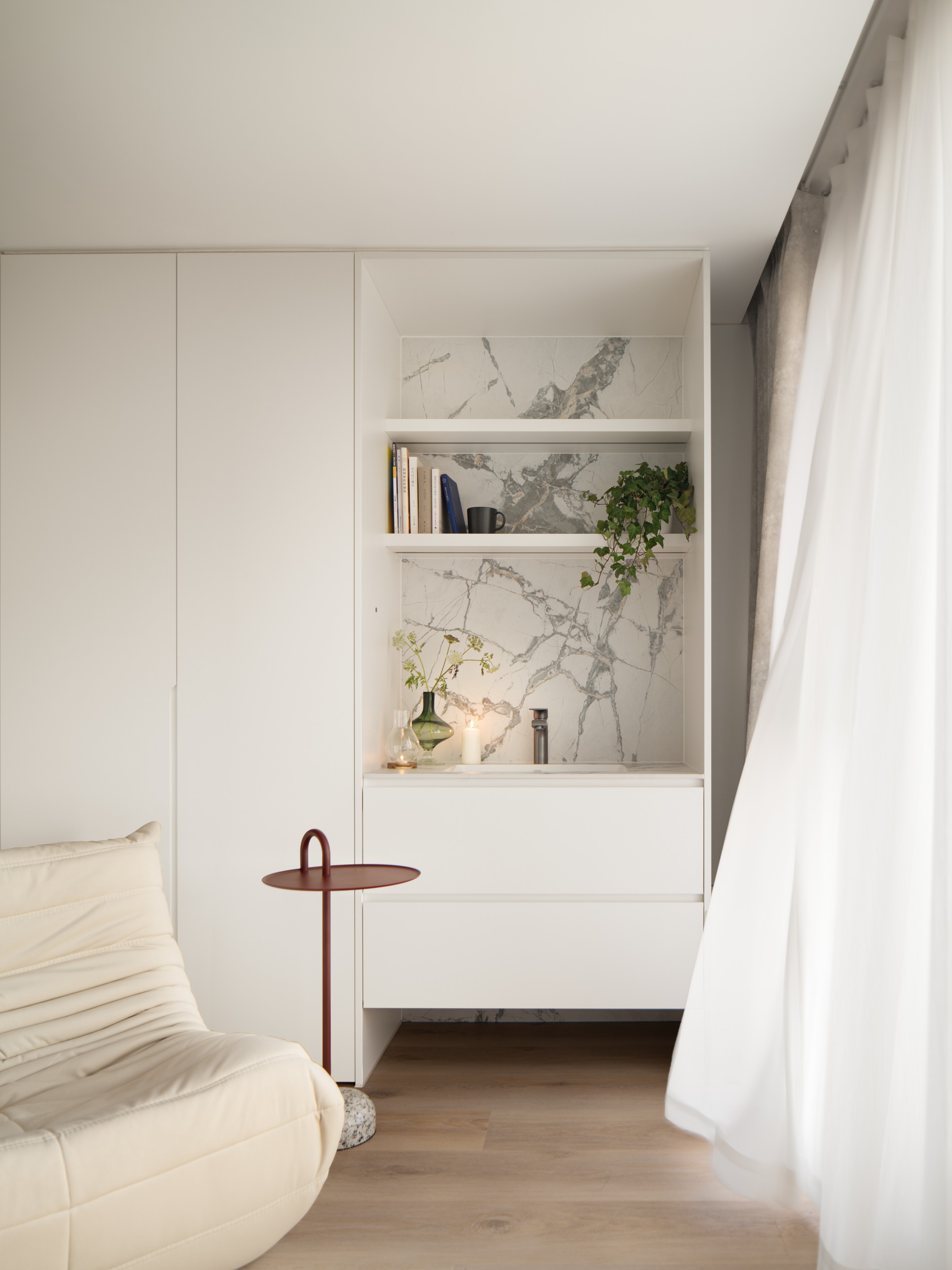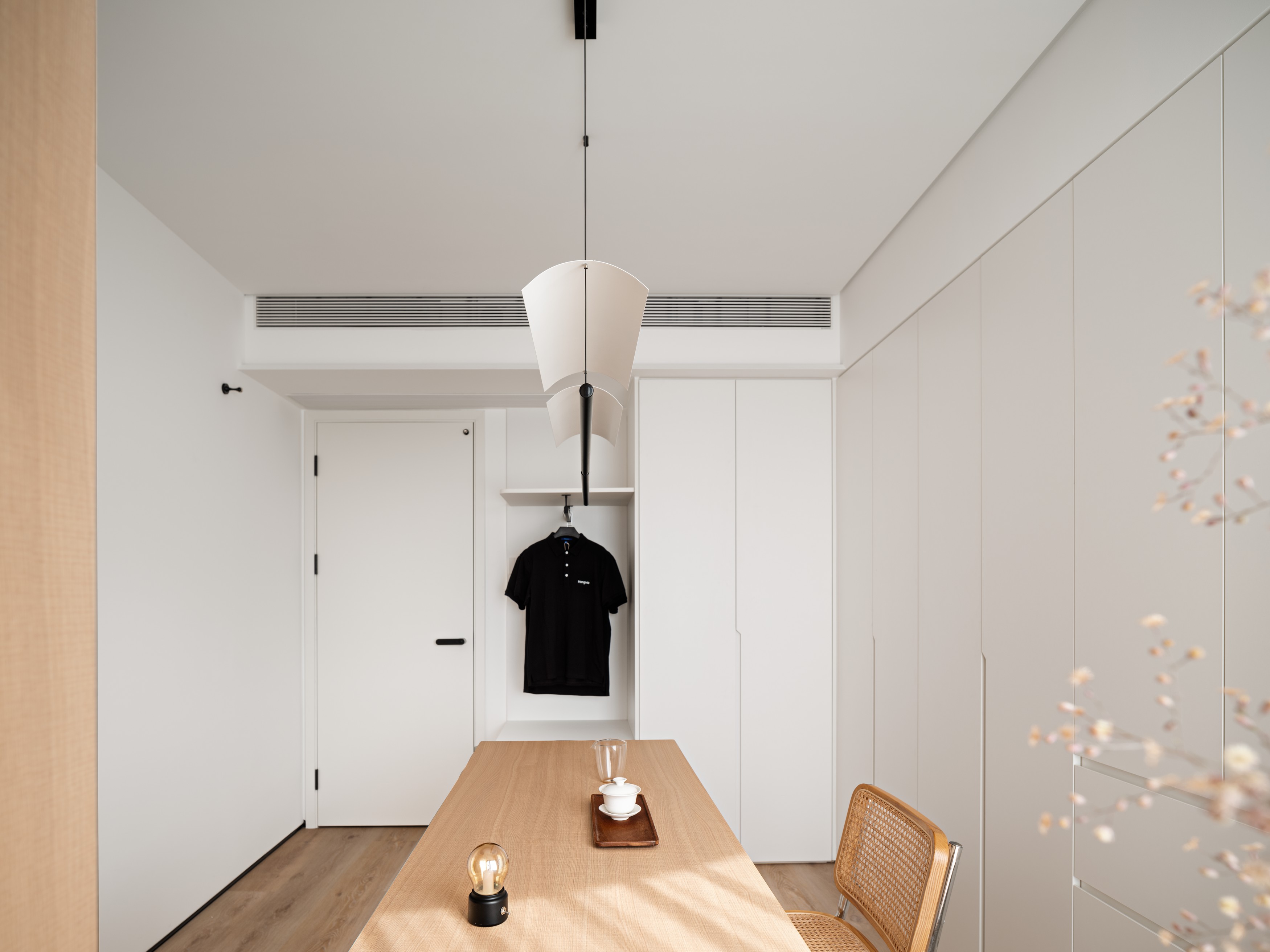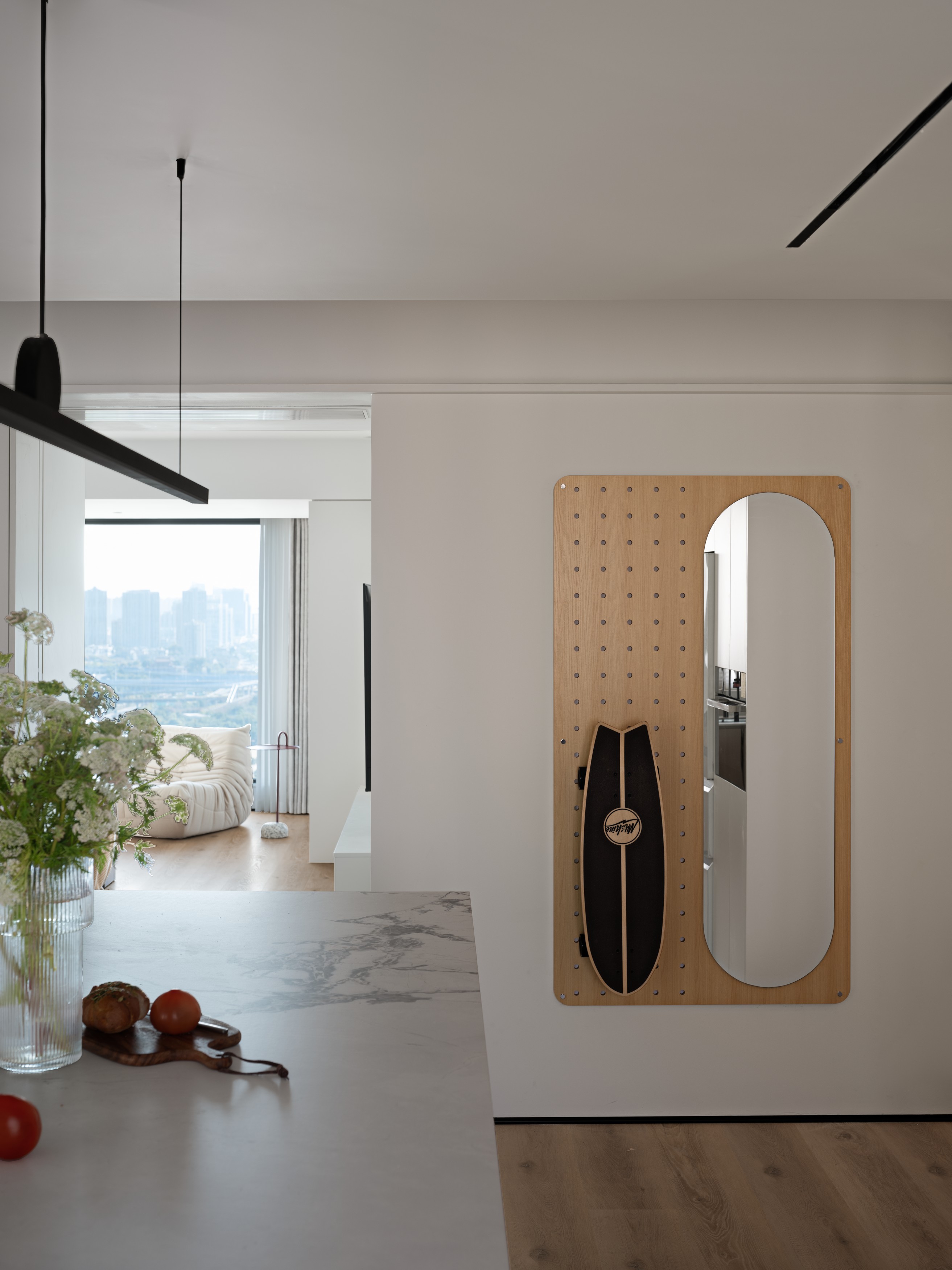 3. 收纳系统用模块化定制板材,洞洞板、悬浮柜等均为标准化配件,定制灵活且性价比高,避免过度设计造成的材料浪费,符合低碳理念;