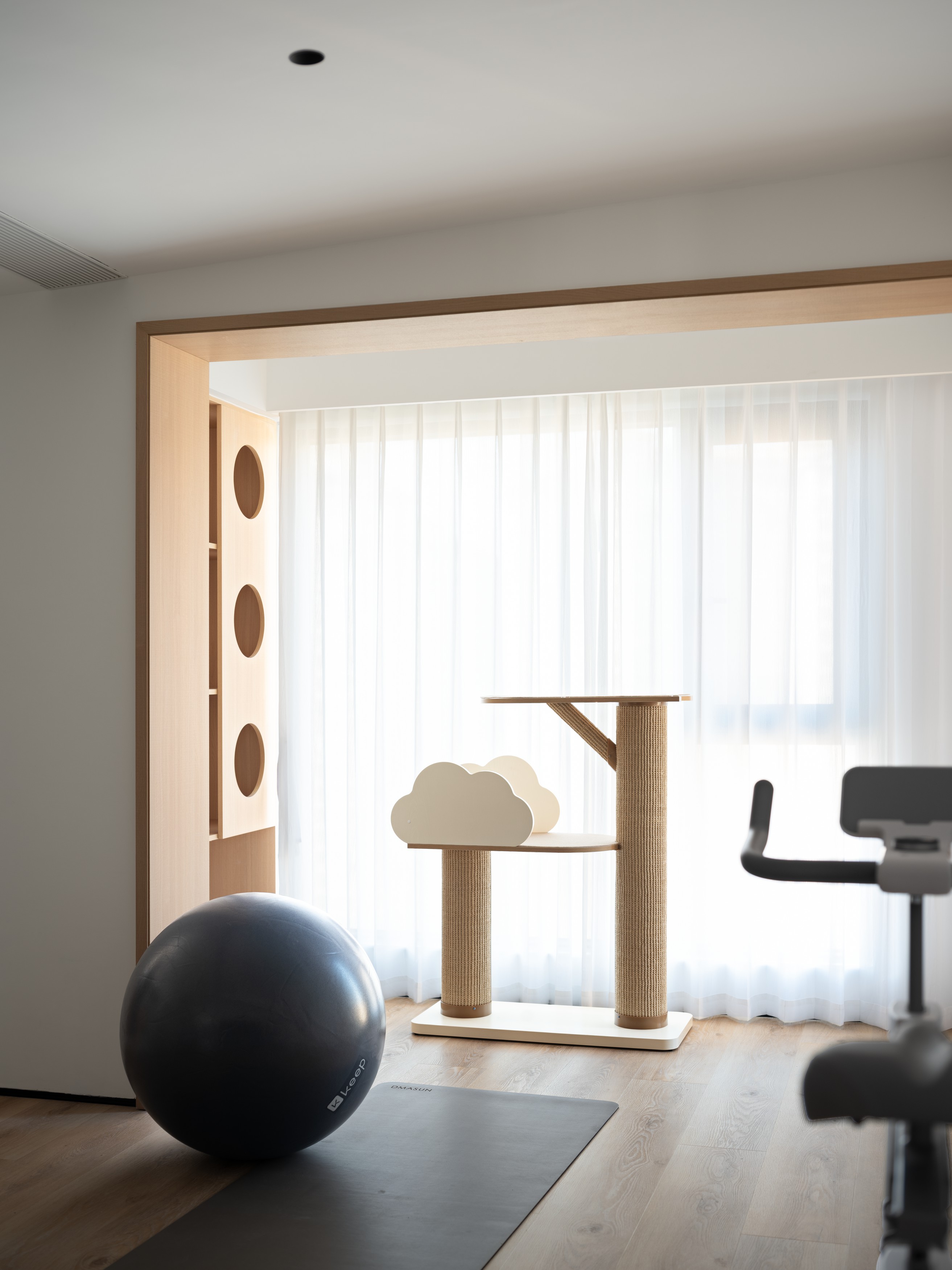 3. 宠物场景无缝融入公区,靠窗区域规划橘猫活动区,与LDK一体空间衔接,打破宠物区与生活区割裂感,增添灵动氛围;