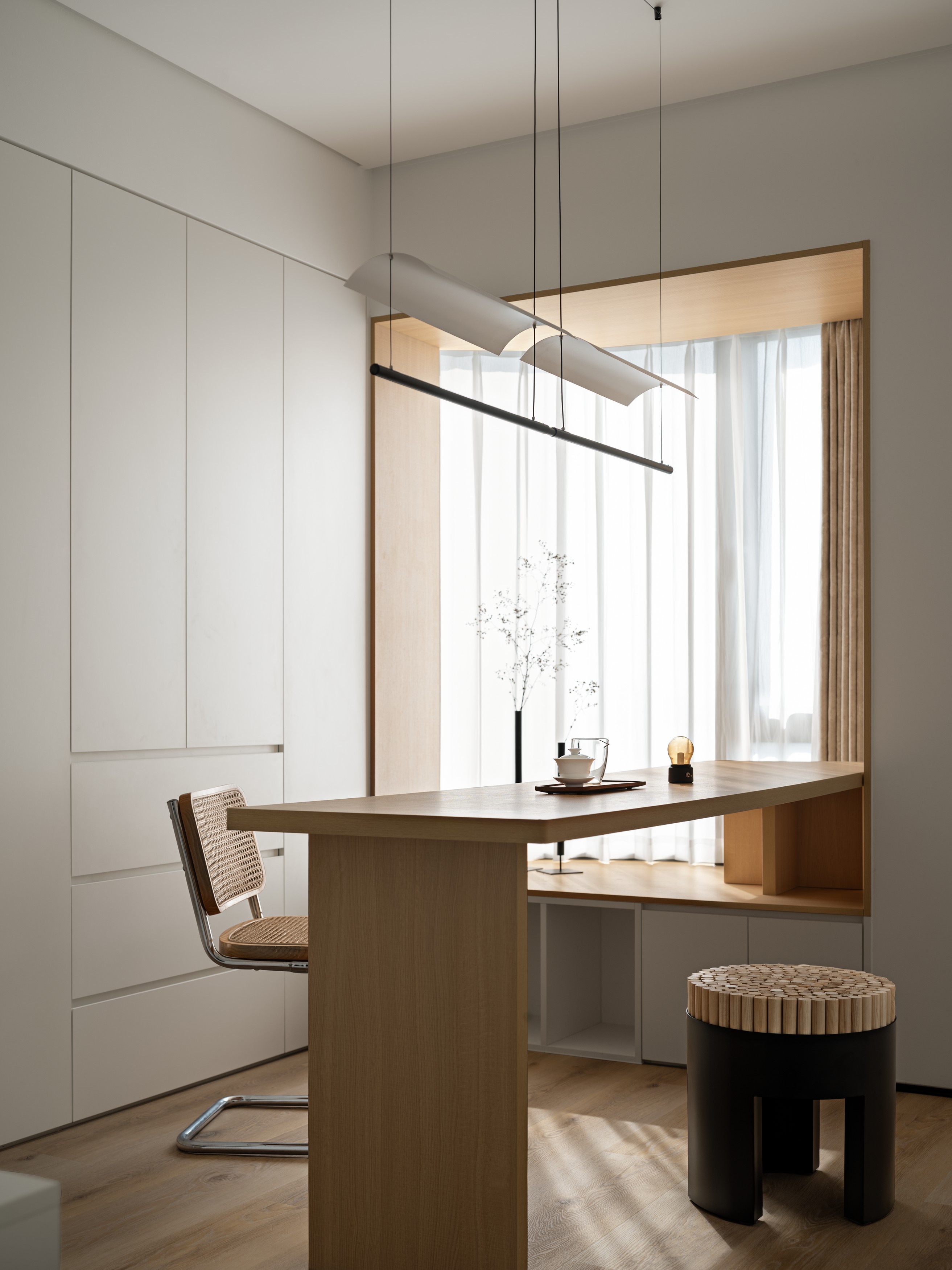 4. 功能区无生硬风格断层,电竞房、茶室、书房均延续原木基调,实现风格统一且各有功能专属氛围感。 -