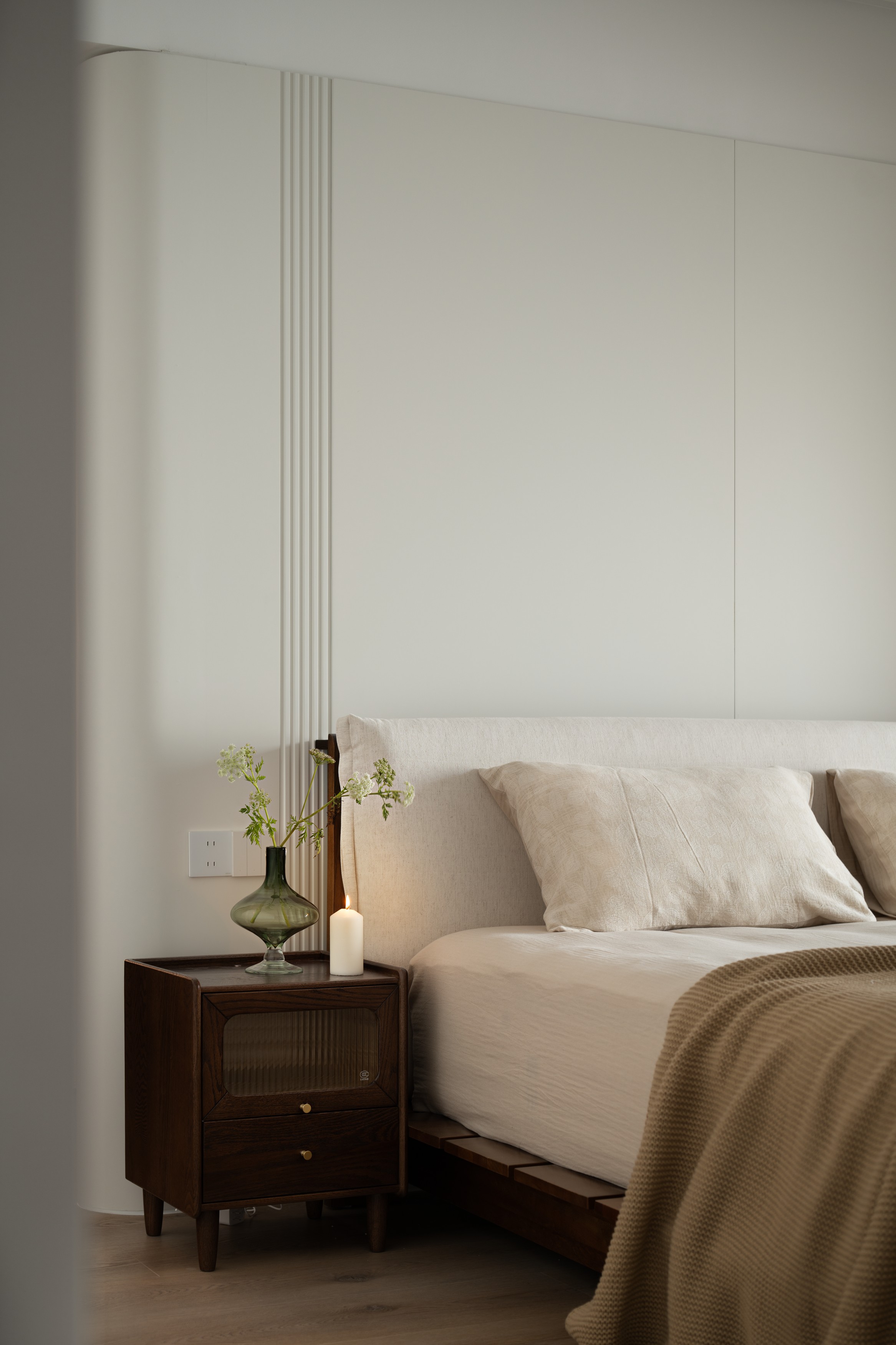 空间意境:1. 原木柔和风贯穿全屋,搭配无主灯+悬浮顶极简设计,弱化硬装厚重感,兼顾温馨感与轻盈感,贴合年轻情侣审美;