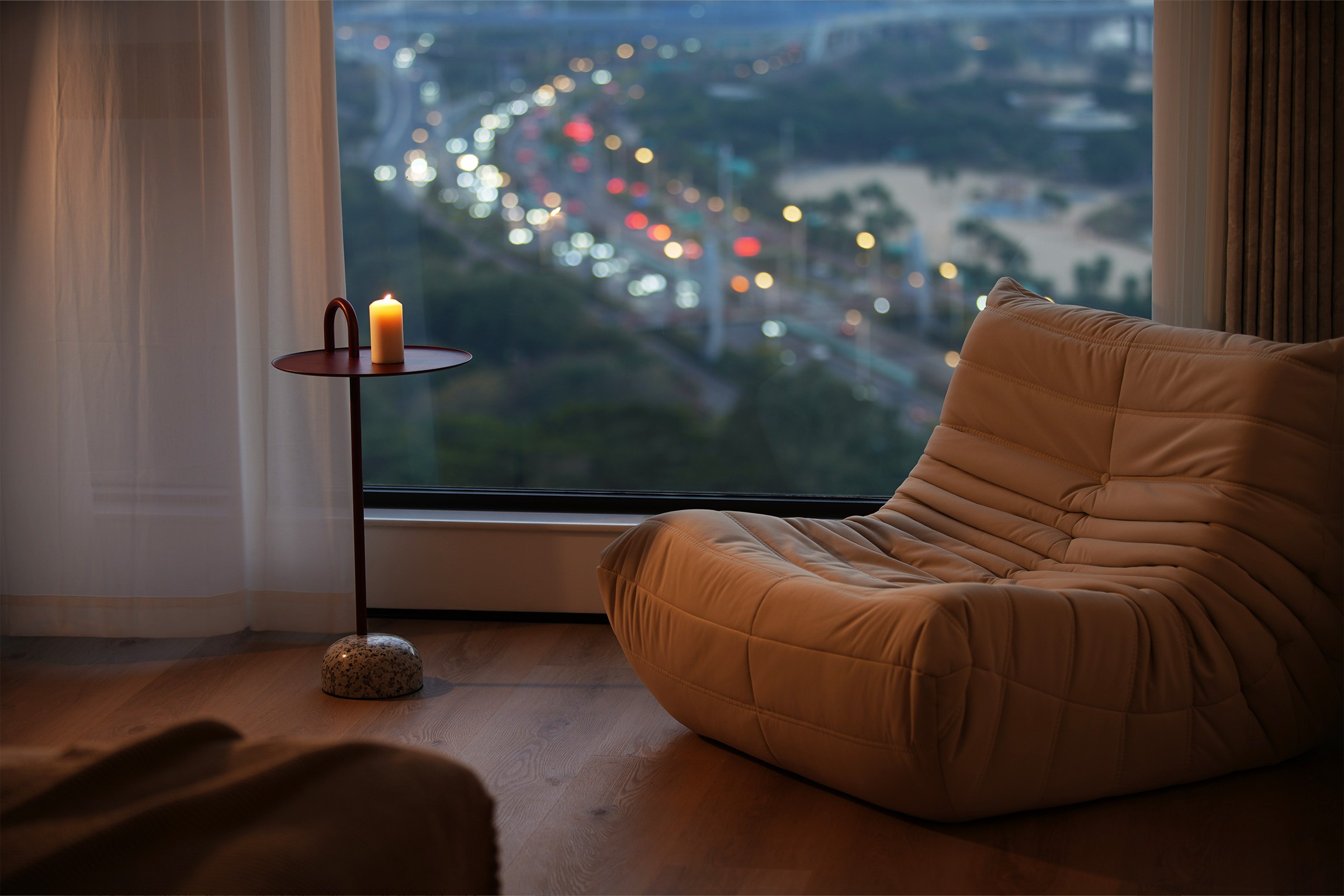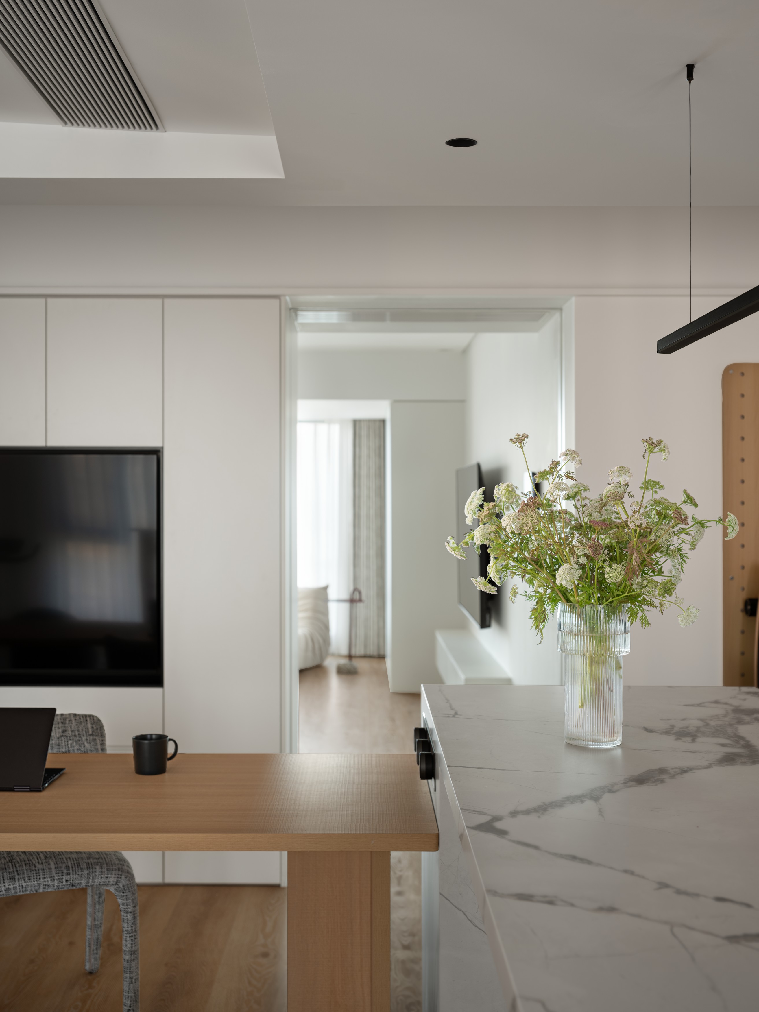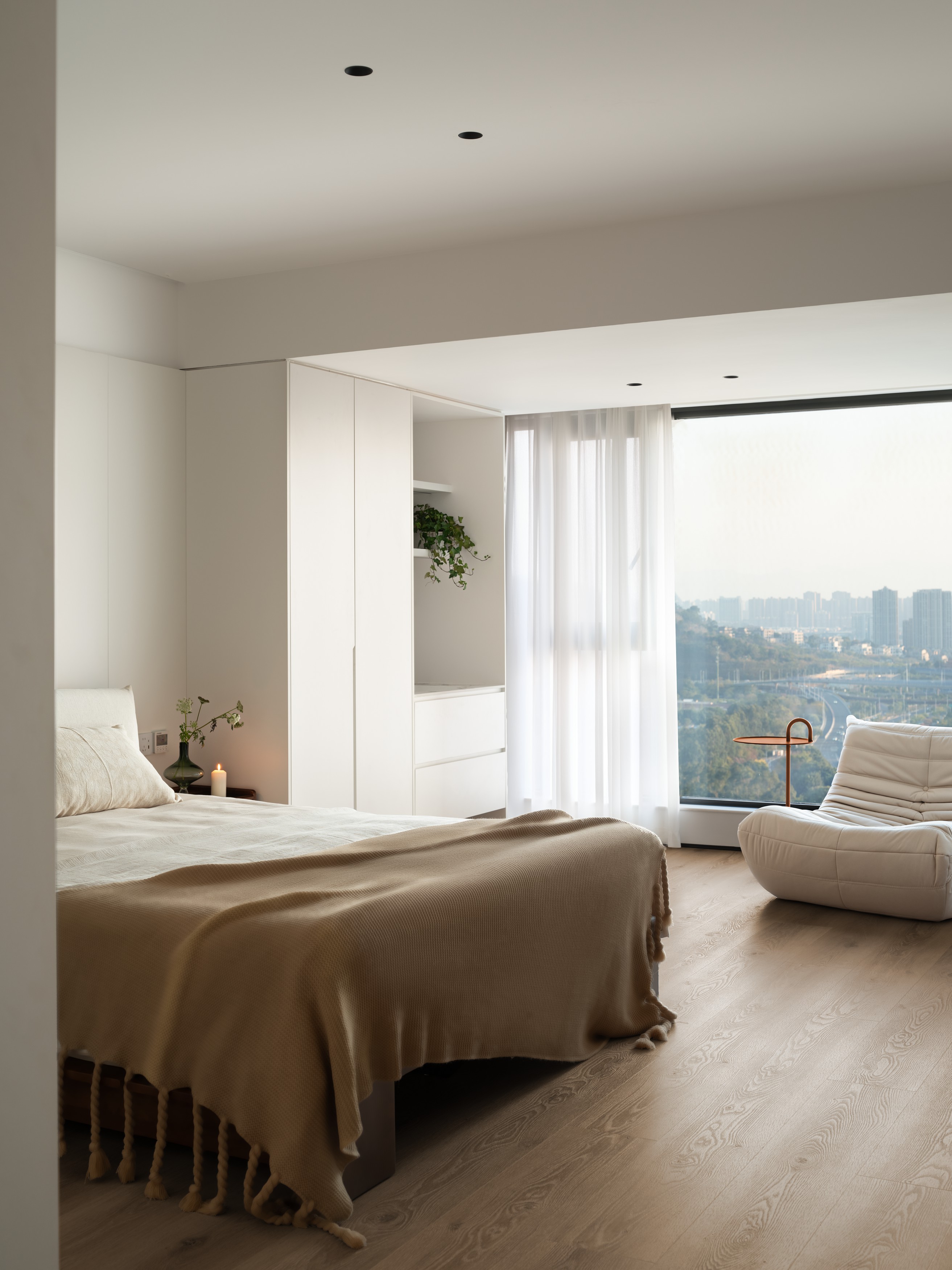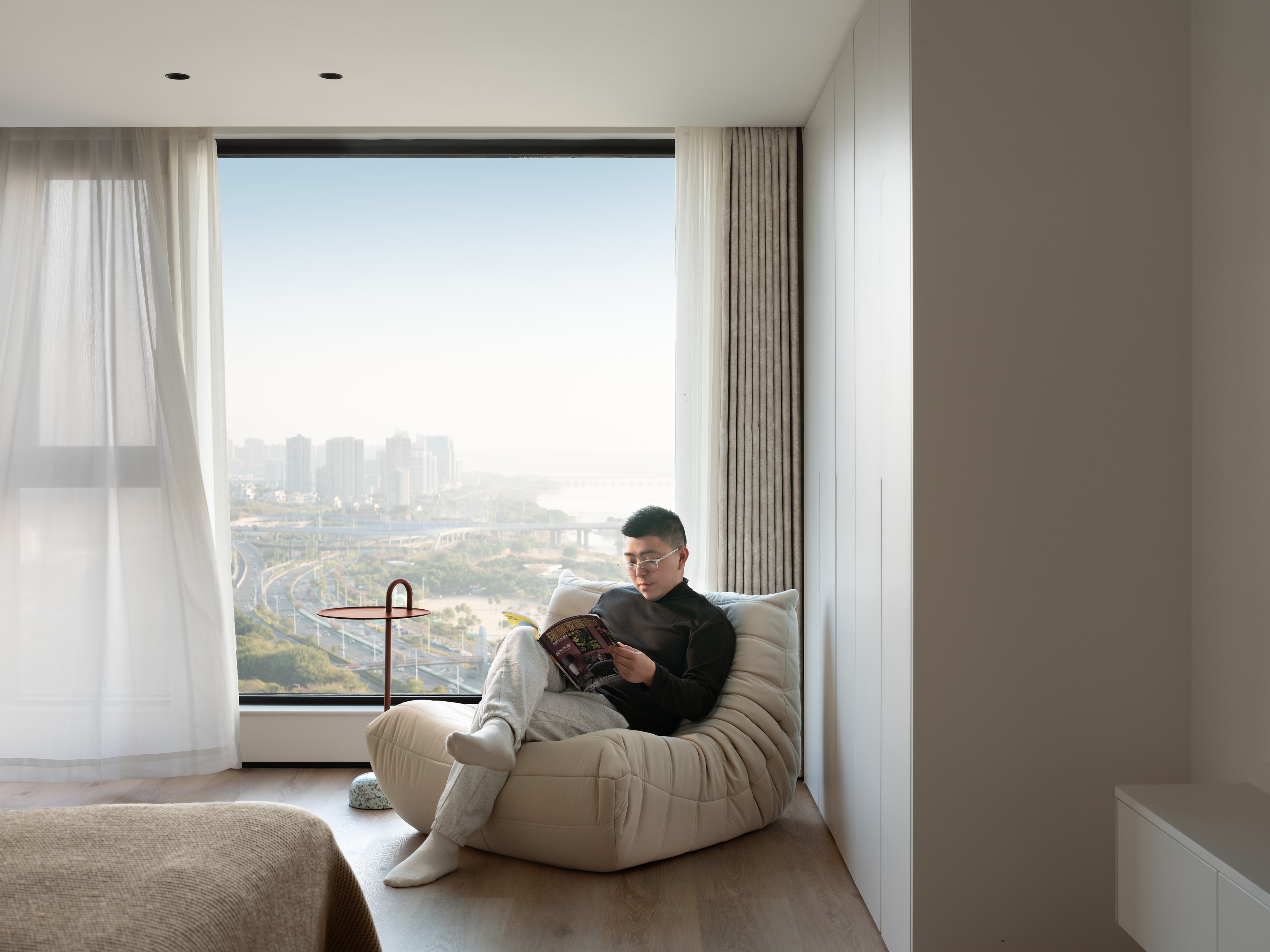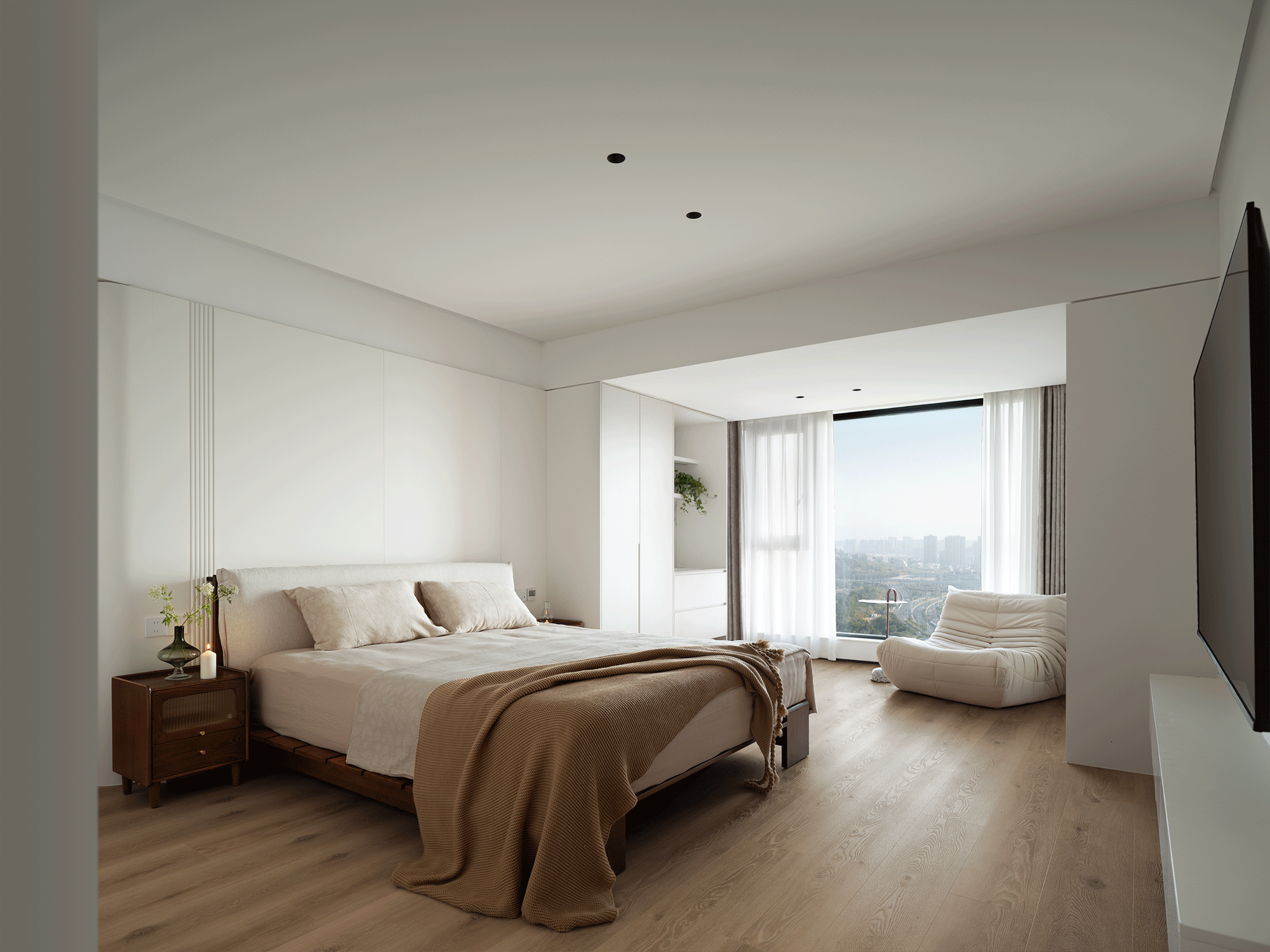 2. 江景资源最大化利用,主卧、电竞房借原木窗框引景入室,让自然景观成为空间软装,提升场景质感;