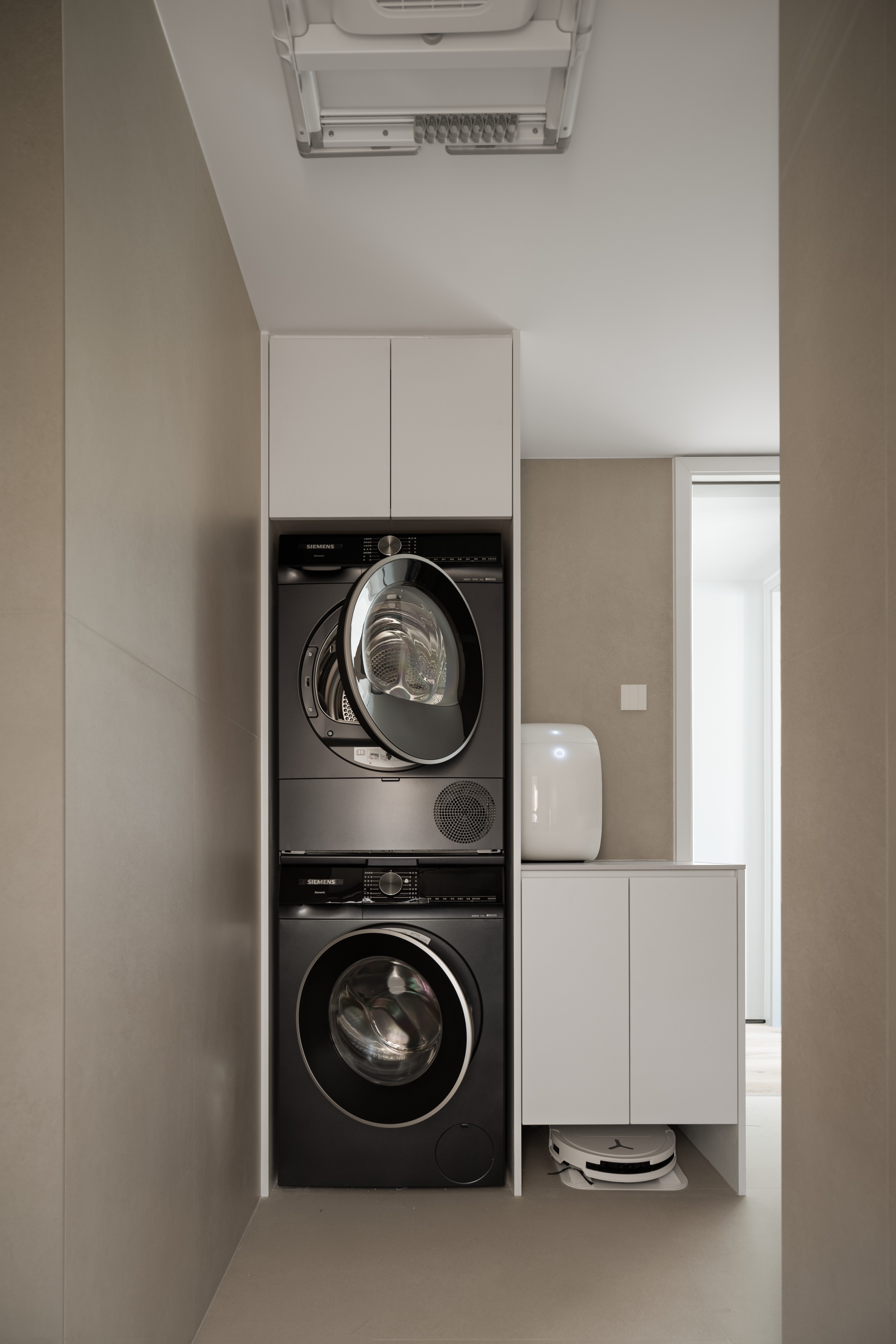 2. 低维护需求落地,新风+中央空调减少开窗降尘,洗衣房扫拖机器人自动上下水,搭配耐脏材质,大幅降低人工打扫频次,适配年轻人懒人居家需求;