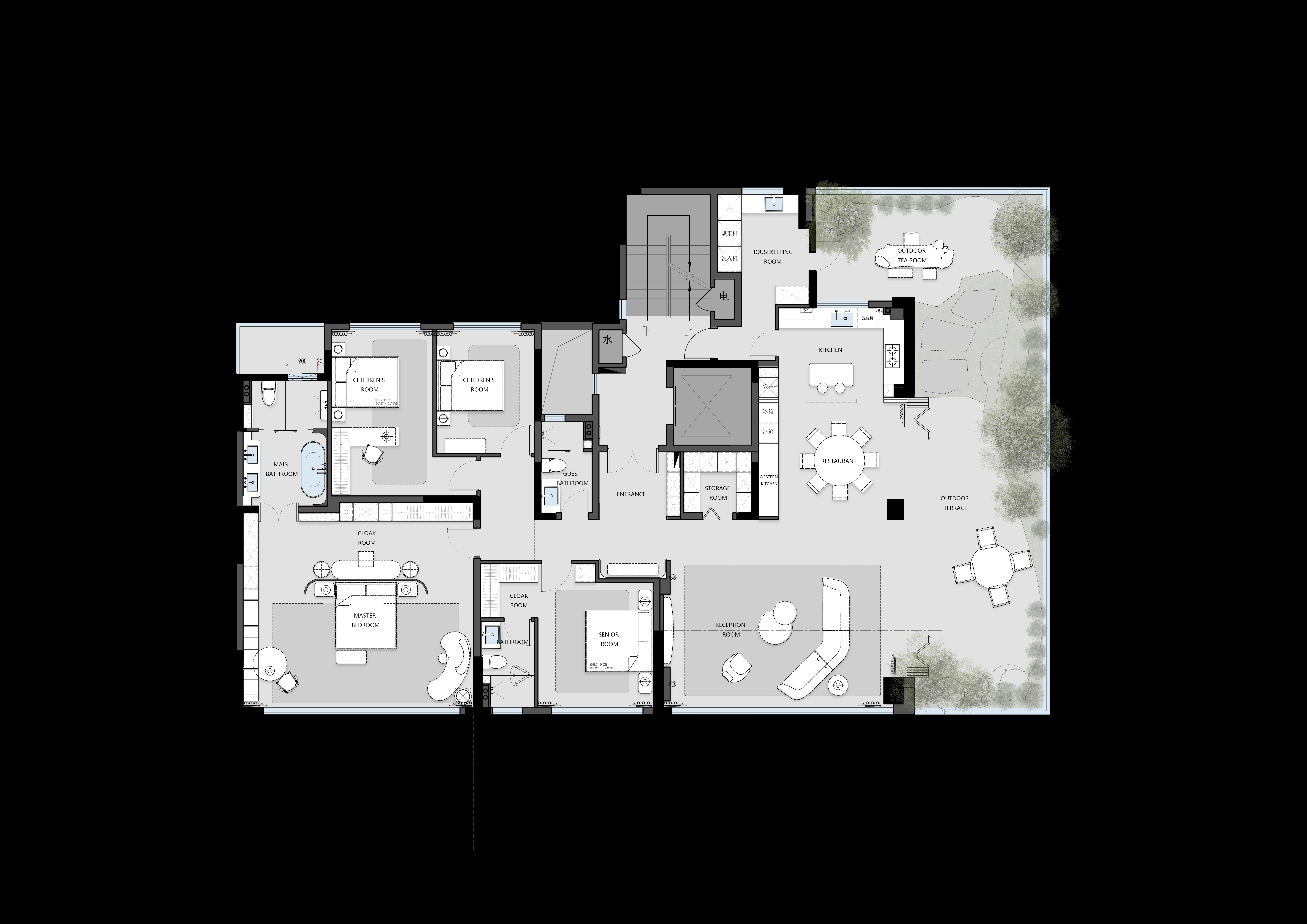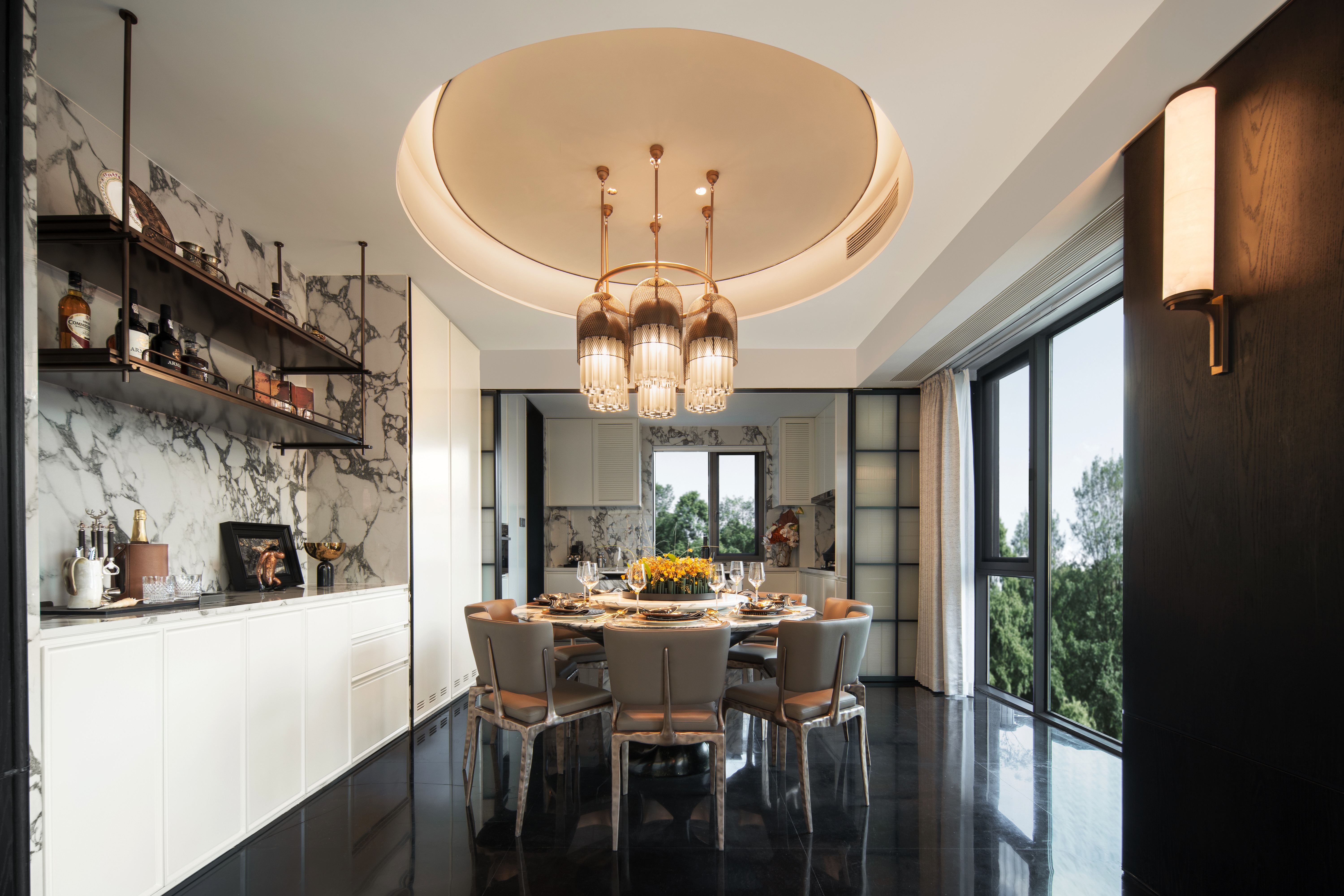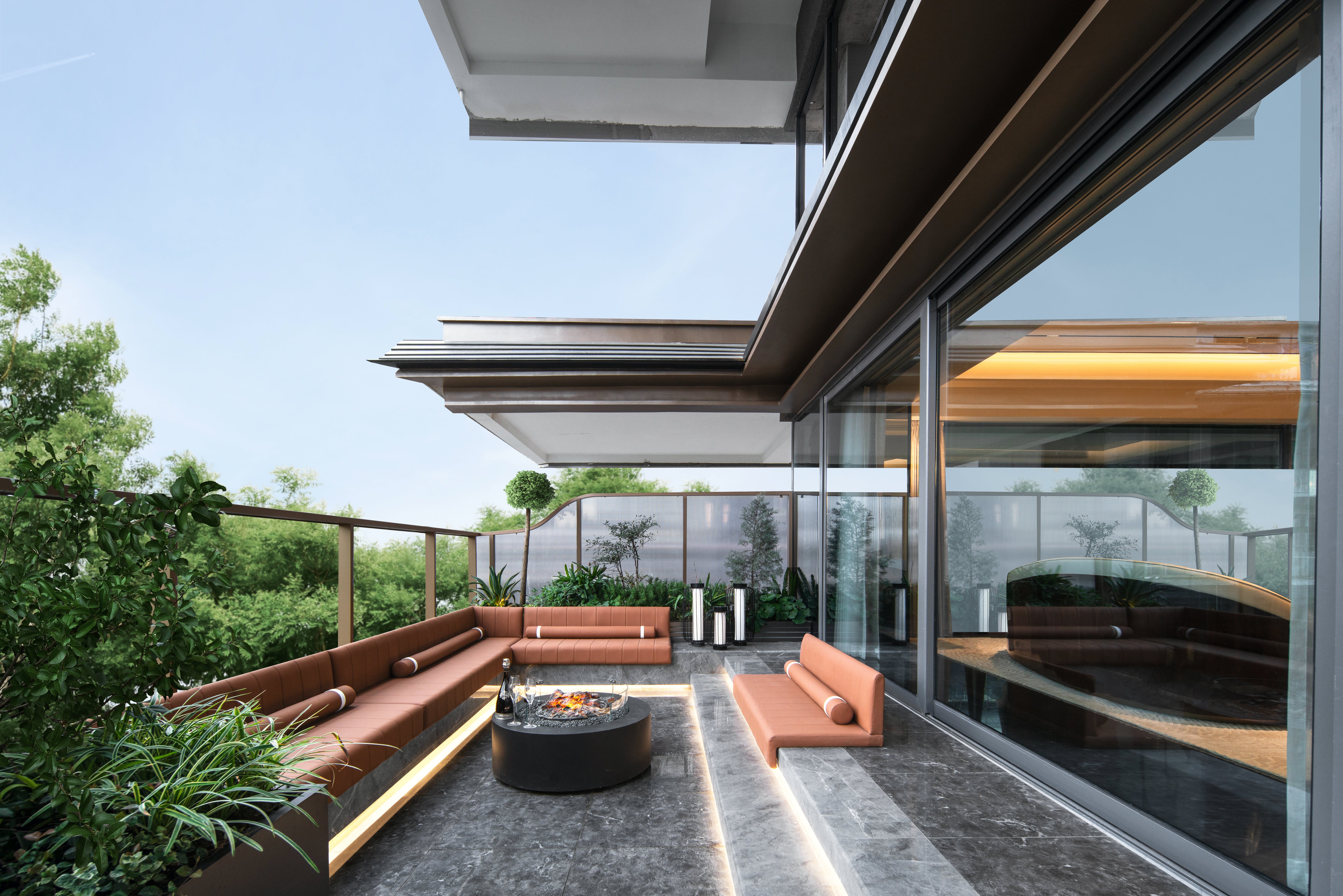 空间意境:襄阳当地创新型风格,根据市场设定人物需求在露台设置品茶观星对弈等场景组合,打造空中园墅,且在室内设置对应的空间与之配合,会客,品茶餐饮都一一对应,打造平衡创新的空间场景。