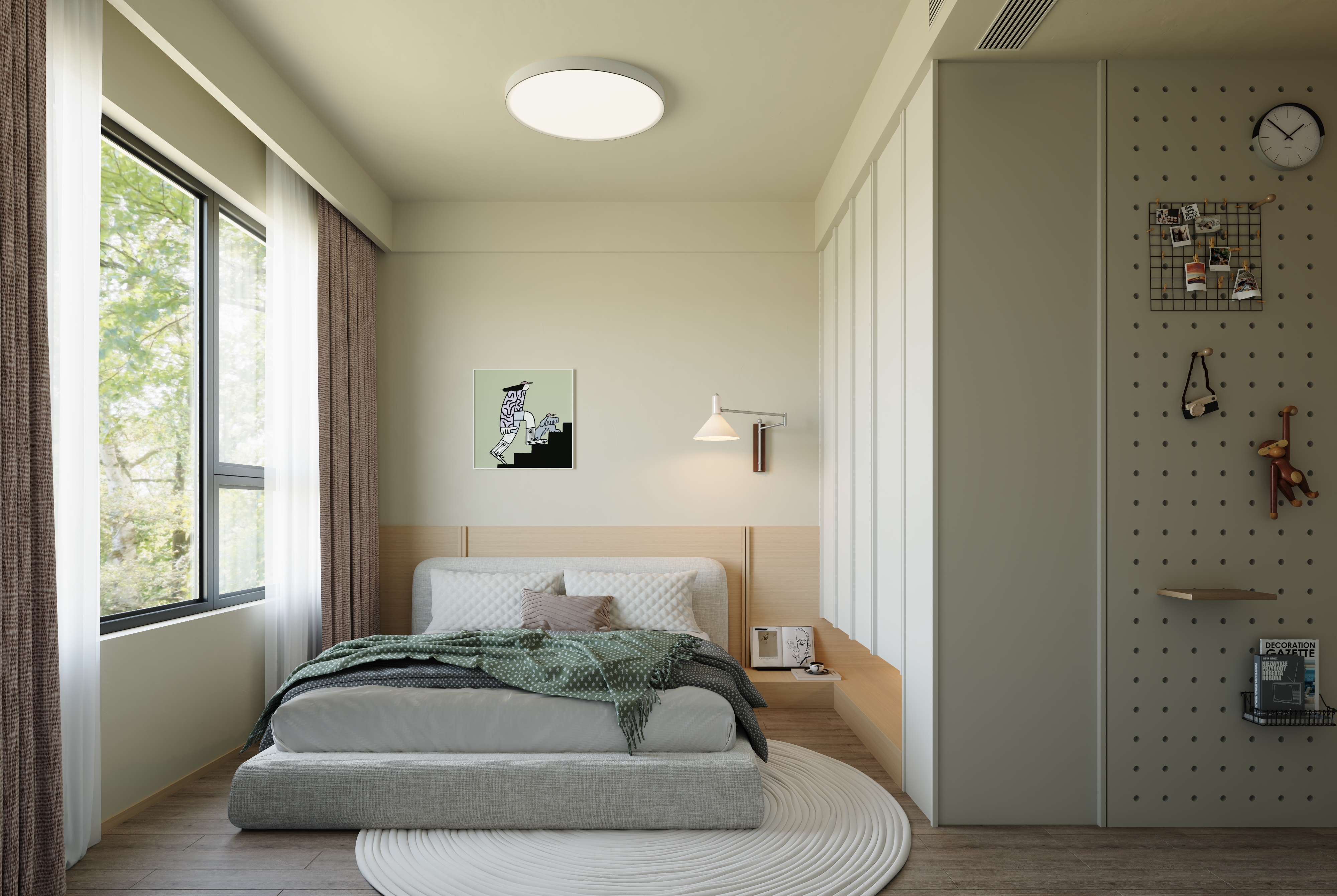 设计选材:放弃大量木质品,转而采用环保漆面,大大降低成本且满足老人小孩的空间环保使用需求