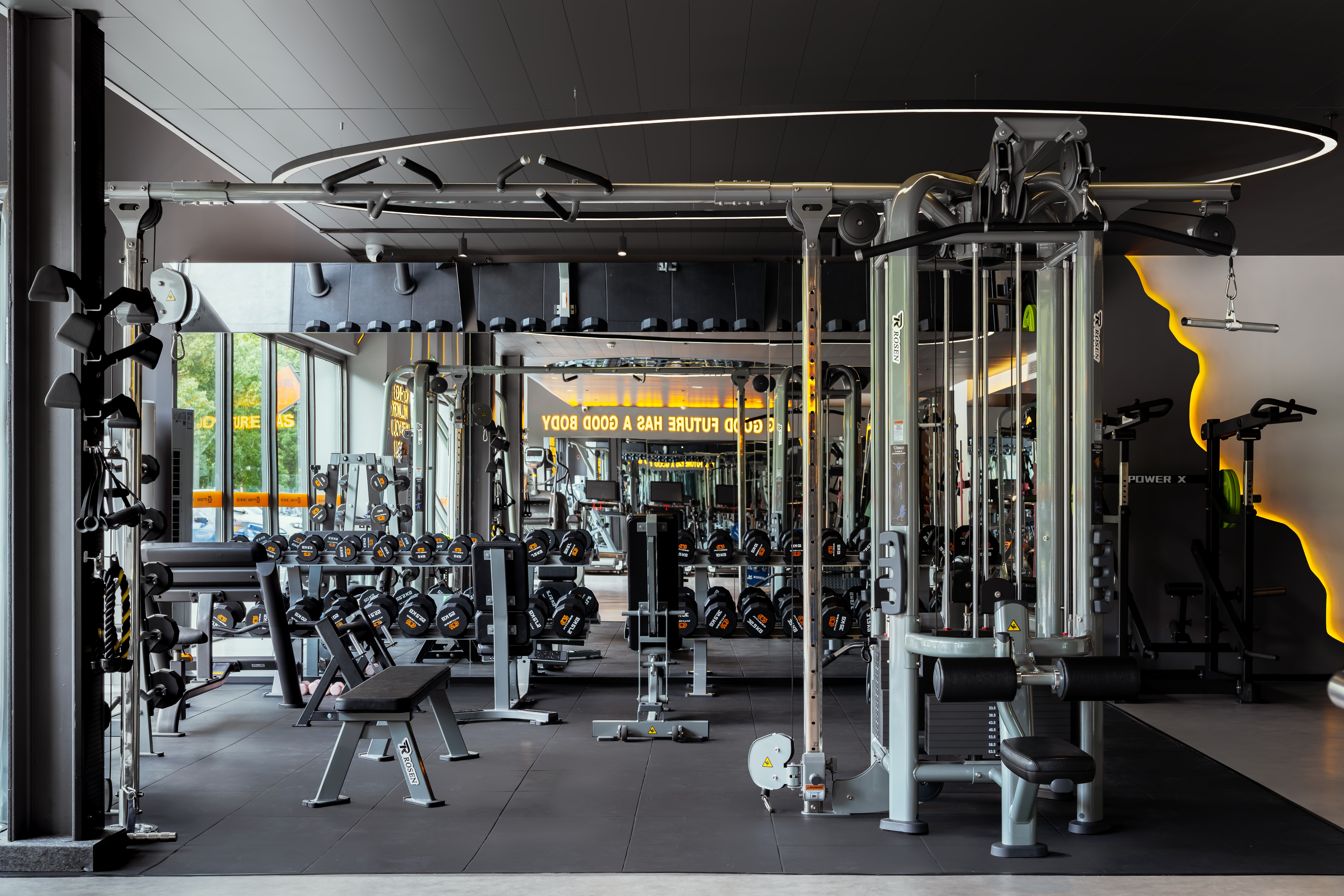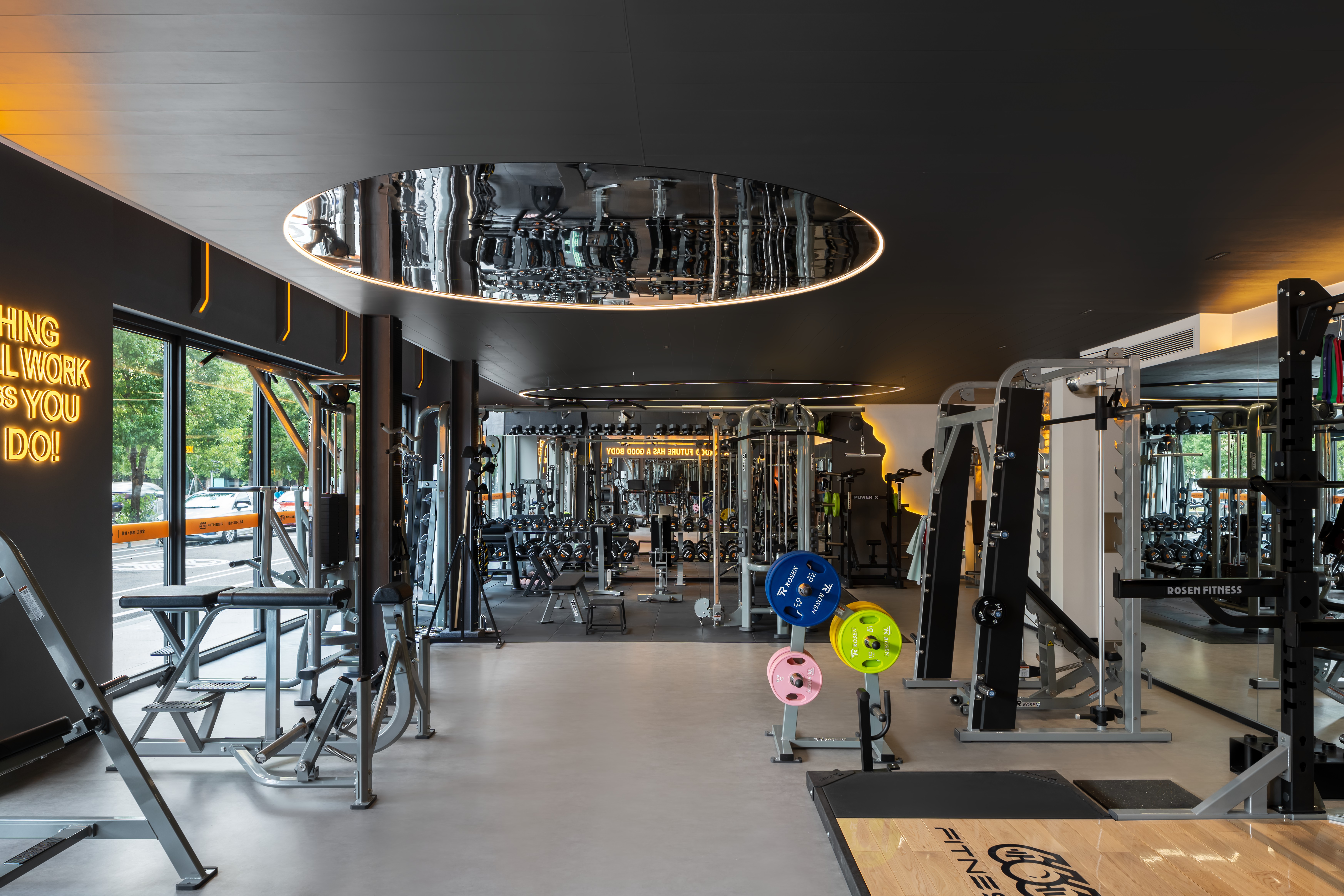1. 开阔挑空+墙镜延伸+室内外通透设计,彻底改善传统健身空间压抑感,运动时空间舒适度大幅提升