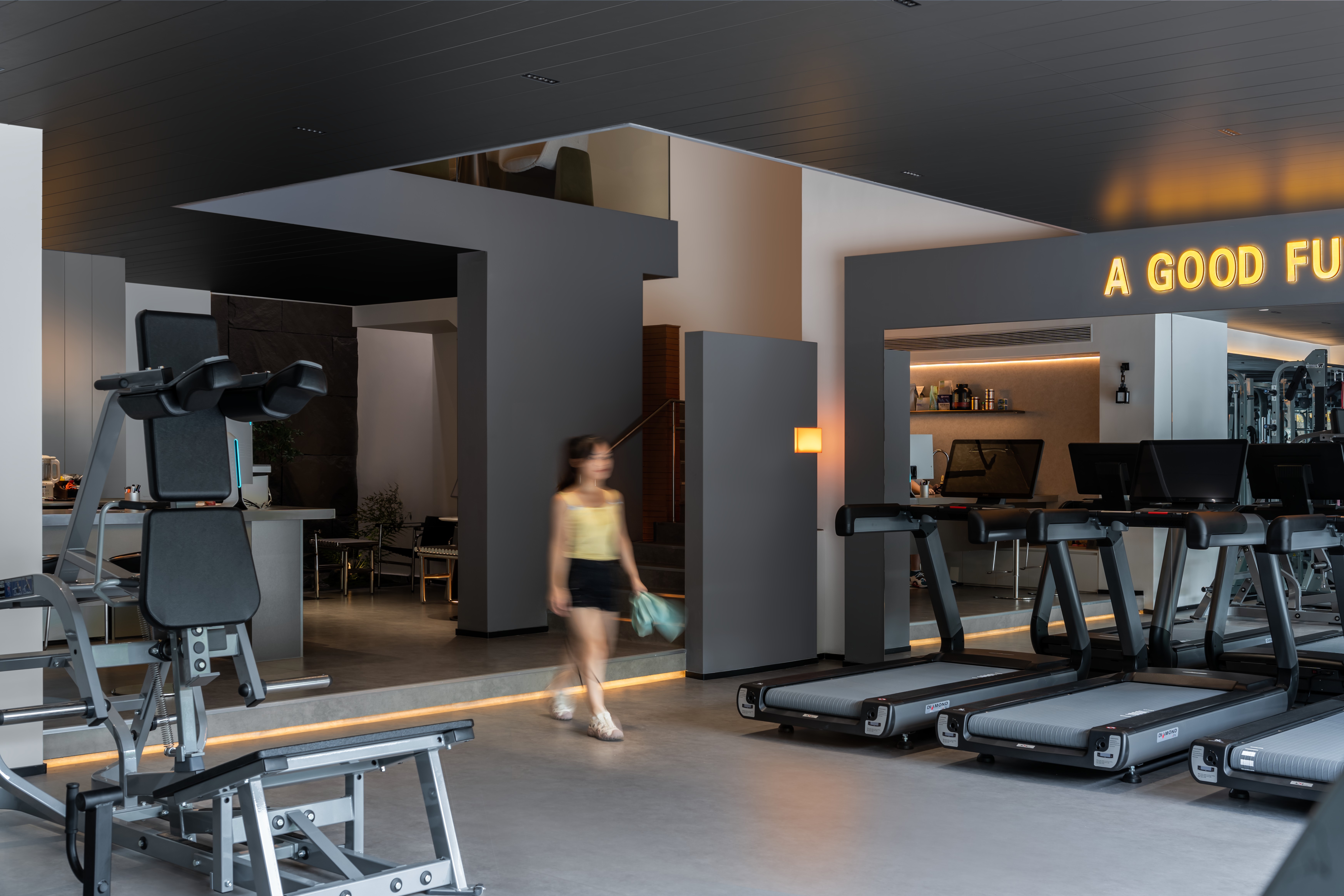 3. 上下层视觉联动、功能区动线流畅,提升用户运动体验流畅度,空间利用率与使用质感双提升