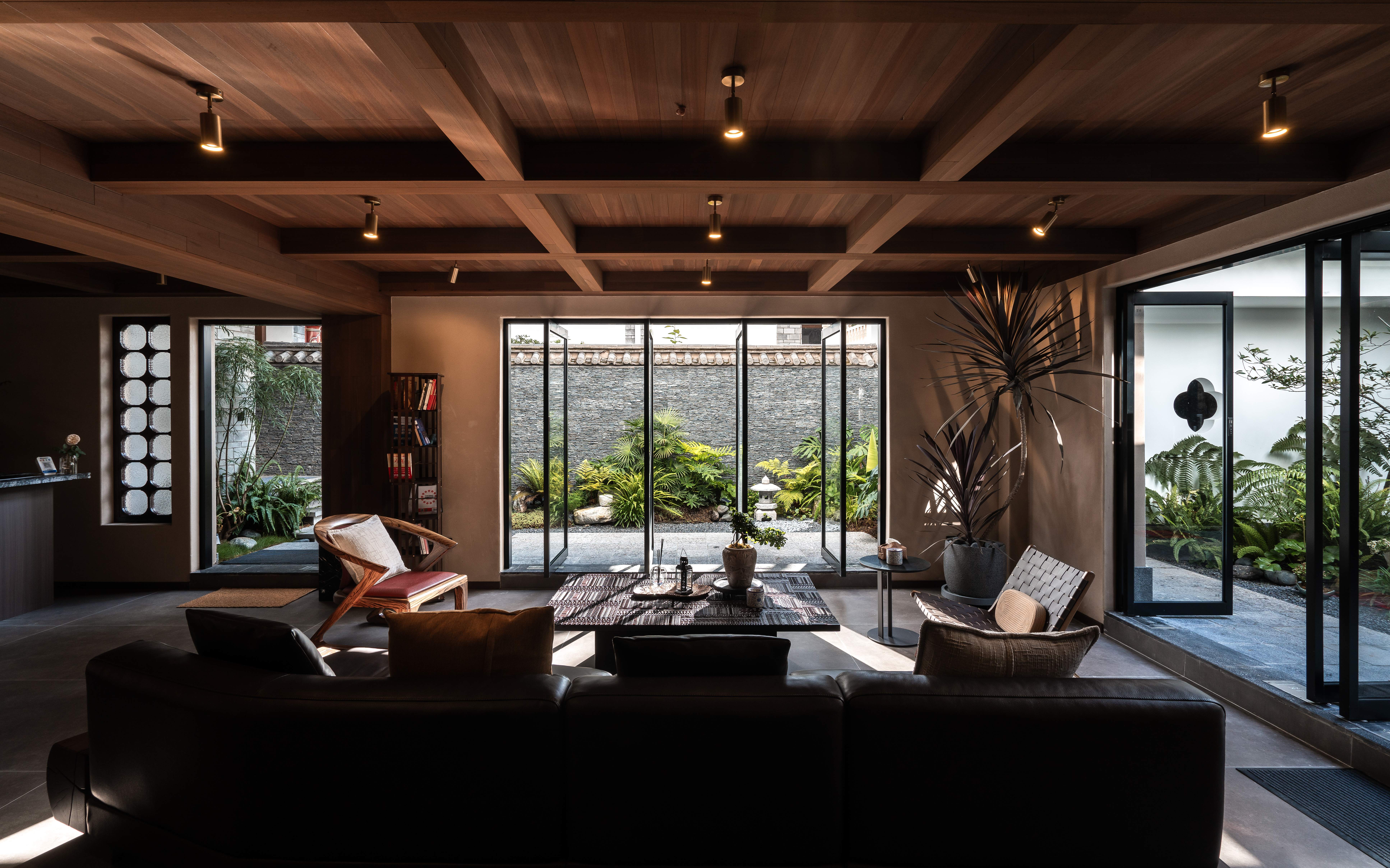 设计选材:夯土、青石板、原木等本土材料被广泛运用,与简洁的现代线条、柔和的灯光设计及舒适的当代家具相互融合,使空间呈现出复古与现代并存、东方意境与时尚审美兼具的独特气质。