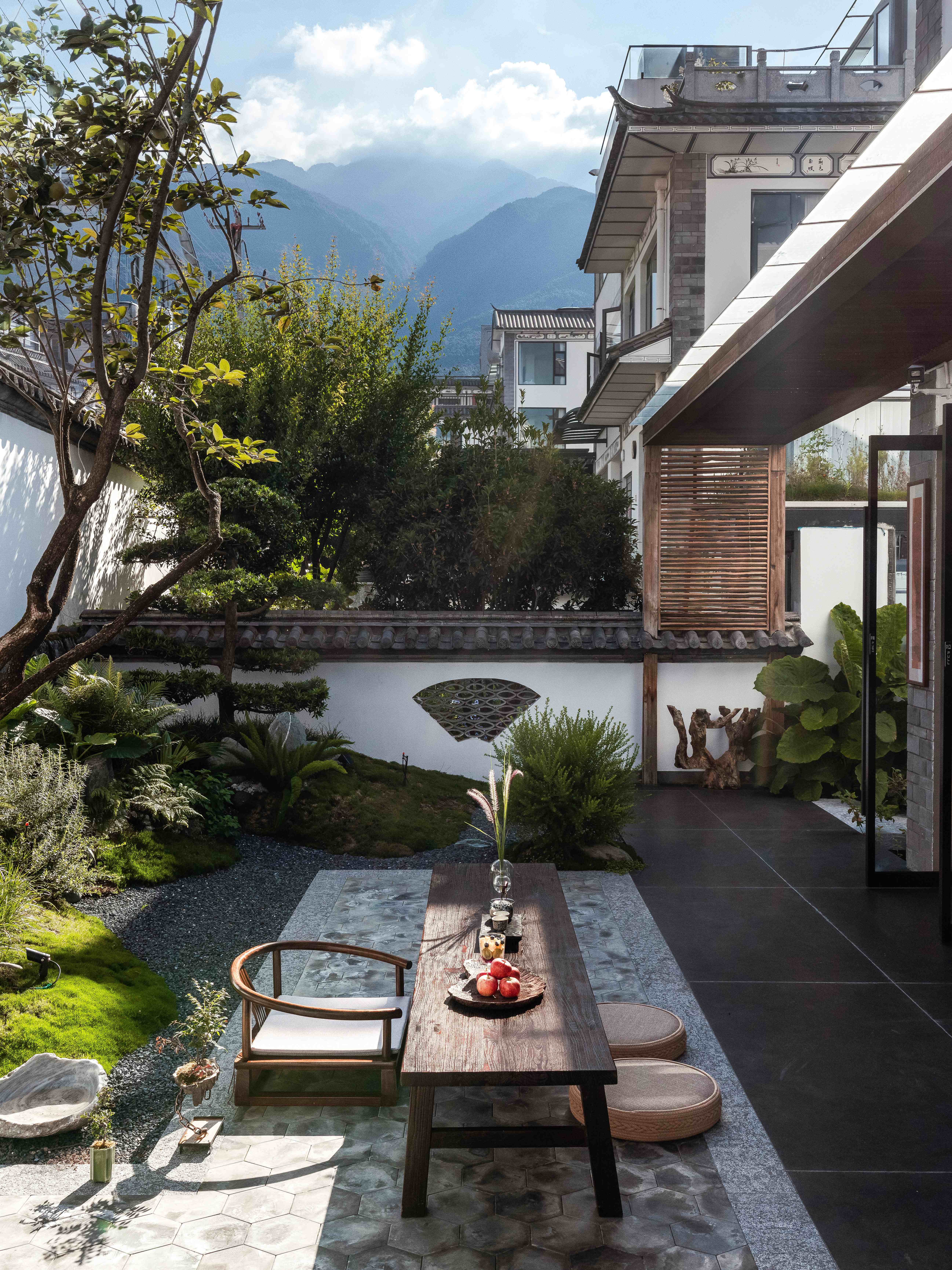 用户体验:整体设计通过留白、光影、自然材料与传统院落的组合,使室内外空间相互渗透,院落景观与苍山、古城环境融为一体,为居住者呈现出温暖、静谧而富有层次的居住氛围。本项目旨在打造一处既能感受大理文化魅力、体验现代舒适生活,又能在苍山脚下寻得心灵安宁的理想居所。