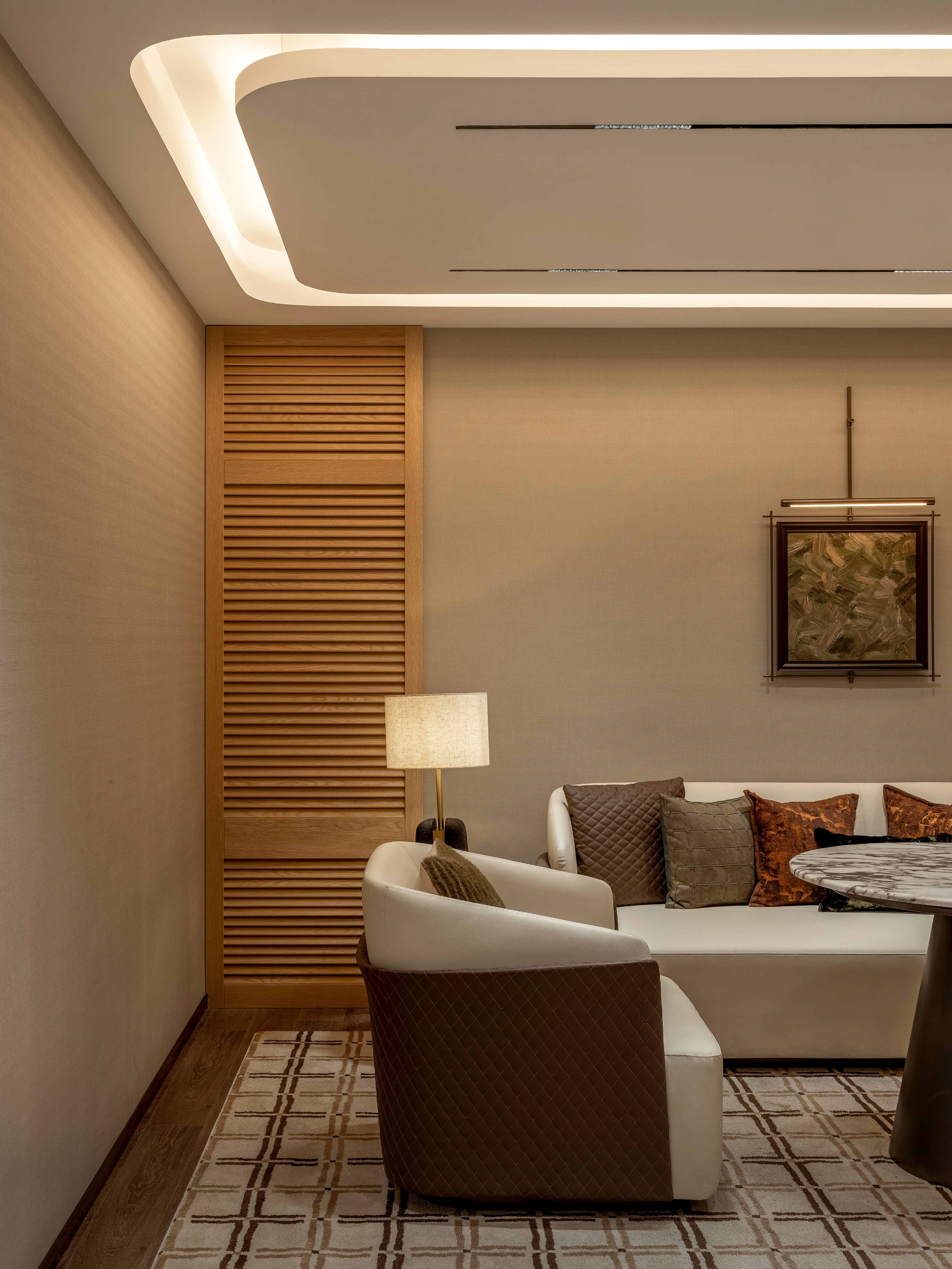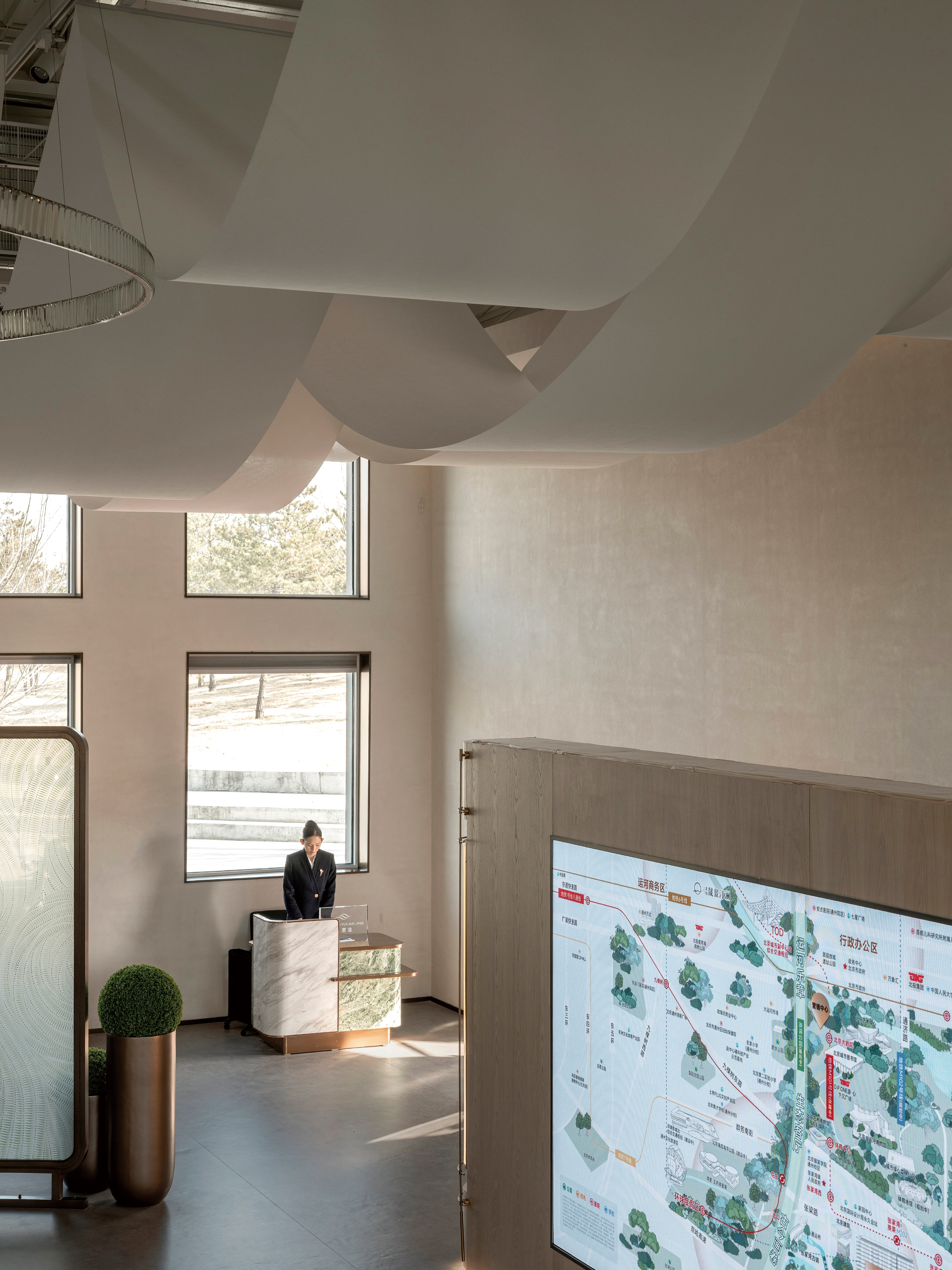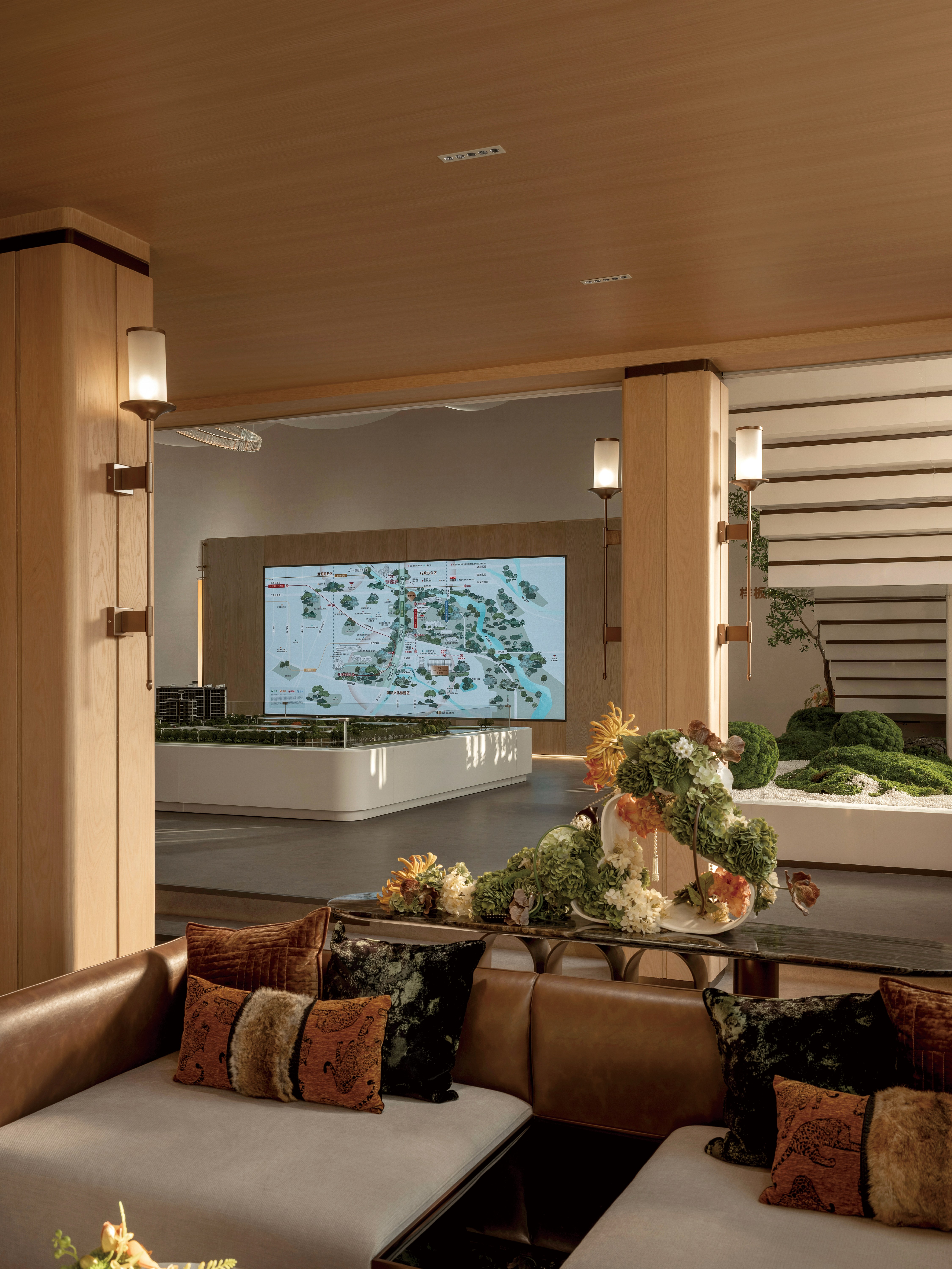 项目定位:以 “寻找品质生活的典范” 为核心,打造绿色生活体验与高品质生活方式相结合的舒适住宅营销中心,定位为 “归心之所”。通过现代与轻奢结合的设计元素,展示精细雅致的品质生活方式,同时营造室外景观和室内一体化的绿色健康人居生活态度,致力于为用户缔造品质生活的理想居所。