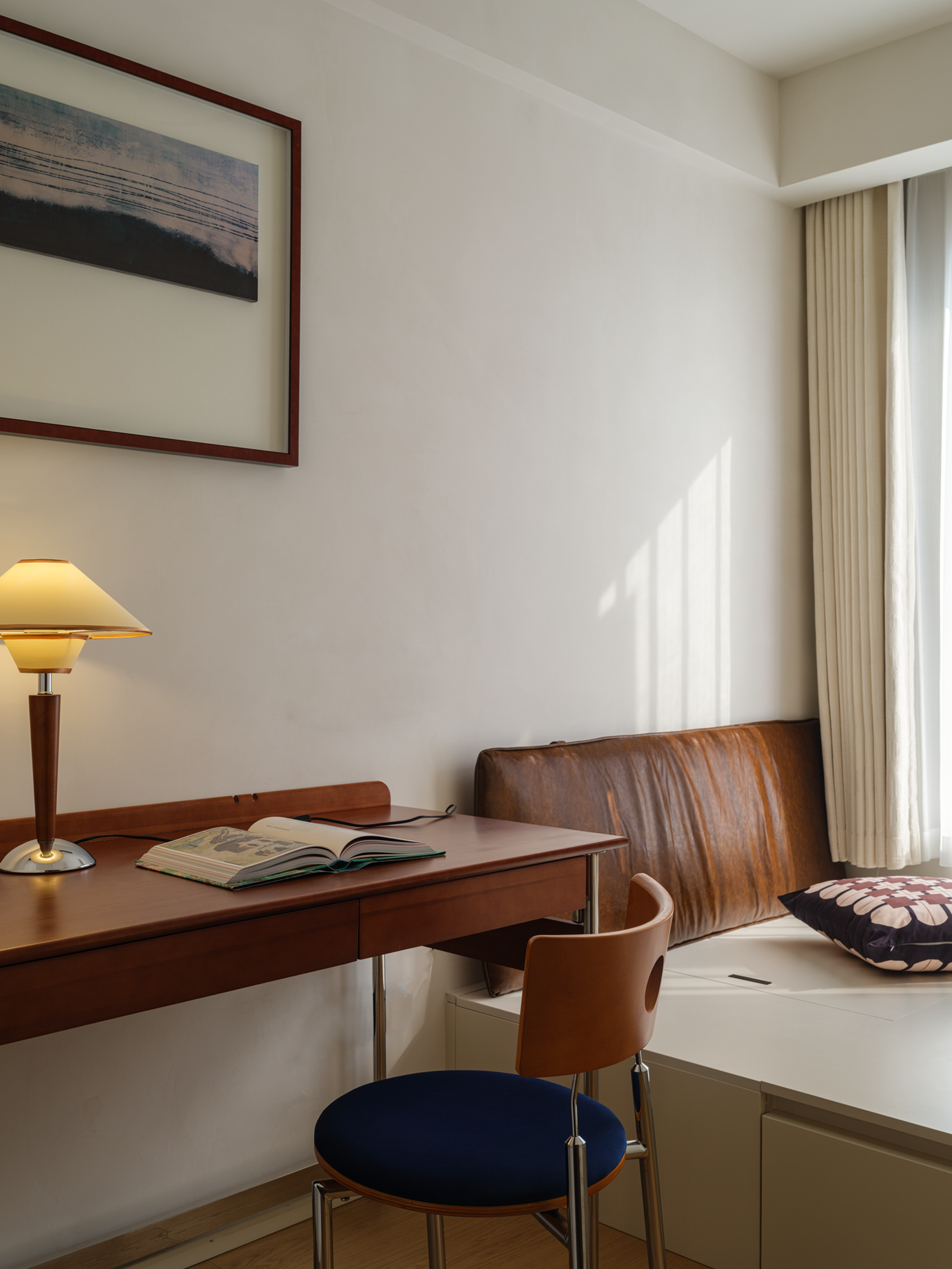 项目定位:本案不仅仅是一套学区房设计,更是一份关于陪伴与成长的温柔托付。业主向设计师提出两个诉求:一方能让个人沉静下来的独处之地,以及一个能让家人自然相聚、彼此陪伴的公共区域,空间的成长性和温度至关重要。