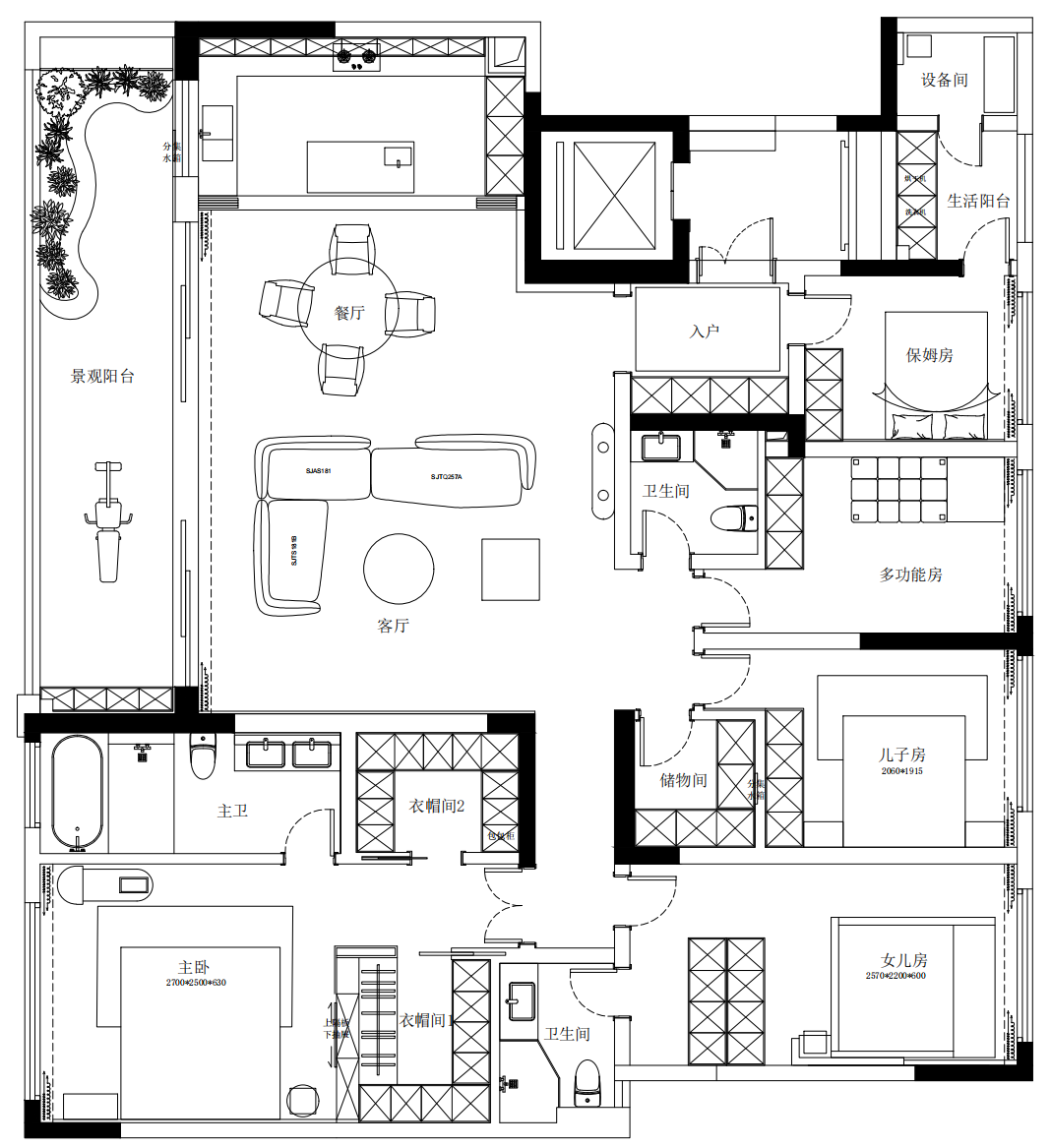空间布局:因为客户需求4个房间,所以在空间布局上没有过多调整,主卧及两个小朋友的卧房为舒适的套房。次卧没有传统意义上留给 “未知的客人”,从功能上规划为儿童休闲区。让家,围绕居住者本身,这是设计本身之意义。