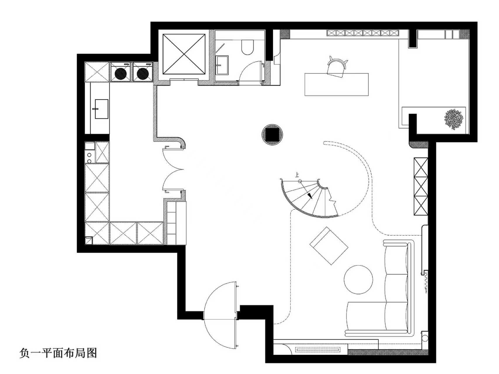 空间意境:空间的绝对焦点,是那座宛若艺术雕塑的旋转楼梯。它不仅是连接垂直空间的功能性构件,更是整个家的精神象征。其优美的螺旋曲线,以一种毫不费力的姿态,打破了空间的静态格局,引入了动态的流动感。楼梯的线条柔和而富有张力,在自然光线的雕琢下,于墙面和地面投射出不断变化的光影画卷,使空间随着时间流转而焕发生机