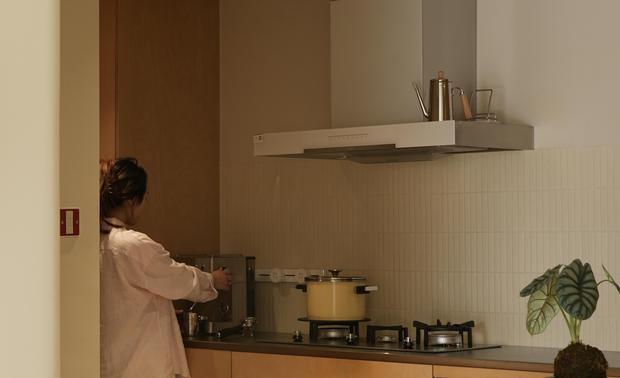 设计选材:厨房用海洋板做橱柜以及金属板做台面,经久耐用,环保