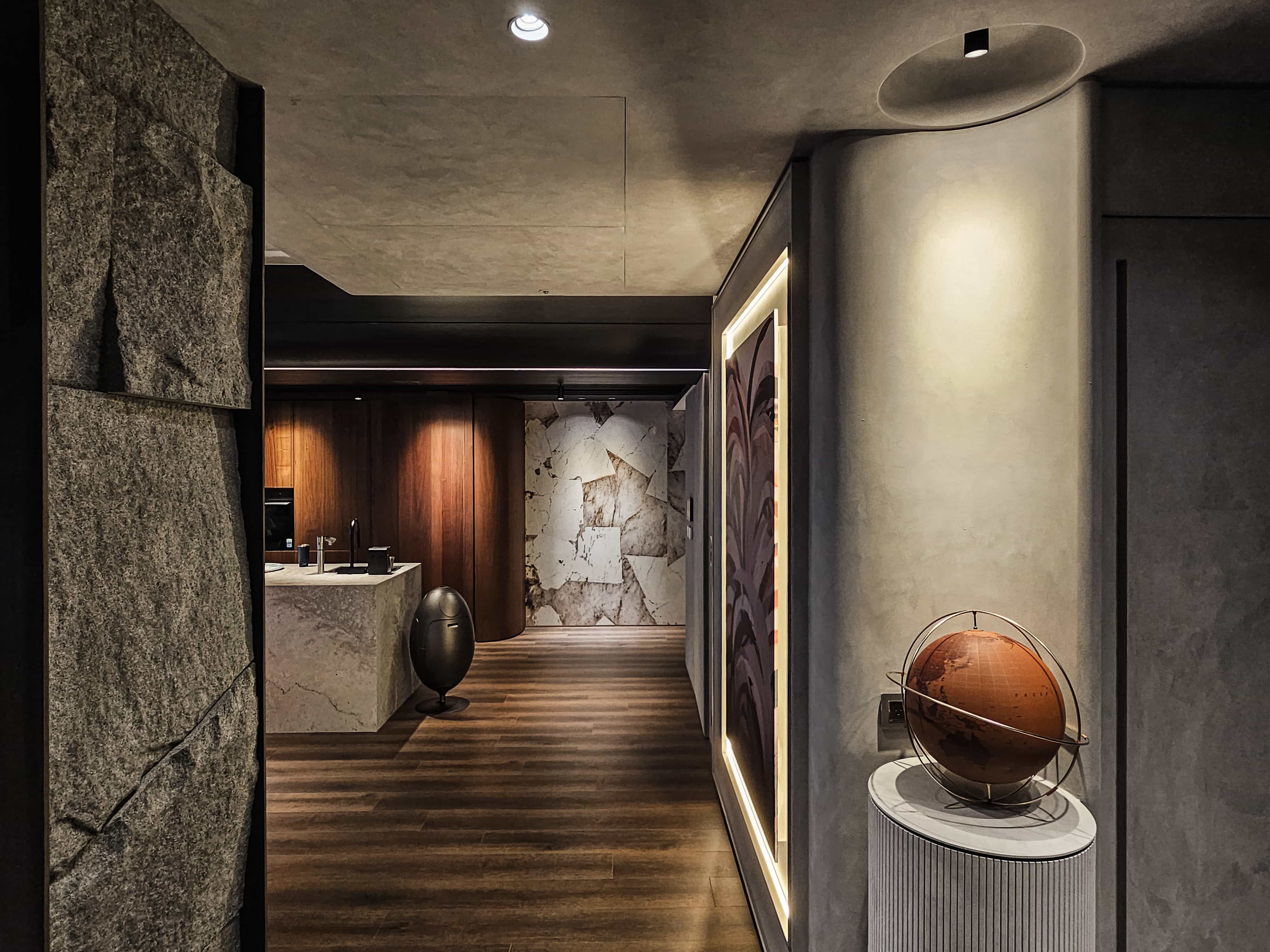 设计选材:巧妙運用天然石材、溫潤木質與藝術特殊塗料。「長效美學」與「觸覺深度」,藉由材質本身的原始紋理減少不必要的裝飾能耗。透過大面積採光優勢與智能燈光控制,降低人工照明依賴。在追求精品飯店的高質感氛圍時,同步落實建材的耐用性與低碳低維修成本,達成經濟效益與環境永續的雙重訴求。