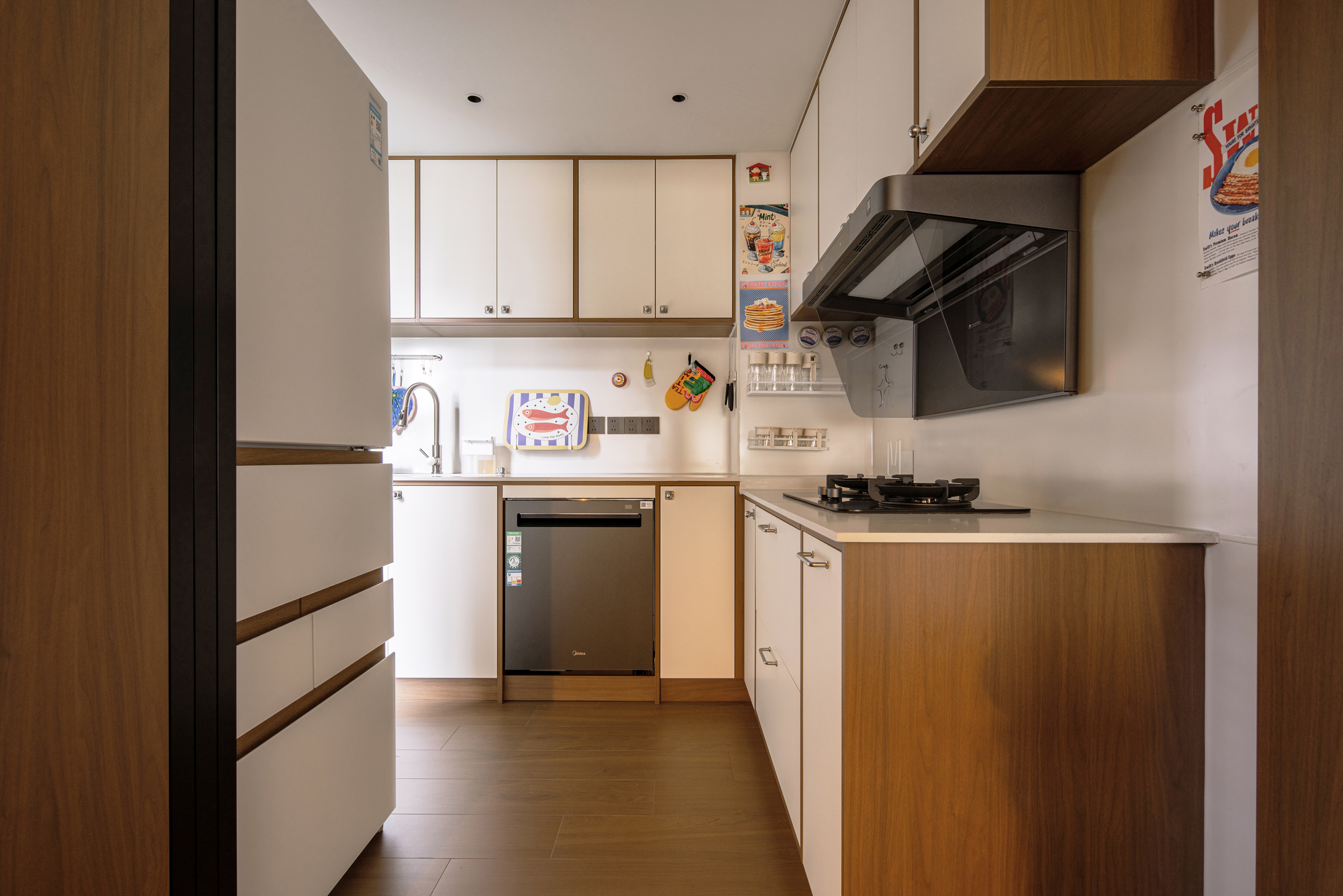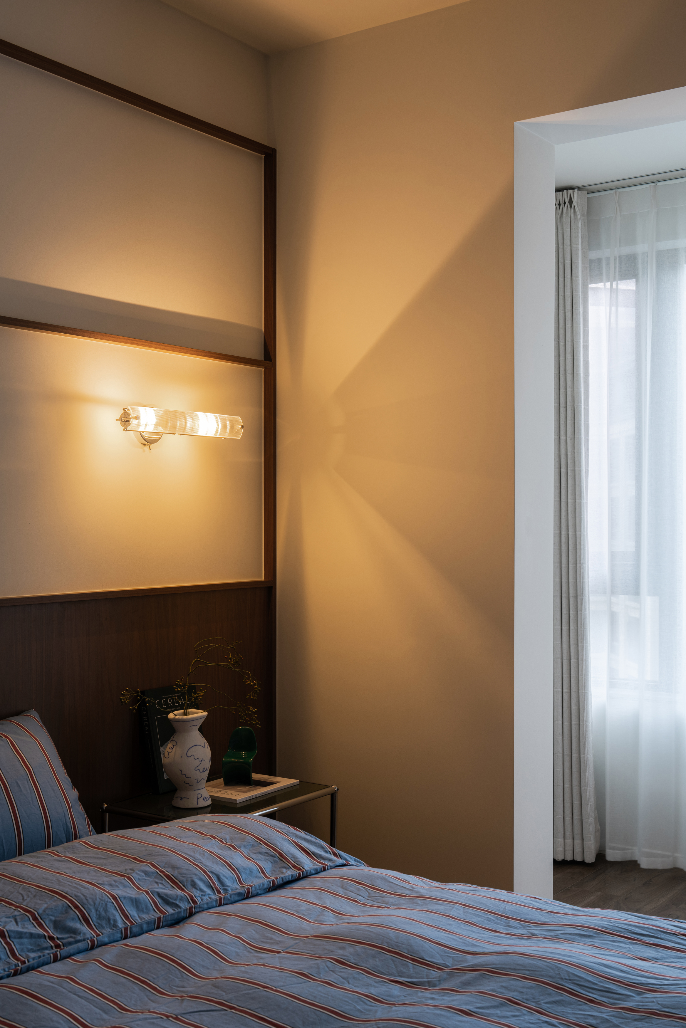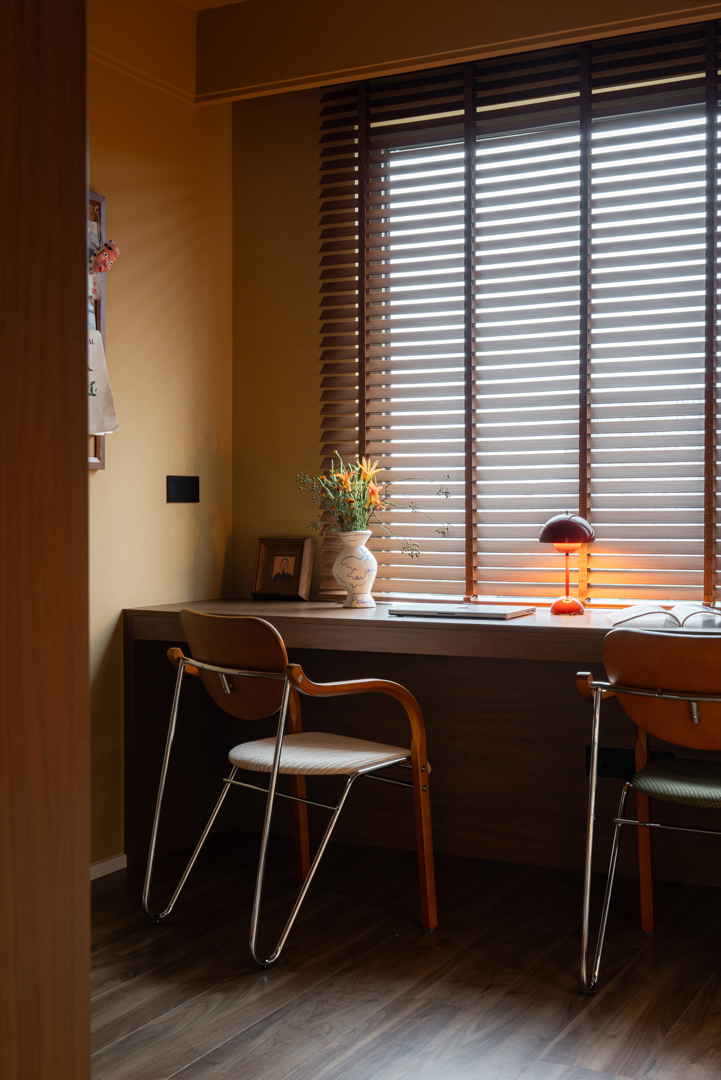 其次,地面置换为暖调木纹砖。它保留了木地板的视觉温度,亦具备了瓷砖的坚实与易洁,让美观与耐用得以共存。